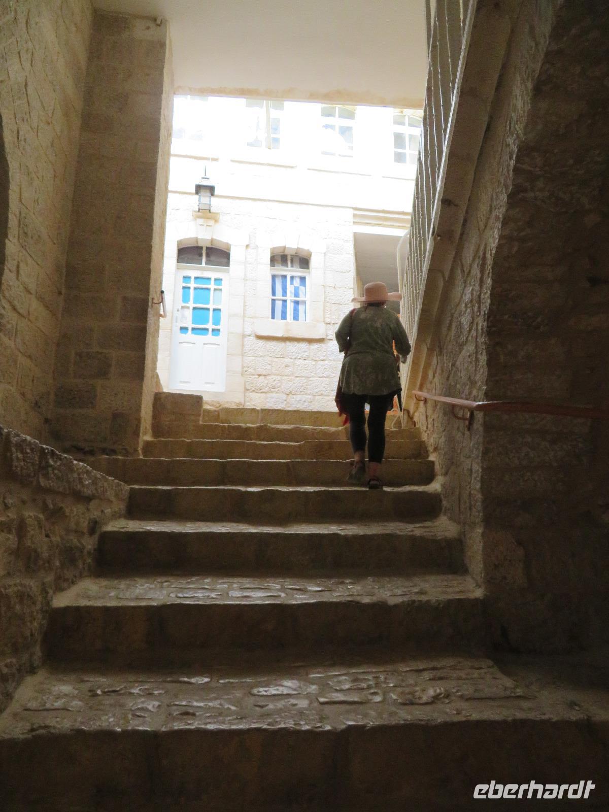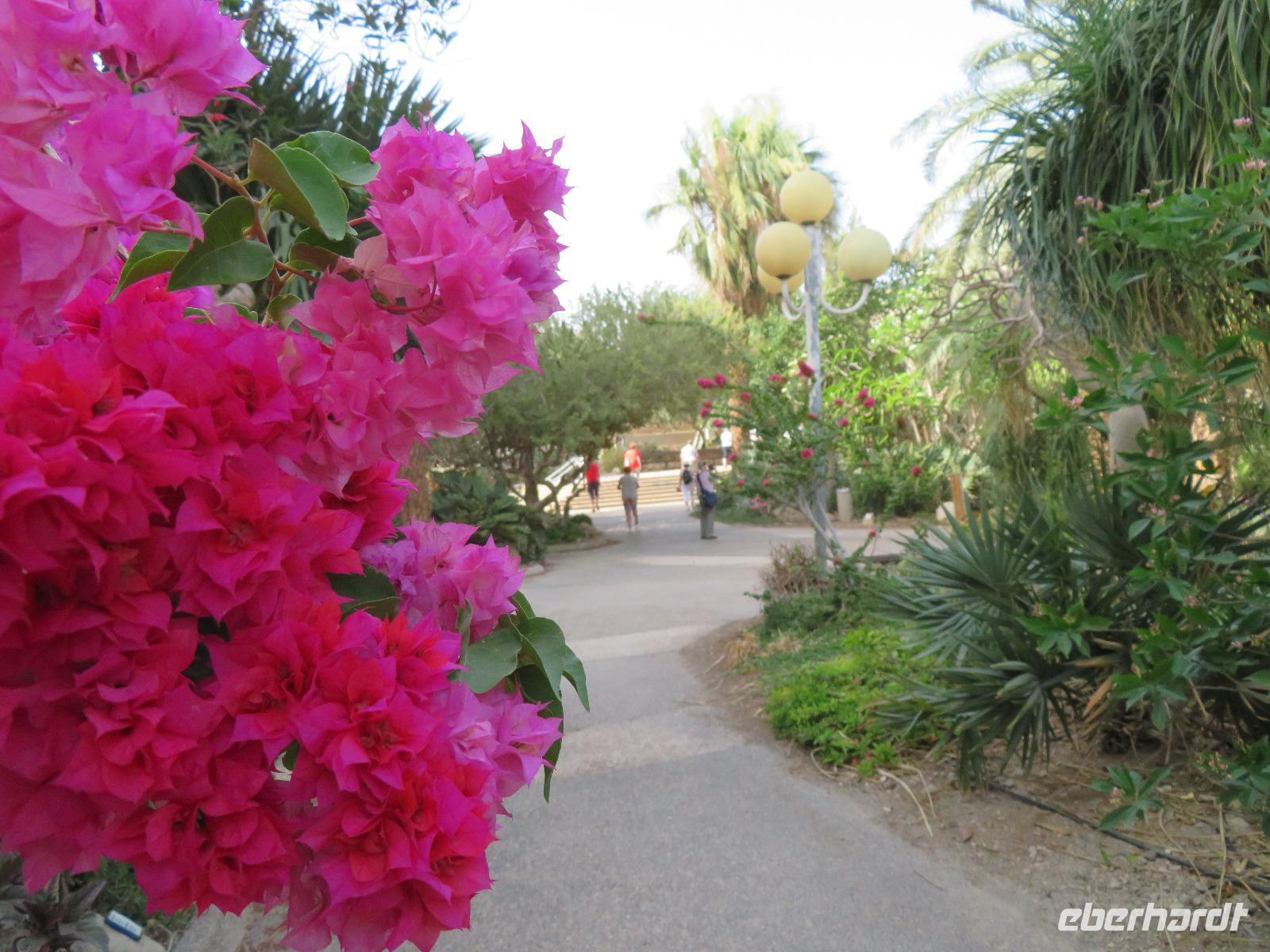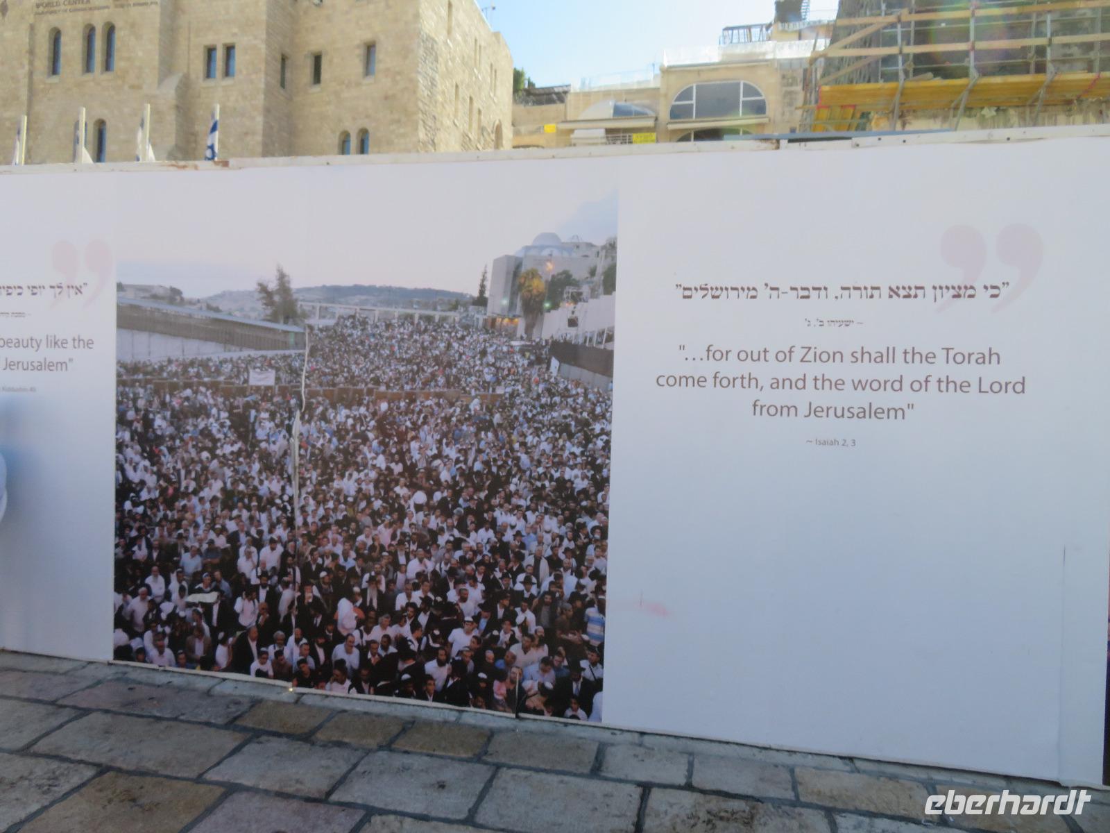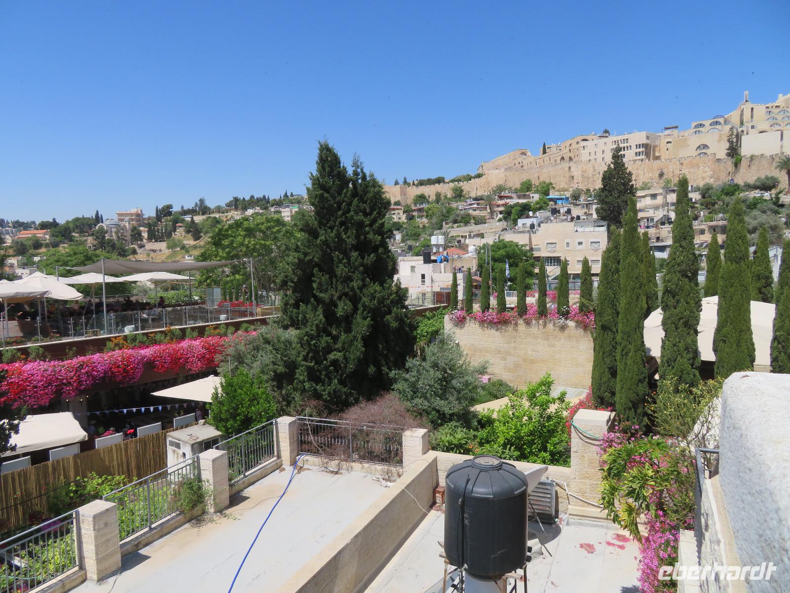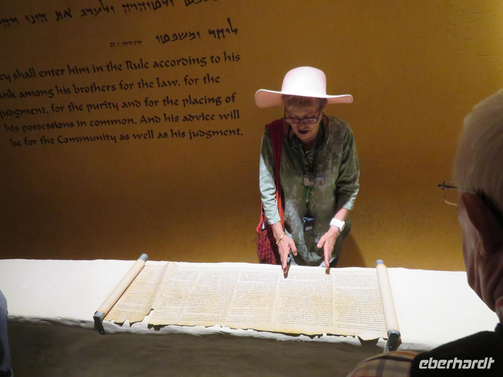 Wir wussten um die heilende Wirkung des Toten Meeres, so dass wir erfreut waren über den Halt in einer bekannten Kosmetikfabrik. Interessiert stöberten wir im reichhaltigen Angebot und nahmen für die Lieben zu Hause ein paar Mitbringsel mit. Anschließend setzten wir die Fahrt zu den Höhlen von Qumran fort, in denen zufällig 1947 ein Beduinenjunge die mittlerweile weltberühmten und jahrtausende alten Schriftrollen von Jesaja in mehreren Tonkrügen gefunden hatte. Die originalen Schriftrollen werden heute im Schrein des Buches im Israel-Museum in Jerusalem aufbewahrt. Die Ausgrabungsstätte, der uns gezeigte Film und die bildhaften Erklärungen von Ronit ließen uns gut erahnen, wie das Leben der Urchristen verlief und wie zufällig der Fund der Rollen war. Bevor wir nun die wahrscheinlich älteste Stadt der Welt besuchten, mussten wir uns leider von unserem lieb gewonnenen Busfahrer Ami verabschieden. Wir begrüßten seinen eingesprungenen Ersatzmann Josef und setzten die Fahrt in das Palästinensische Autonomiegebiet nach Jericho fort. Dort angekommen, stärkten wir uns mit typischen Speisen oder einem willkommenem kühlen Bier. Immerhin waren wieder enorm hohe Temperaturen von 42 °C auf dem Thermometer abzulesen. Erfrischt und munter bewanderten wir zusammen die Siedlungs-Ausgrabungen von Tell es-Sultan und sahen den Turm von Jericho, der älteste Steinturm der Welt, umgeben von alten runden Lehmziegelbauten. Ronit erklärte uns ebenfalls die biblische Geschichte zur Jericho-Trompete, nach deren Überlieferung der bloße Klang von Trompeten die gewaltigen Stadtmauern zum Einsturz gebracht haben sollen. Leider sollte das erstes Kind dessen sterben, der sie wieder aufbaut. Da wir nur Reste von Stadtmauern sahen, ließ der Wahrheitsgehalt Raum für viele Spekulationen. :-) Unser folgender Besichtigungspunkt war der Berg der Versuchung. Hier hat Jesus 40 Tage gefastet und während dieser Zeit den Veruchungen des Teufels widerstanden. Wir setzten uns in drei kleine abenteuerliche Gondeln und fuhren zum Berg hinauf. Das war dennoch noch nicht das finale Ziel. Vor uns lag ein steiler Weg zum Kloster hinauf, welches wie ein Wespennest am Fels zu kleben schien. Glücklich, oben angekommen zu sein, bestaunten wir das Kloster, die Höhle und die ehemalige Grotte, in der Jesus seine Fasten- und Gebetszeit verbracht haben soll. Eine andere Reisegruppe traf ebenfalls in der Kapelle ein und begann wunderschön zu singen. Gespannt hielten wir einen kurzen Moment still und lauschten gebannt. Der Abstieg wurde von einem wundervollem weitem Blick über die Palmenstadt belohnt. Nun fuhren auch wir singend mit der Seilbahn wieder hinab und stiegen gut gelaunt in unseren Bus. Auf dem Rückweg durch die judäische Wüste hielten wir im bekannten Kibbutz Ein Gedi und erhielten eine Führung im prächtigen Botanischen Garten, welcher über 900 verschiedene Pflanzen- und Baumarten beherbergt. Wieder im Hotel angekommen, entspannte jeder nach Lust und Laune bis zum Abendessen. Dieses war für uns Touristen sehr besonders, denn es war der Beginn des Sabbat. Der jüdische Ruhetag beginnt am Freitagabend mit dem Sabbatsegen, auch Kiddusch genannt sowie gutem Essen. Diesen Segensspruch über einem Glas Wein konnten wir bei vielen Hotelgästen neugierig beobachten. Gemeinsam ließen wir diesen anstrengenden Tag ausklingen.