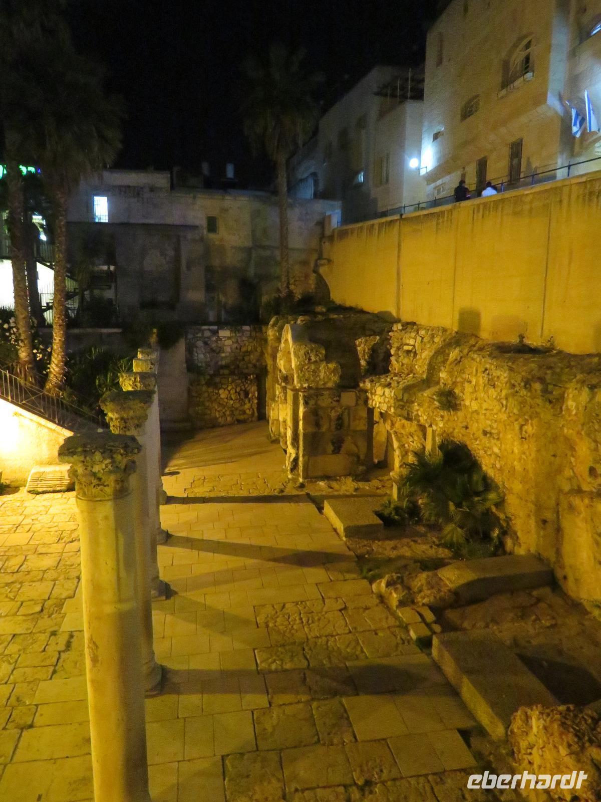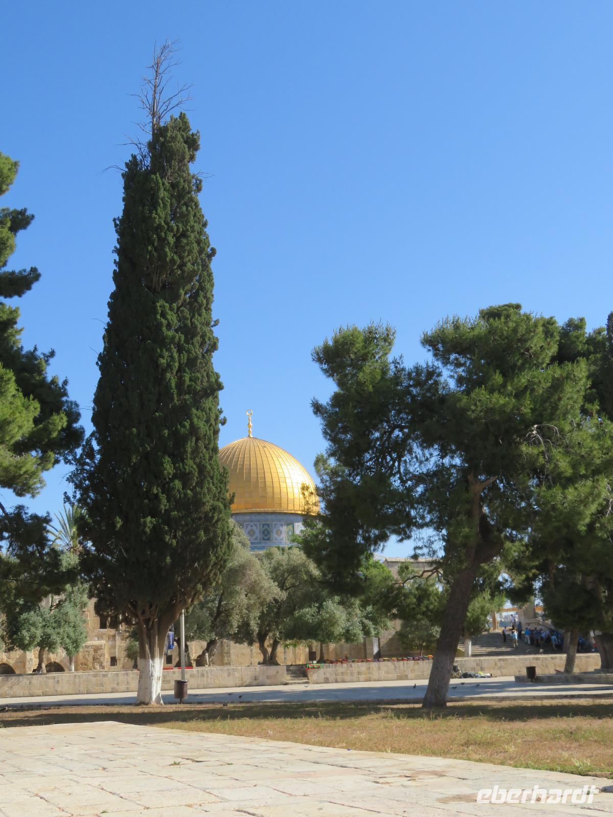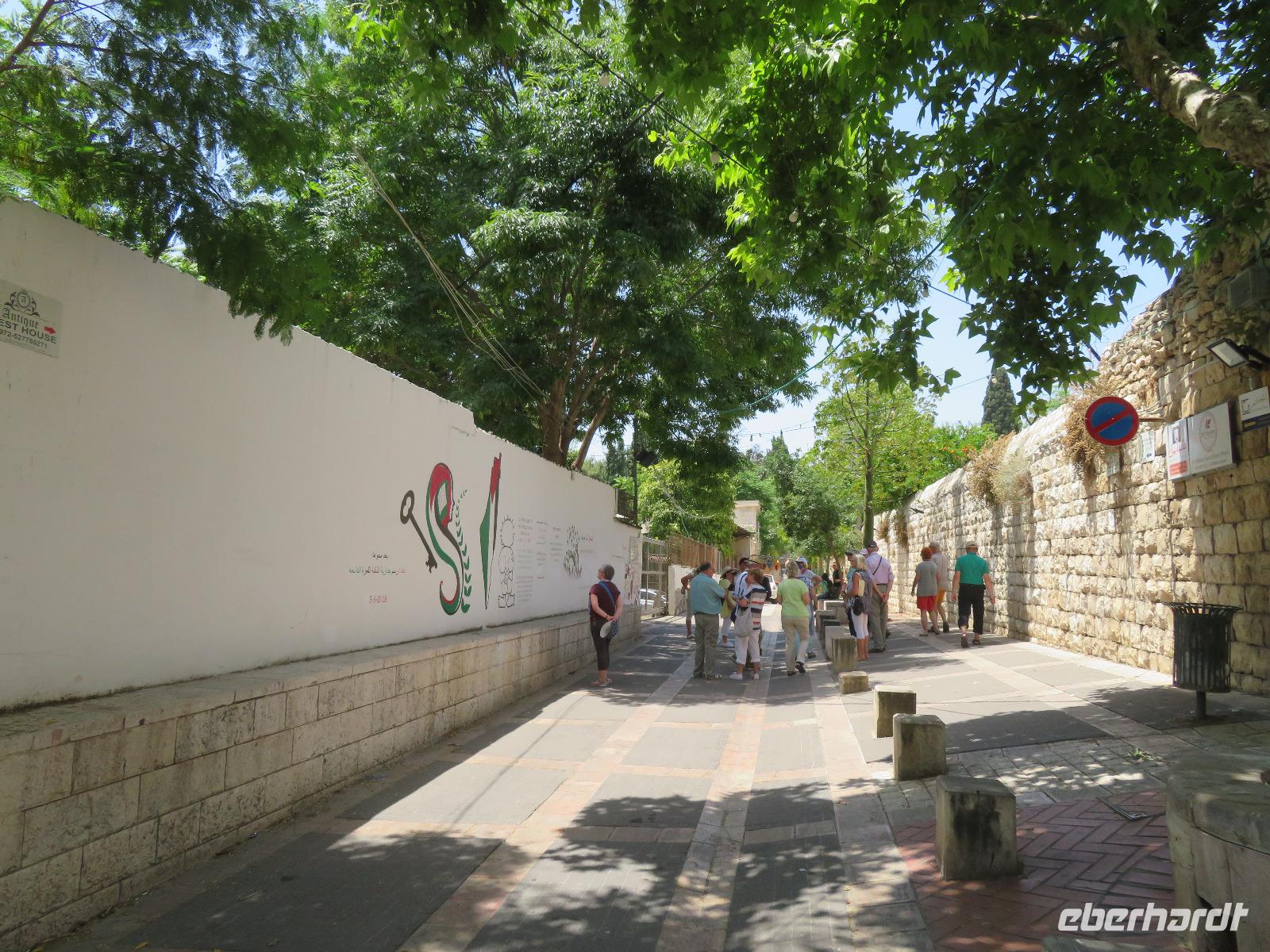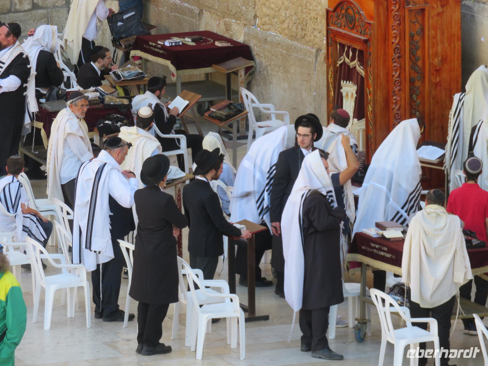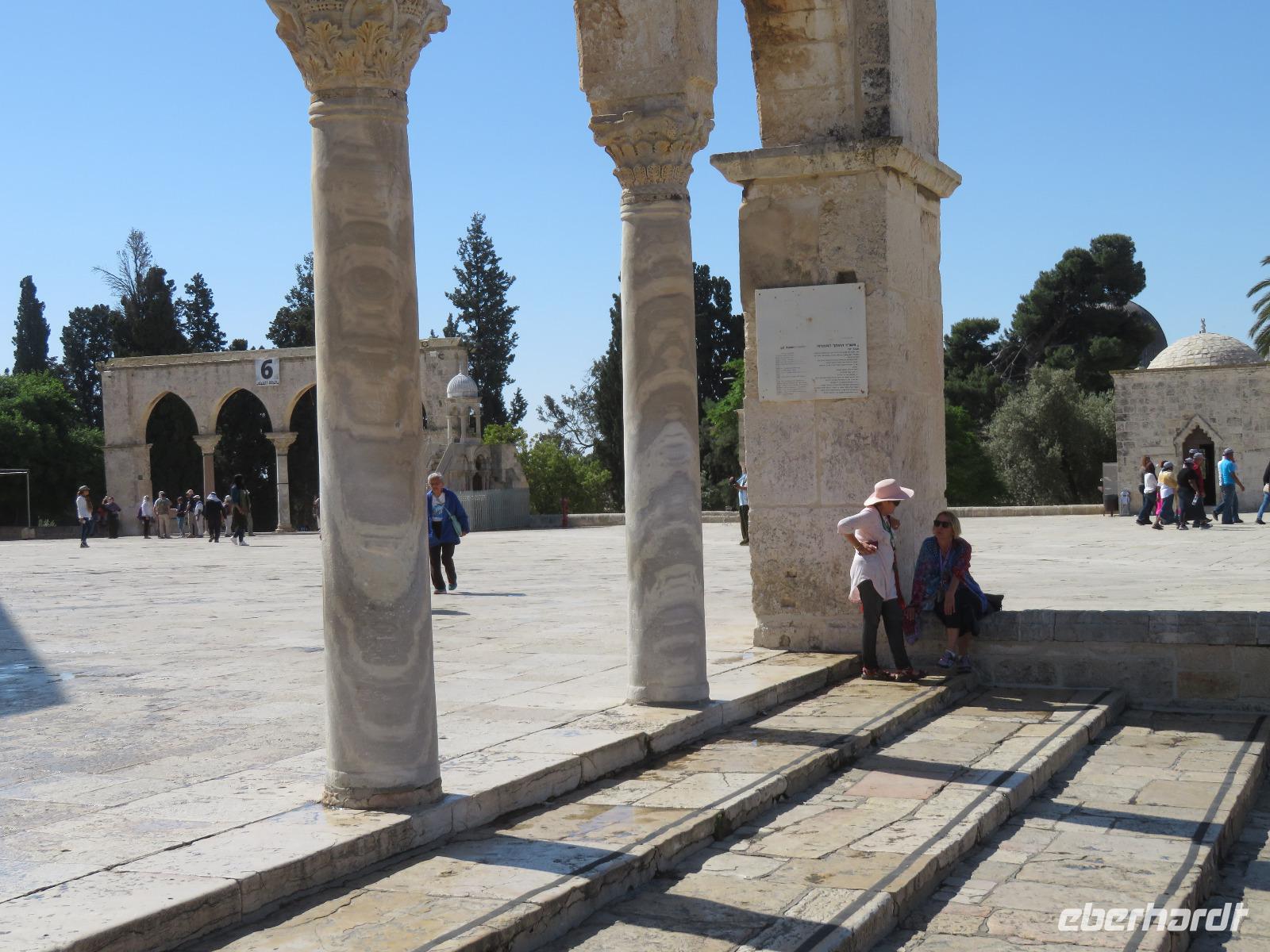 Wir wussten um die heilende Wirkung des Toten Meeres, so dass wir erfreut waren über den Halt in einer bekannten Kosmetikfabrik. Interessiert stöberten wir im reichhaltigen Angebot und nahmen für die Lieben zu Hause ein paar Mitbringsel mit. Anschließend setzten wir die Fahrt zu den Höhlen von Qumran fort, in denen zufällig 1947 ein Beduinenjunge die mittlerweile weltberühmten und jahrtausende alten Schriftrollen von Jesaja in mehreren Tonkrügen gefunden hatte. Die originalen Schriftrollen werden heute im Schrein des Buches im Israel-Museum in Jerusalem aufbewahrt. Die Ausgrabungsstätte, der uns gezeigte Film und die bildhaften Erklärungen von Ronit ließen uns gut erahnen, wie das Leben der Urchristen verlief und wie zufällig der Fund der Rollen war. Bevor wir nun die wahrscheinlich älteste Stadt der Welt besuchten, mussten wir uns leider von unserem lieb gewonnenen Busfahrer Ami verabschieden. Wir begrüßten seinen eingesprungenen Ersatzmann Josef und setzten die Fahrt in das Palästinensische Autonomiegebiet nach Jericho fort. Dort angekommen, stärkten wir uns mit typischen Speisen oder einem willkommenem kühlen Bier. Immerhin waren wieder enorm hohe Temperaturen von 42 °C auf dem Thermometer abzulesen. Erfrischt und munter bewanderten wir zusammen die Siedlungs-Ausgrabungen von Tell es-Sultan und sahen den Turm von Jericho, der älteste Steinturm der Welt, umgeben von alten runden Lehmziegelbauten. Ronit erklärte uns ebenfalls die biblische Geschichte zur Jericho-Trompete, nach deren Überlieferung der bloße Klang von Trompeten die gewaltigen Stadtmauern zum Einsturz gebracht haben sollen. Leider sollte das erstes Kind dessen sterben, der sie wieder aufbaut. Da wir nur Reste von Stadtmauern sahen, ließ der Wahrheitsgehalt Raum für viele Spekulationen. :-) Unser folgender Besichtigungspunkt war der Berg der Versuchung. Hier hat Jesus 40 Tage gefastet und während dieser Zeit den Veruchungen des Teufels widerstanden. Wir setzten uns in drei kleine abenteuerliche Gondeln und fuhren zum Berg hinauf. Das war dennoch noch nicht das finale Ziel. Vor uns lag ein steiler Weg zum Kloster hinauf, welches wie ein Wespennest am Fels zu kleben schien. Glücklich, oben angekommen zu sein, bestaunten wir das Kloster, die Höhle und die ehemalige Grotte, in der Jesus seine Fasten- und Gebetszeit verbracht haben soll. Eine andere Reisegruppe traf ebenfalls in der Kapelle ein und begann wunderschön zu singen. Gespannt hielten wir einen kurzen Moment still und lauschten gebannt. Der Abstieg wurde von einem wundervollem weitem Blick über die Palmenstadt belohnt. Nun fuhren auch wir singend mit der Seilbahn wieder hinab und stiegen gut gelaunt in unseren Bus. Auf dem Rückweg durch die judäische Wüste hielten wir im bekannten Kibbutz Ein Gedi und erhielten eine Führung im prächtigen Botanischen Garten, welcher über 900 verschiedene Pflanzen- und Baumarten beherbergt. Wieder im Hotel angekommen, entspannte jeder nach Lust und Laune bis zum Abendessen. Dieses war für uns Touristen sehr besonders, denn es war der Beginn des Sabbat. Der jüdische Ruhetag beginnt am Freitagabend mit dem Sabbatsegen, auch Kiddusch genannt sowie gutem Essen. Diesen Segensspruch über einem Glas Wein konnten wir bei vielen Hotelgästen neugierig beobachten. Gemeinsam ließen wir diesen anstrengenden Tag ausklingen.