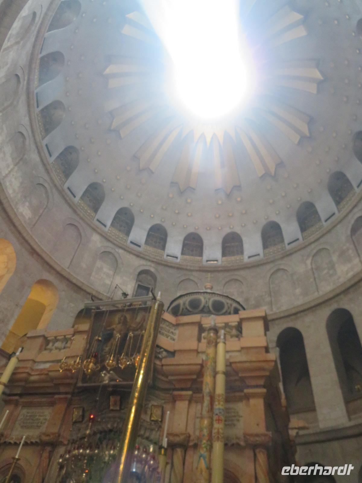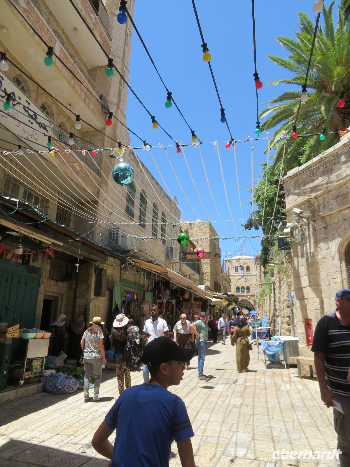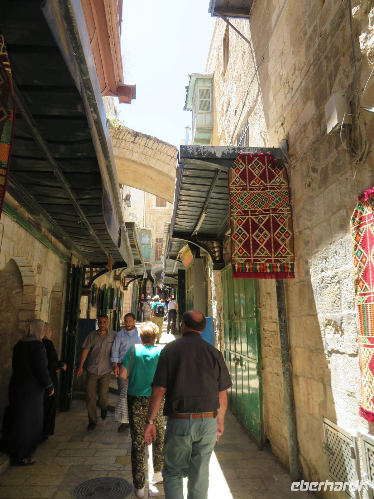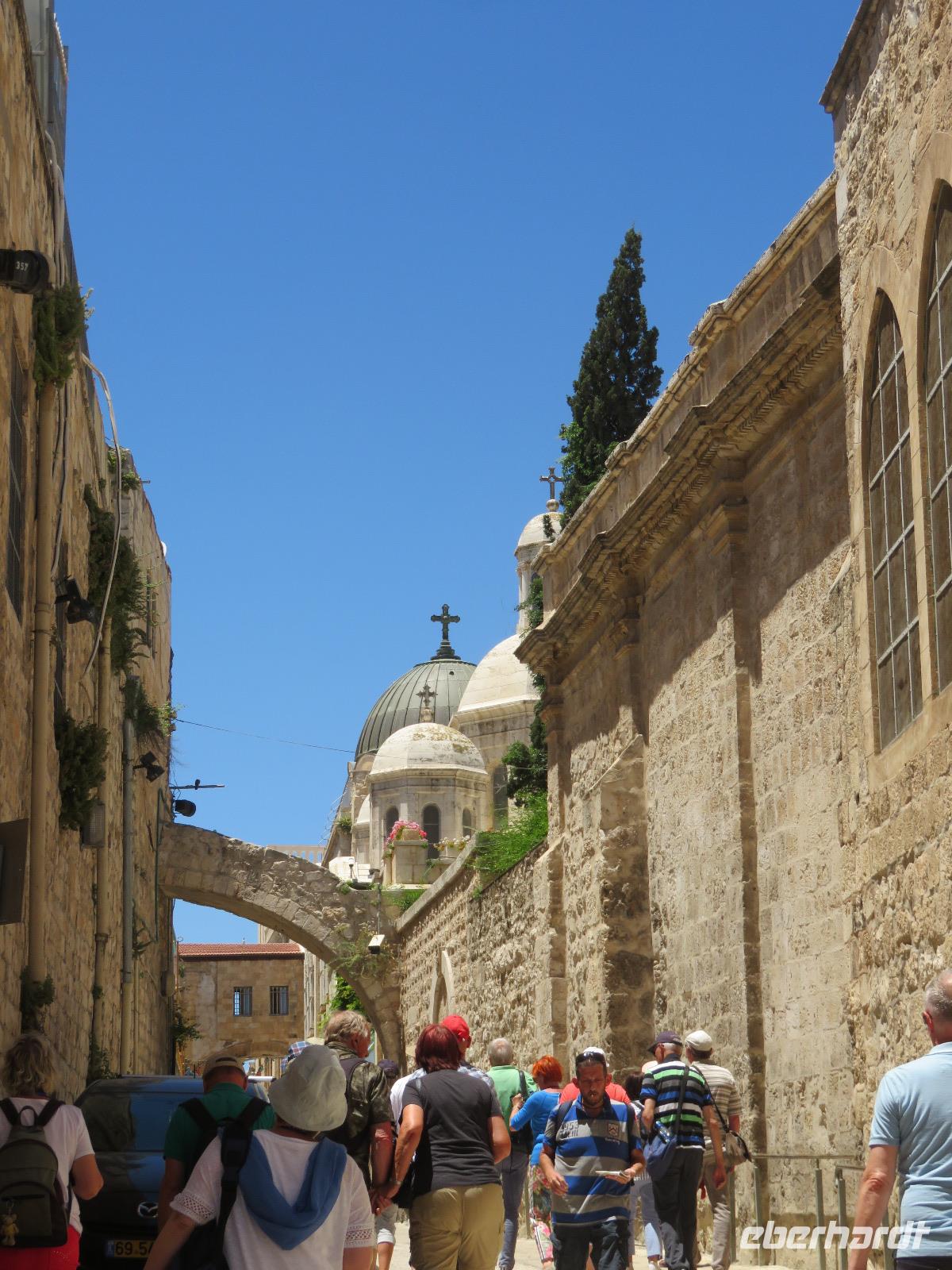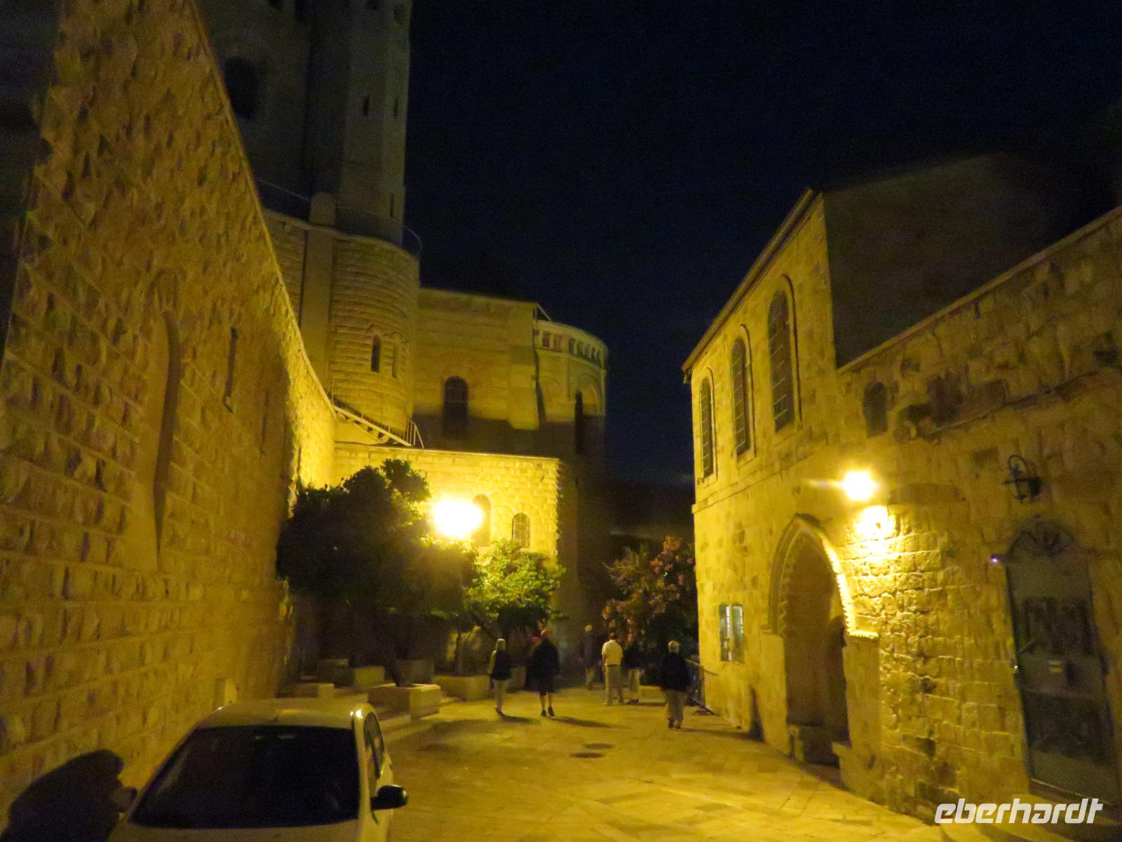 Wir wussten um die heilende Wirkung des Toten Meeres, so dass wir erfreut waren über den Halt in einer bekannten Kosmetikfabrik. Interessiert stöberten wir im reichhaltigen Angebot und nahmen für die Lieben zu Hause ein paar Mitbringsel mit. Anschließend setzten wir die Fahrt zu den Höhlen von Qumran fort, in denen zufällig 1947 ein Beduinenjunge die mittlerweile weltberühmten und jahrtausende alten Schriftrollen von Jesaja in mehreren Tonkrügen gefunden hatte. Die originalen Schriftrollen werden heute im Schrein des Buches im Israel-Museum in Jerusalem aufbewahrt. Die Ausgrabungsstätte, der uns gezeigte Film und die bildhaften Erklärungen von Ronit ließen uns gut erahnen, wie das Leben der Urchristen verlief und wie zufällig der Fund der Rollen war. Bevor wir nun die wahrscheinlich älteste Stadt der Welt besuchten, mussten wir uns leider von unserem lieb gewonnenen Busfahrer Ami verabschieden. Wir begrüßten seinen eingesprungenen Ersatzmann Josef und setzten die Fahrt in das Palästinensische Autonomiegebiet nach Jericho fort. Dort angekommen, stärkten wir uns mit typischen Speisen oder einem willkommenem kühlen Bier. Immerhin waren wieder enorm hohe Temperaturen von 42 °C auf dem Thermometer abzulesen. Erfrischt und munter bewanderten wir zusammen die Siedlungs-Ausgrabungen von Tell es-Sultan und sahen den Turm von Jericho, der älteste Steinturm der Welt, umgeben von alten runden Lehmziegelbauten. Ronit erklärte uns ebenfalls die biblische Geschichte zur Jericho-Trompete, nach deren Überlieferung der bloße Klang von Trompeten die gewaltigen Stadtmauern zum Einsturz gebracht haben sollen. Leider sollte das erstes Kind dessen sterben, der sie wieder aufbaut. Da wir nur Reste von Stadtmauern sahen, ließ der Wahrheitsgehalt Raum für viele Spekulationen. :-) Unser folgender Besichtigungspunkt war der Berg der Versuchung. Hier hat Jesus 40 Tage gefastet und während dieser Zeit den Veruchungen des Teufels widerstanden. Wir setzten uns in drei kleine abenteuerliche Gondeln und fuhren zum Berg hinauf. Das war dennoch noch nicht das finale Ziel. Vor uns lag ein steiler Weg zum Kloster hinauf, welches wie ein Wespennest am Fels zu kleben schien. Glücklich, oben angekommen zu sein, bestaunten wir das Kloster, die Höhle und die ehemalige Grotte, in der Jesus seine Fasten- und Gebetszeit verbracht haben soll. Eine andere Reisegruppe traf ebenfalls in der Kapelle ein und begann wunderschön zu singen. Gespannt hielten wir einen kurzen Moment still und lauschten gebannt. Der Abstieg wurde von einem wundervollem weitem Blick über die Palmenstadt belohnt. Nun fuhren auch wir singend mit der Seilbahn wieder hinab und stiegen gut gelaunt in unseren Bus. Auf dem Rückweg durch die judäische Wüste hielten wir im bekannten Kibbutz Ein Gedi und erhielten eine Führung im prächtigen Botanischen Garten, welcher über 900 verschiedene Pflanzen- und Baumarten beherbergt. Wieder im Hotel angekommen, entspannte jeder nach Lust und Laune bis zum Abendessen. Dieses war für uns Touristen sehr besonders, denn es war der Beginn des Sabbat. Der jüdische Ruhetag beginnt am Freitagabend mit dem Sabbatsegen, auch Kiddusch genannt sowie gutem Essen. Diesen Segensspruch über einem Glas Wein konnten wir bei vielen Hotelgästen neugierig beobachten. Gemeinsam ließen wir diesen anstrengenden Tag ausklingen.