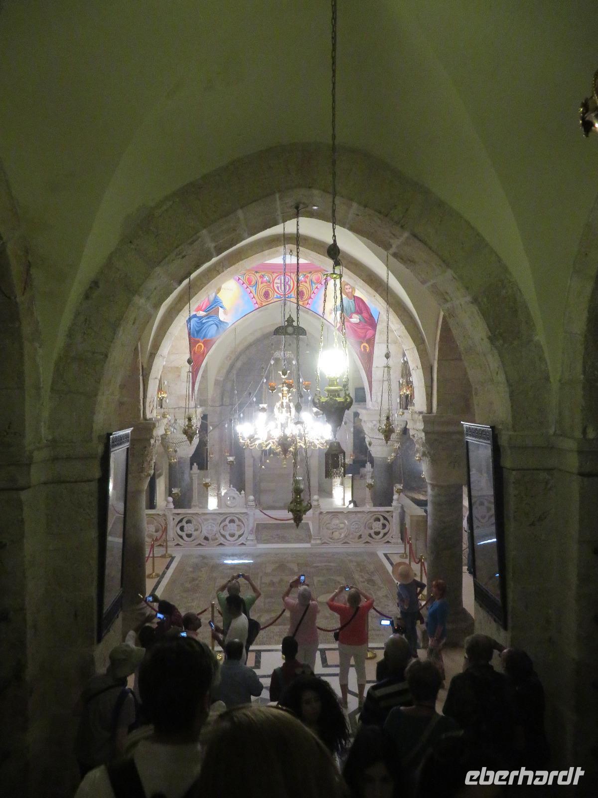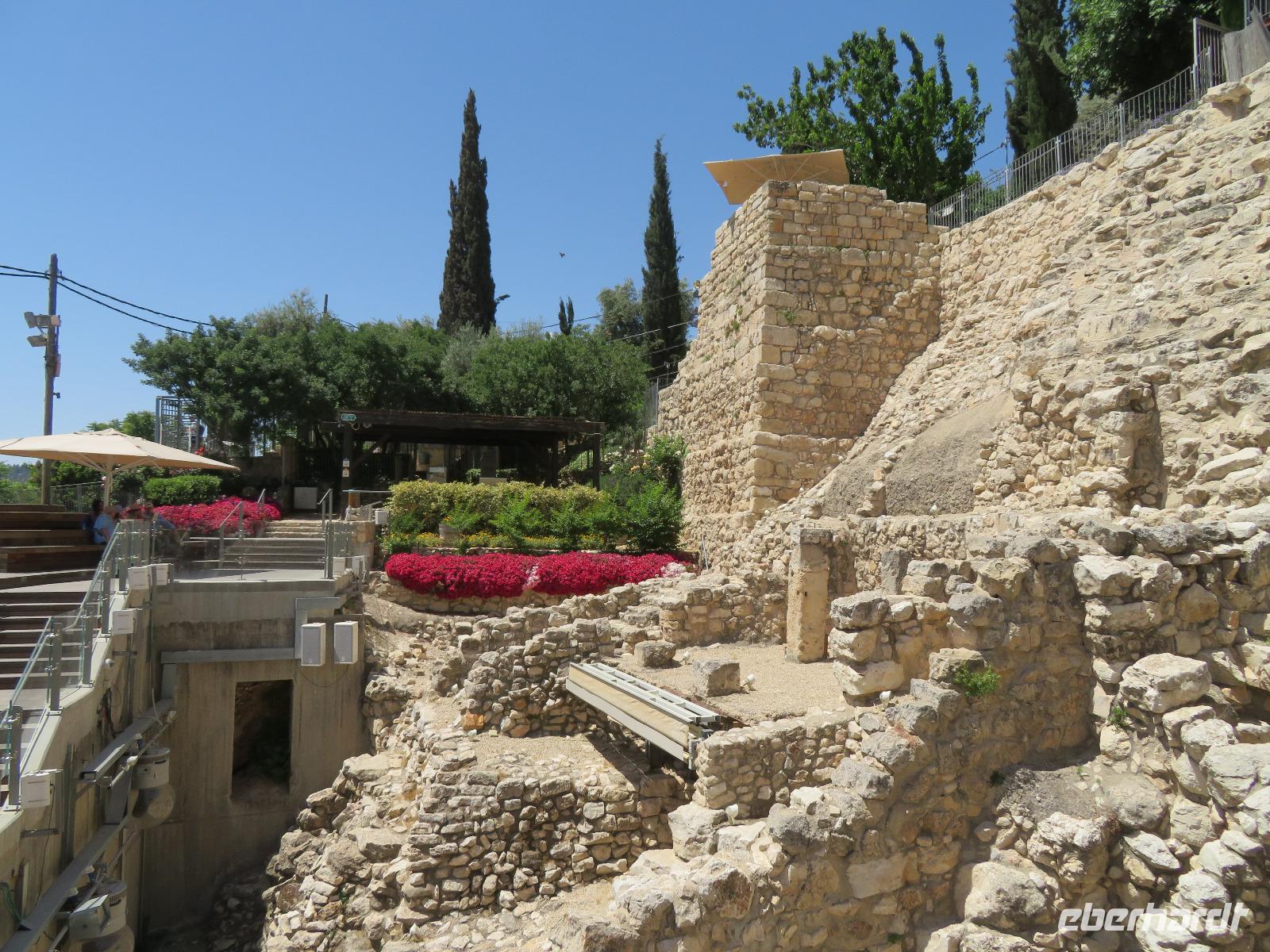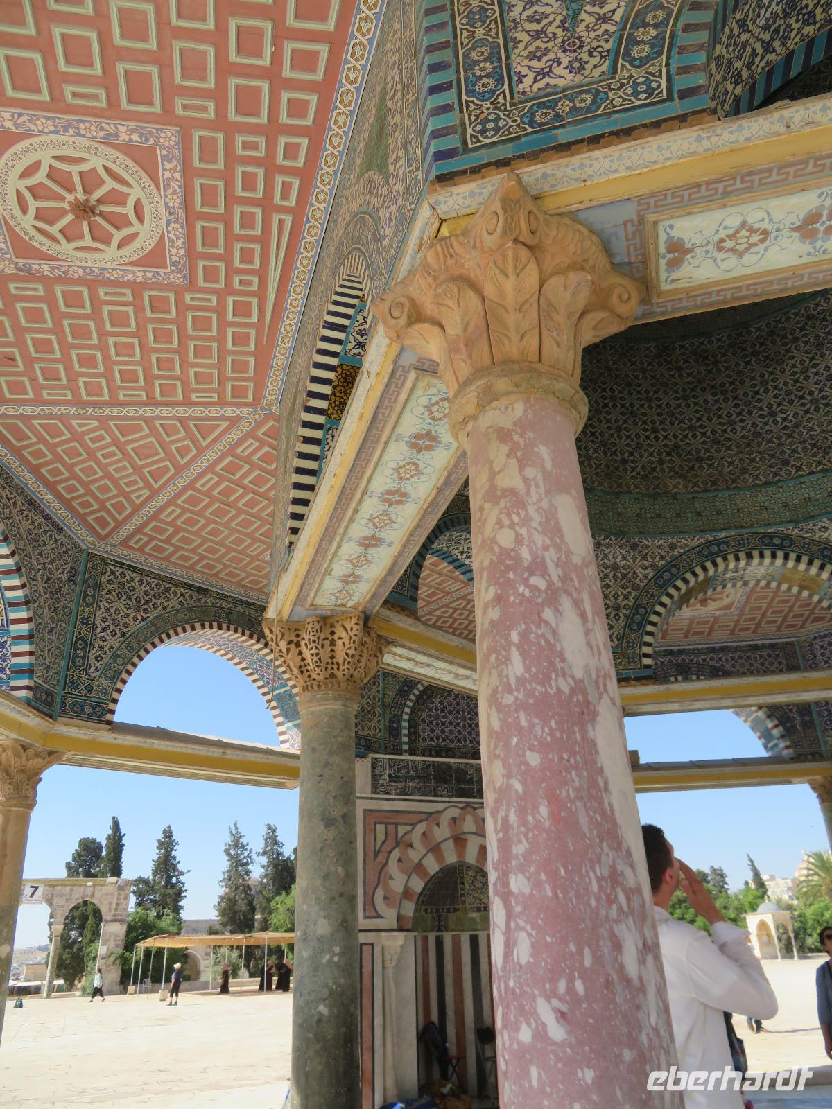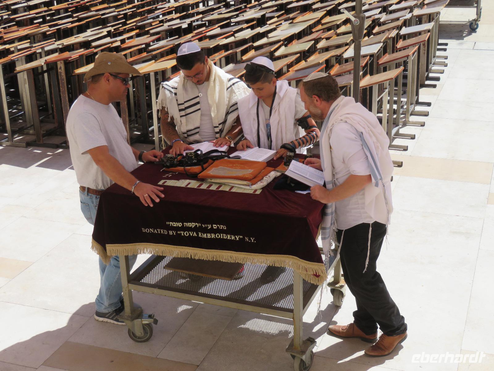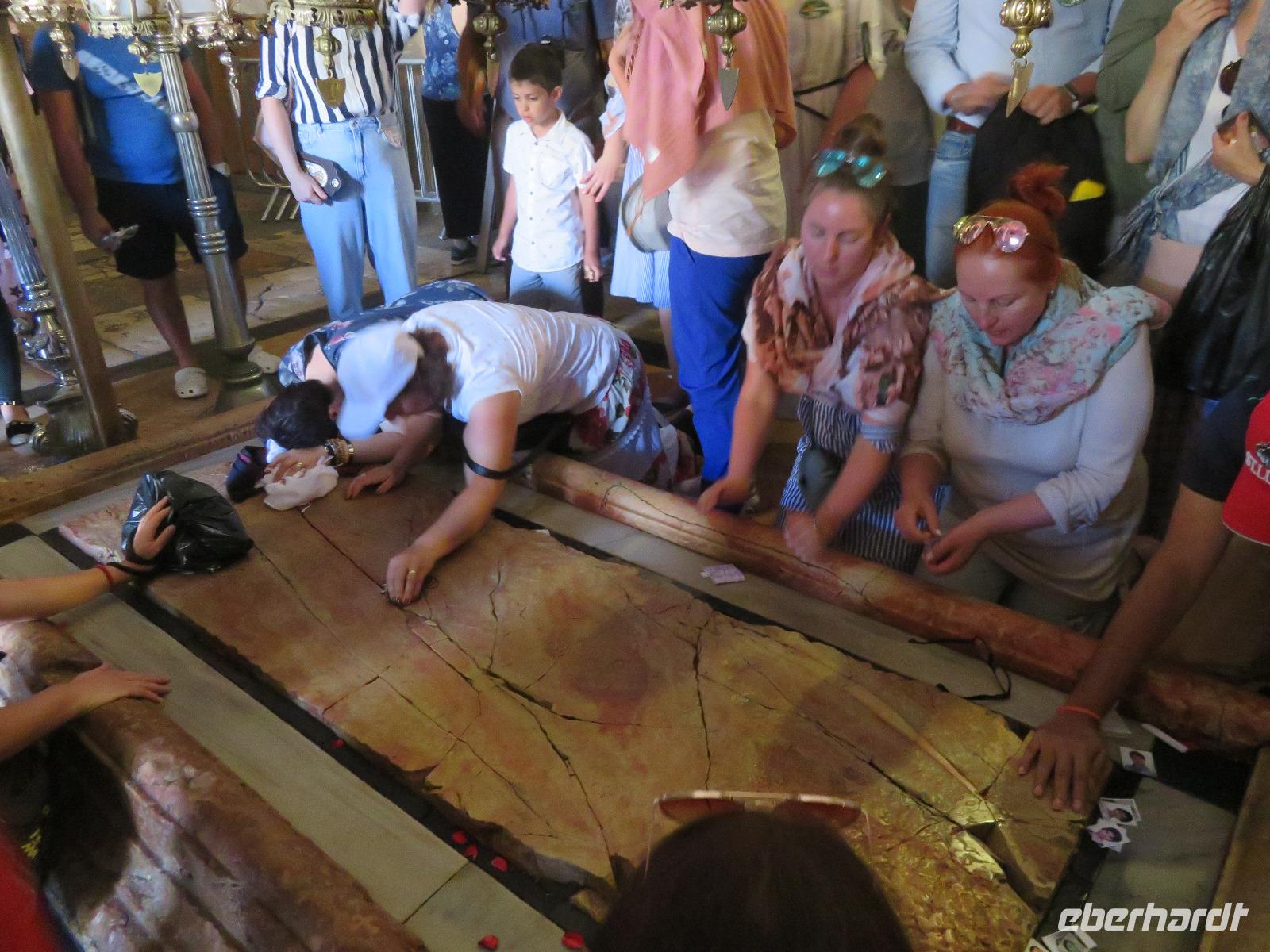 Wir wussten um die heilende Wirkung des Toten Meeres, so dass wir erfreut waren über den Halt in einer bekannten Kosmetikfabrik. Interessiert stöberten wir im reichhaltigen Angebot und nahmen für die Lieben zu Hause ein paar Mitbringsel mit. Anschließend setzten wir die Fahrt zu den Höhlen von Qumran fort, in denen zufällig 1947 ein Beduinenjunge die mittlerweile weltberühmten und jahrtausende alten Schriftrollen von Jesaja in mehreren Tonkrügen gefunden hatte. Die originalen Schriftrollen werden heute im Schrein des Buches im Israel-Museum in Jerusalem aufbewahrt. Die Ausgrabungsstätte, der uns gezeigte Film und die bildhaften Erklärungen von Ronit ließen uns gut erahnen, wie das Leben der Urchristen verlief und wie zufällig der Fund der Rollen war. Bevor wir nun die wahrscheinlich älteste Stadt der Welt besuchten, mussten wir uns leider von unserem lieb gewonnenen Busfahrer Ami verabschieden. Wir begrüßten seinen eingesprungenen Ersatzmann Josef und setzten die Fahrt in das Palästinensische Autonomiegebiet nach Jericho fort. Dort angekommen, stärkten wir uns mit typischen Speisen oder einem willkommenem kühlen Bier. Immerhin waren wieder enorm hohe Temperaturen von 42 °C auf dem Thermometer abzulesen. Erfrischt und munter bewanderten wir zusammen die Siedlungs-Ausgrabungen von Tell es-Sultan und sahen den Turm von Jericho, der älteste Steinturm der Welt, umgeben von alten runden Lehmziegelbauten. Ronit erklärte uns ebenfalls die biblische Geschichte zur Jericho-Trompete, nach deren Überlieferung der bloße Klang von Trompeten die gewaltigen Stadtmauern zum Einsturz gebracht haben sollen. Leider sollte das erstes Kind dessen sterben, der sie wieder aufbaut. Da wir nur Reste von Stadtmauern sahen, ließ der Wahrheitsgehalt Raum für viele Spekulationen. :-) Unser folgender Besichtigungspunkt war der Berg der Versuchung. Hier hat Jesus 40 Tage gefastet und während dieser Zeit den Veruchungen des Teufels widerstanden. Wir setzten uns in drei kleine abenteuerliche Gondeln und fuhren zum Berg hinauf. Das war dennoch noch nicht das finale Ziel. Vor uns lag ein steiler Weg zum Kloster hinauf, welches wie ein Wespennest am Fels zu kleben schien. Glücklich, oben angekommen zu sein, bestaunten wir das Kloster, die Höhle und die ehemalige Grotte, in der Jesus seine Fasten- und Gebetszeit verbracht haben soll. Eine andere Reisegruppe traf ebenfalls in der Kapelle ein und begann wunderschön zu singen. Gespannt hielten wir einen kurzen Moment still und lauschten gebannt. Der Abstieg wurde von einem wundervollem weitem Blick über die Palmenstadt belohnt. Nun fuhren auch wir singend mit der Seilbahn wieder hinab und stiegen gut gelaunt in unseren Bus. Auf dem Rückweg durch die judäische Wüste hielten wir im bekannten Kibbutz Ein Gedi und erhielten eine Führung im prächtigen Botanischen Garten, welcher über 900 verschiedene Pflanzen- und Baumarten beherbergt. Wieder im Hotel angekommen, entspannte jeder nach Lust und Laune bis zum Abendessen. Dieses war für uns Touristen sehr besonders, denn es war der Beginn des Sabbat. Der jüdische Ruhetag beginnt am Freitagabend mit dem Sabbatsegen, auch Kiddusch genannt sowie gutem Essen. Diesen Segensspruch über einem Glas Wein konnten wir bei vielen Hotelgästen neugierig beobachten. Gemeinsam ließen wir diesen anstrengenden Tag ausklingen.