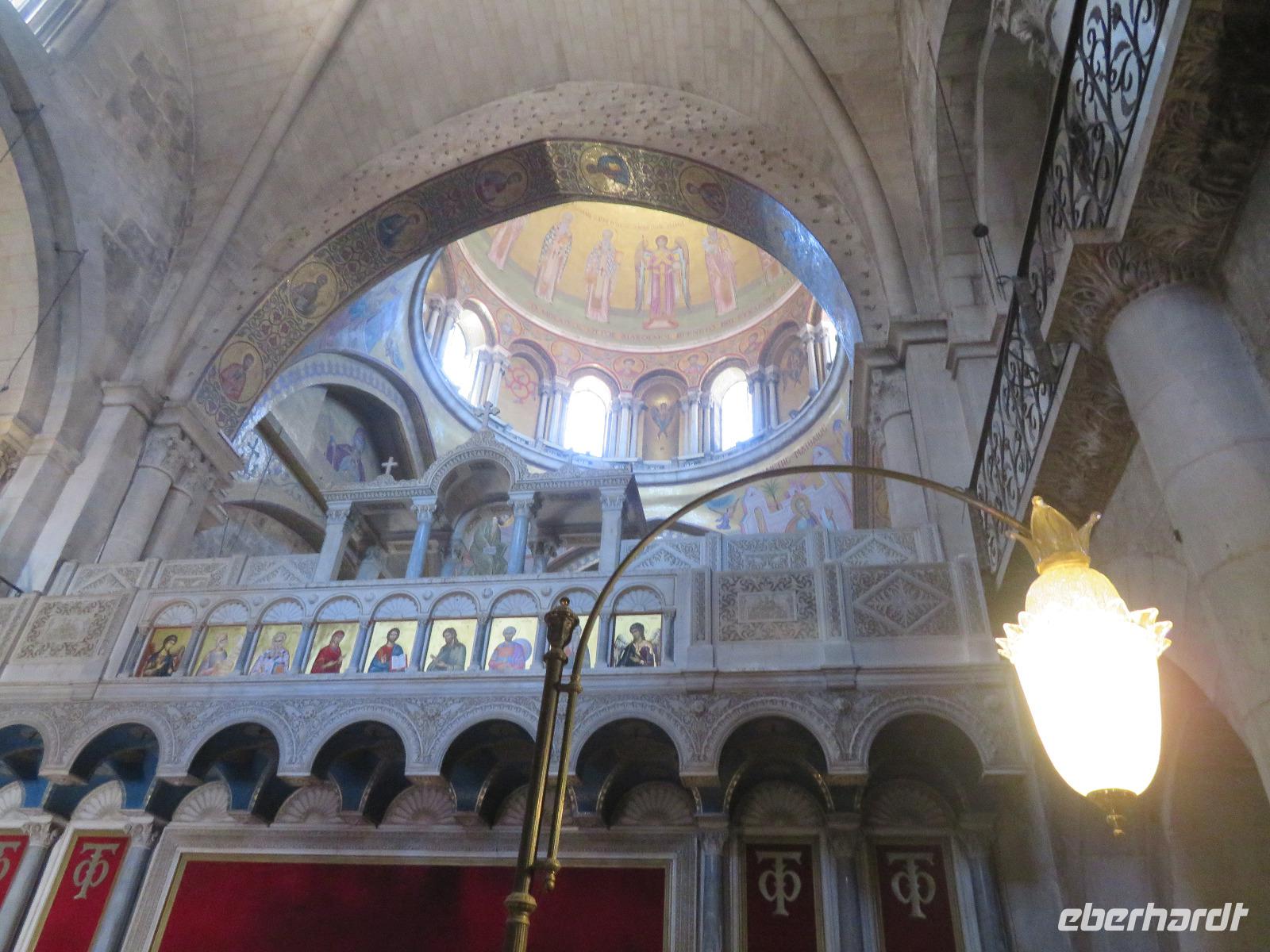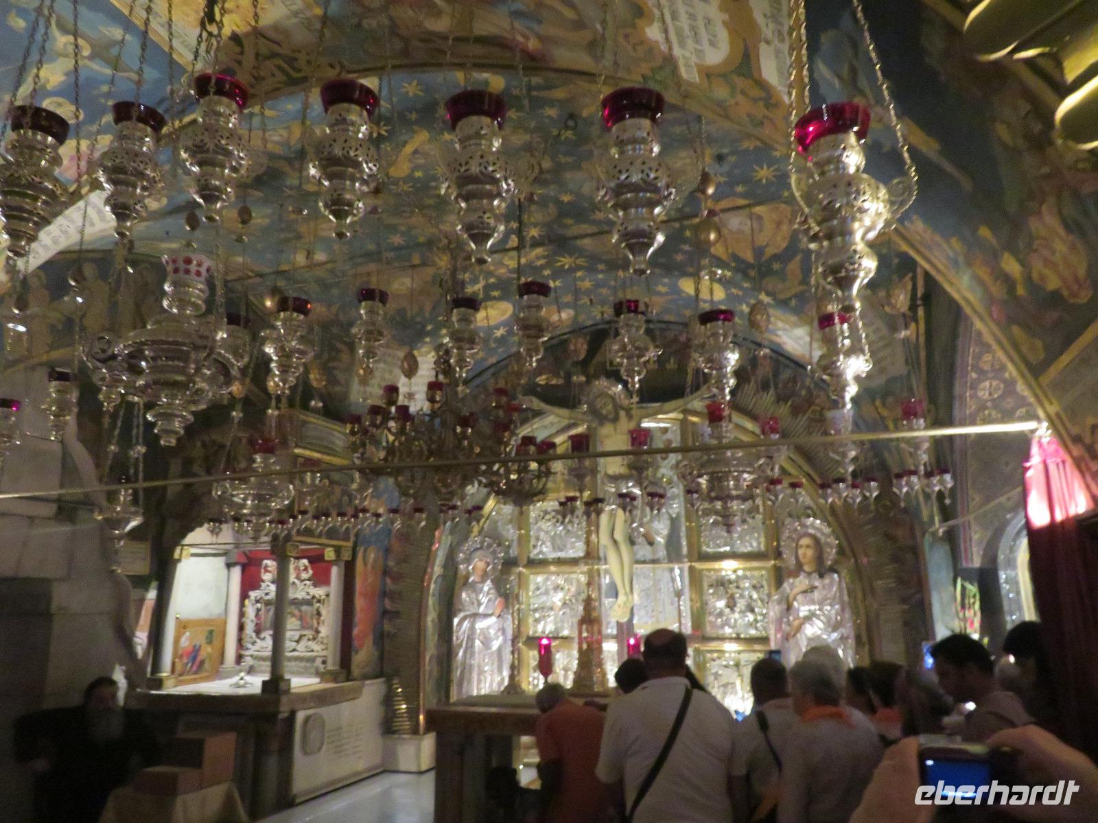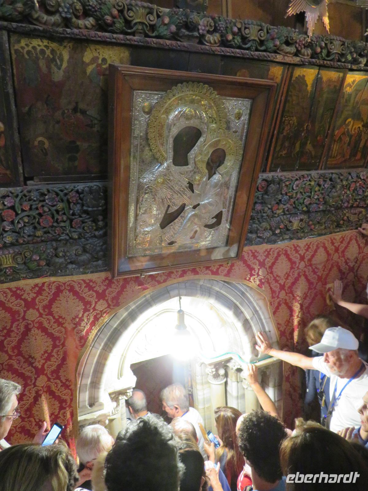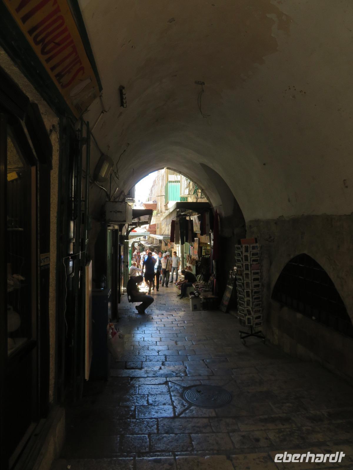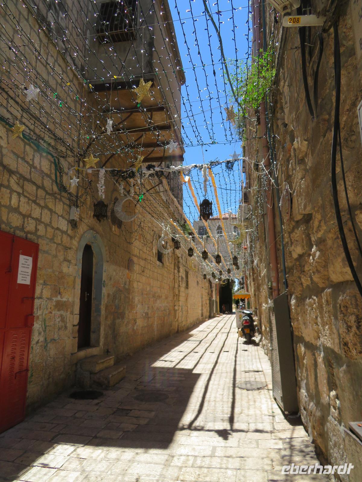Wir wussten um die heilende Wirkung des Toten Meeres, so dass wir erfreut waren über den Halt in einer bekannten Kosmetikfabrik. Interessiert stöberten wir im reichhaltigen Angebot und nahmen für die Lieben zu Hause ein paar Mitbringsel mit. Anschließend setzten wir die Fahrt zu den Höhlen von Qumran fort, in denen zufällig 1947 ein Beduinenjunge die mittlerweile weltberühmten und jahrtausende alten Schriftrollen von Jesaja in mehreren Tonkrügen gefunden hatte. Die originalen Schriftrollen werden heute im Schrein des Buches im Israel-Museum in Jerusalem aufbewahrt. Die Ausgrabungsstätte, der uns gezeigte Film und die bildhaften Erklärungen von Ronit ließen uns gut erahnen, wie das Leben der Urchristen verlief und wie zufällig der Fund der Rollen war. Bevor wir nun die wahrscheinlich älteste Stadt der Welt besuchten, mussten wir uns leider von unserem lieb gewonnenen Busfahrer Ami verabschieden. Wir begrüßten seinen eingesprungenen Ersatzmann Josef und setzten die Fahrt in das Palästinensische Autonomiegebiet nach Jericho fort. Dort angekommen, stärkten wir uns mit typischen Speisen oder einem willkommenem kühlen Bier. Immerhin waren wieder enorm hohe Temperaturen von 42 °C auf dem Thermometer abzulesen. Erfrischt und munter bewanderten wir zusammen die Siedlungs-Ausgrabungen von Tell es-Sultan und sahen den Turm von Jericho, der älteste Steinturm der Welt, umgeben von alten runden Lehmziegelbauten. Ronit erklärte uns ebenfalls die biblische Geschichte zur Jericho-Trompete, nach deren Überlieferung der bloße Klang von Trompeten die gewaltigen Stadtmauern zum Einsturz gebracht haben sollen. Leider sollte das erstes Kind dessen sterben, der sie wieder aufbaut. Da wir nur Reste von Stadtmauern sahen, ließ der Wahrheitsgehalt Raum für viele Spekulationen. :-) Unser folgender Besichtigungspunkt war der Berg der Versuchung. Hier hat Jesus 40 Tage gefastet und während dieser Zeit den Veruchungen des Teufels widerstanden. Wir setzten uns in drei kleine abenteuerliche Gondeln und fuhren zum Berg hinauf. Das war dennoch noch nicht das finale Ziel. Vor uns lag ein steiler Weg zum Kloster hinauf, welches wie ein Wespennest am Fels zu kleben schien. Glücklich, oben angekommen zu sein, bestaunten wir das Kloster, die Höhle und die ehemalige Grotte, in der Jesus seine Fasten- und Gebetszeit verbracht haben soll. Eine andere Reisegruppe traf ebenfalls in der Kapelle ein und begann wunderschön zu singen. Gespannt hielten wir einen kurzen Moment still und lauschten gebannt. Der Abstieg wurde von einem wundervollem weitem Blick über die Palmenstadt belohnt. Nun fuhren auch wir singend mit der Seilbahn wieder hinab und stiegen gut gelaunt in unseren Bus. Auf dem Rückweg durch die judäische Wüste hielten wir im bekannten Kibbutz Ein Gedi und erhielten eine Führung im prächtigen Botanischen Garten, welcher über 900 verschiedene Pflanzen- und Baumarten beherbergt. Wieder im Hotel angekommen, entspannte jeder nach Lust und Laune bis zum Abendessen. Dieses war für uns Touristen sehr besonders, denn es war der Beginn des Sabbat. Der jüdische Ruhetag beginnt am Freitagabend mit dem Sabbatsegen, auch Kiddusch genannt sowie gutem Essen. Diesen Segensspruch über einem Glas Wein konnten wir bei vielen Hotelgästen neugierig beobachten. Gemeinsam ließen wir diesen anstrengenden Tag ausklingen.