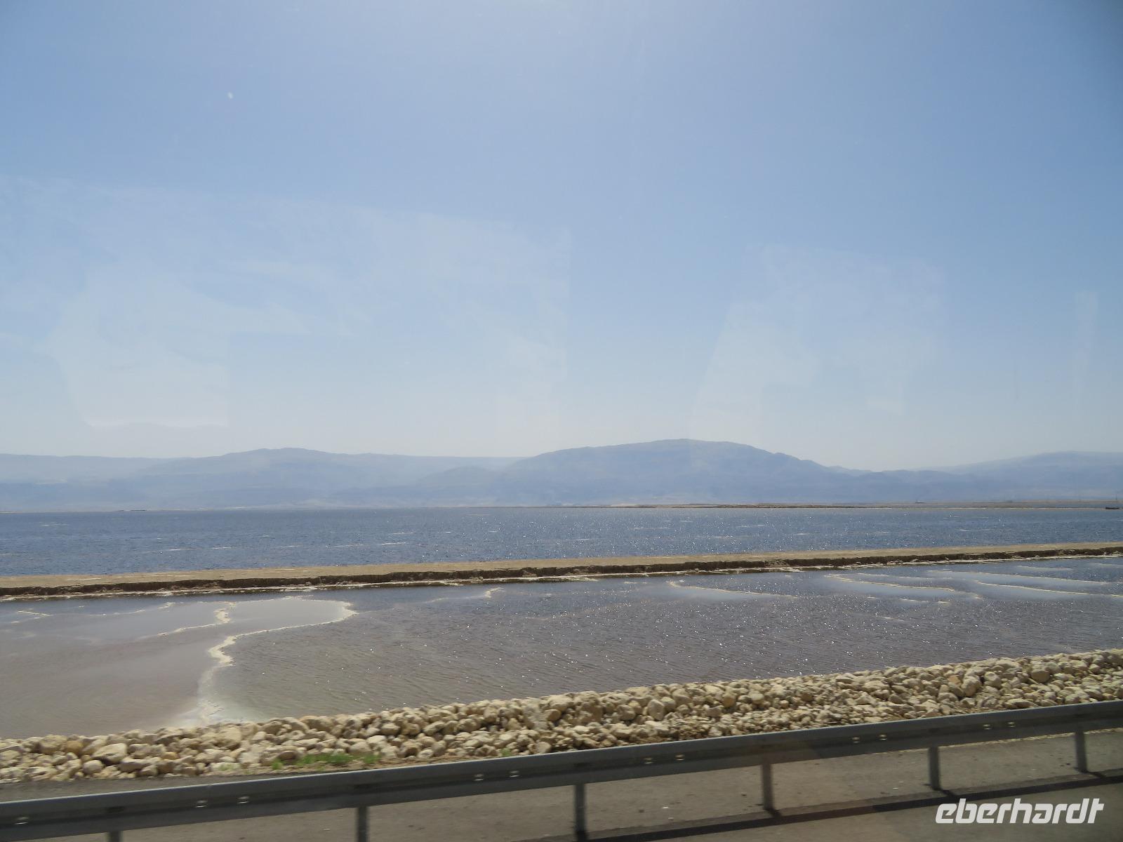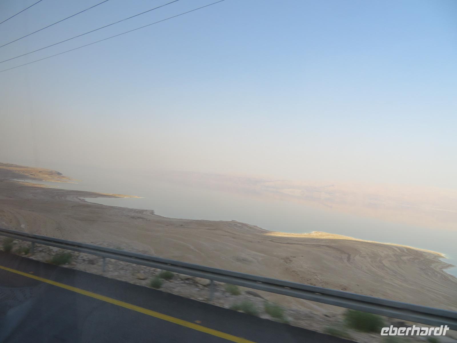 Ronit war gnädig mit der Abfahrtsszeit, so konnten wir ein letztes Mal die Chance nutzen und im Toten Meer baden gehen. Kurz nach Sonnenaufgang trafen wir uns in der Hotel-Lobby und waren überrascht, dass ja doch schon einiges los war im Wasser. Badegäste trieben entspannt umher und genossen die noch nicht allzu warmen Sonnenstrahlen.