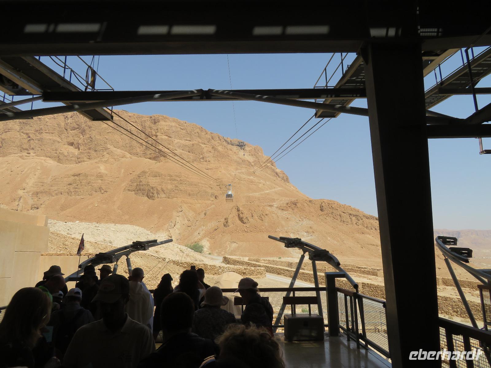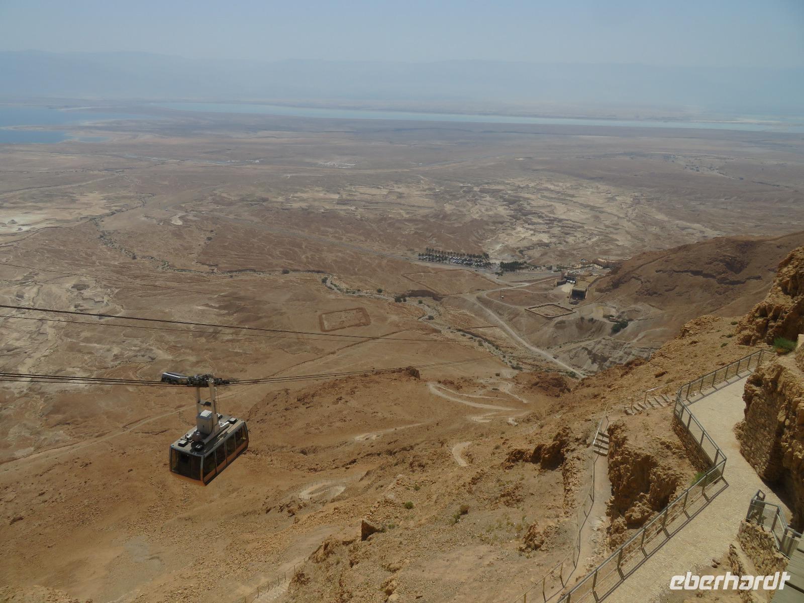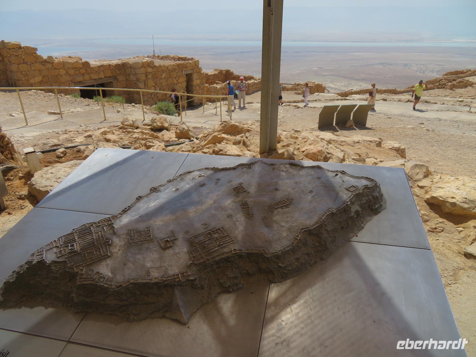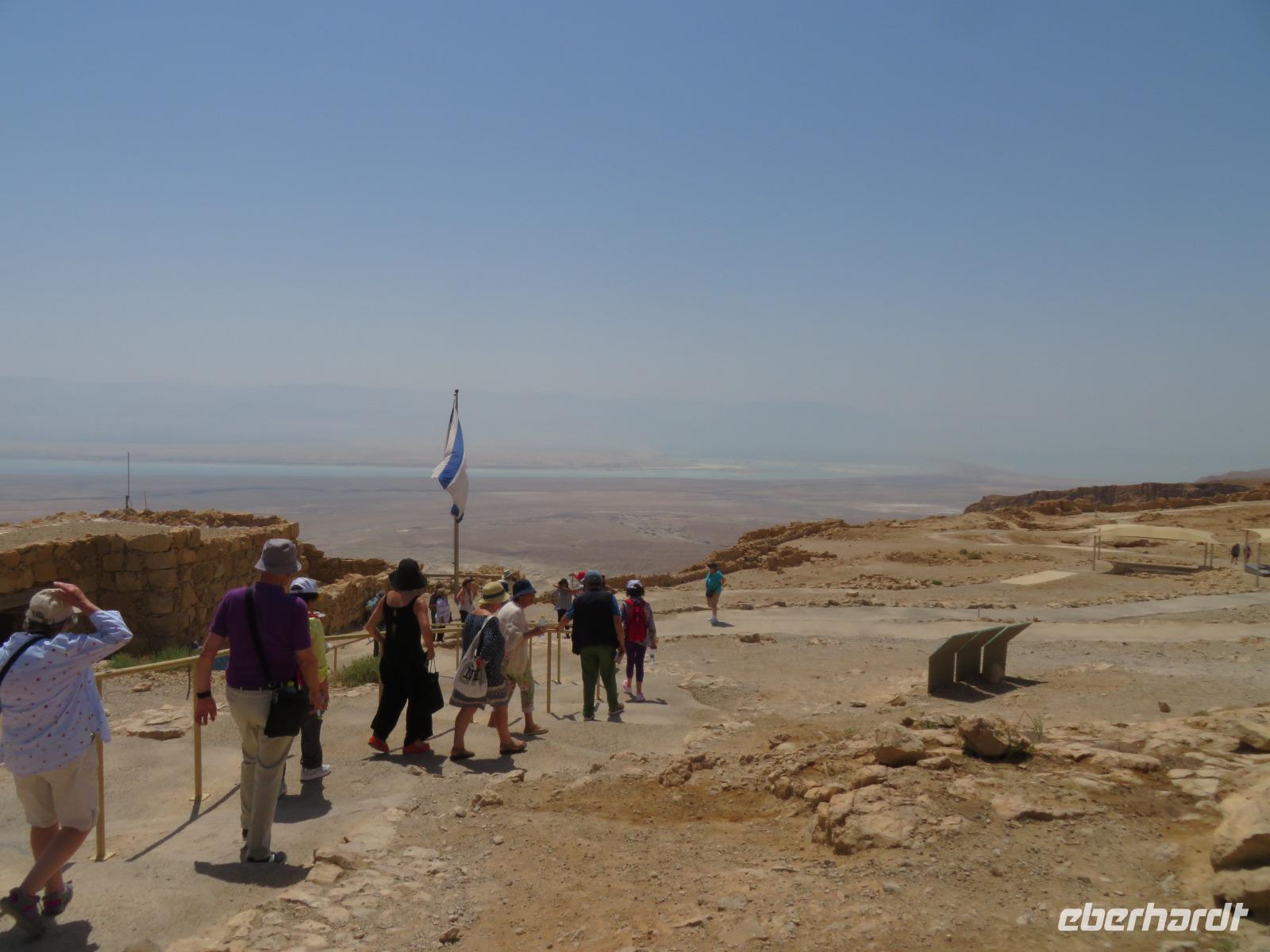 Der erste Morgen am Toten Meer. Langsam kam die Sonne hinter den gegenüber liegenden Bergen Jordaniens zum Vorschein. Der Tag versprach wieder sehr warm zu werden. Gestärkt vom reichhaltigen Frühstück fuhren wir zur imposanten Felsenfestung von Massada. Per Seilbahn erreichten wir den gigantischen Festungsbau auf einem Felsplateau, welchen Herodes als Schutz vor seinen jüdischen Feinden und Kleopatra erbauen ließ. Er selbst weilte aber nur ein einziges mal an diesem Ort. Nicht nur die einzigartige Aussicht auf die umliegende Wüste und das Tote Meer, auch die bewegte Geschichte verzweifelt kämpfender Juden beeindruckte uns. Im Jahr 70 n. Chr. eroberten die Römer Jerusalem und begannen mit der Belagerung Massadas, da sich dort jüdische Rebellen verschanzten. Diese Belagerungsplätze und Erdwälle konnten wir noch immer vom Plateau aus erkennen. Um nicht in die Hände der römischen Feinde zu gelangen, verübte ein Rest von ca. 1.000 Eingeschlossenen kollektiven Selbstmord. Mit diesen und weiteren Ausführungen leitete uns Ronit über das Plateau durch den ehemaligen Palast, Empfangsräumen mit wunderschönen Mosaikböden, Badeanlagen und erklärte uns das ausgeklügelte Zisternen-System. Die Sonne stand hoch am Himmel und zeigte uns mit aller Kraft, was sie kann. So waren wir doch etwas froh, als wir den Abstieg über die Römerrampe zum klimatisierten Bus antraten. Ami wartete bereits auf uns, so dass wir gleich zu einem Beduinendorf fahren konnten. Dort erwartete uns eine sehr nette Beduinenfrau, welche uns mit vielen Ausführungen zum traditionellen Leben in der Wüste bei Kaffee und Tee unterhielt. Nachdem wir wieder typisch israelisch zu Mittag aßen, traten wir den Rückweg zum Hotel an. Nun konnten wir endlich das vielen bekannte, aber noch nicht selbst probierte Schweben im Wasser ausprobieren. Begeistert ließen wir uns im warmen Wasser treiben. Der Ein oder Andere versuchte auch "richtig" zu schwimmen, was allerdings in tauchen endete. Dies ist aber bei einem Salzgehalt von 30% nicht zu empfehlen. Unversehrt trafen wir uns alle beim Abendessen im Hotel und ließen den ereignisreichen Tag gemeinsam ausklingen.