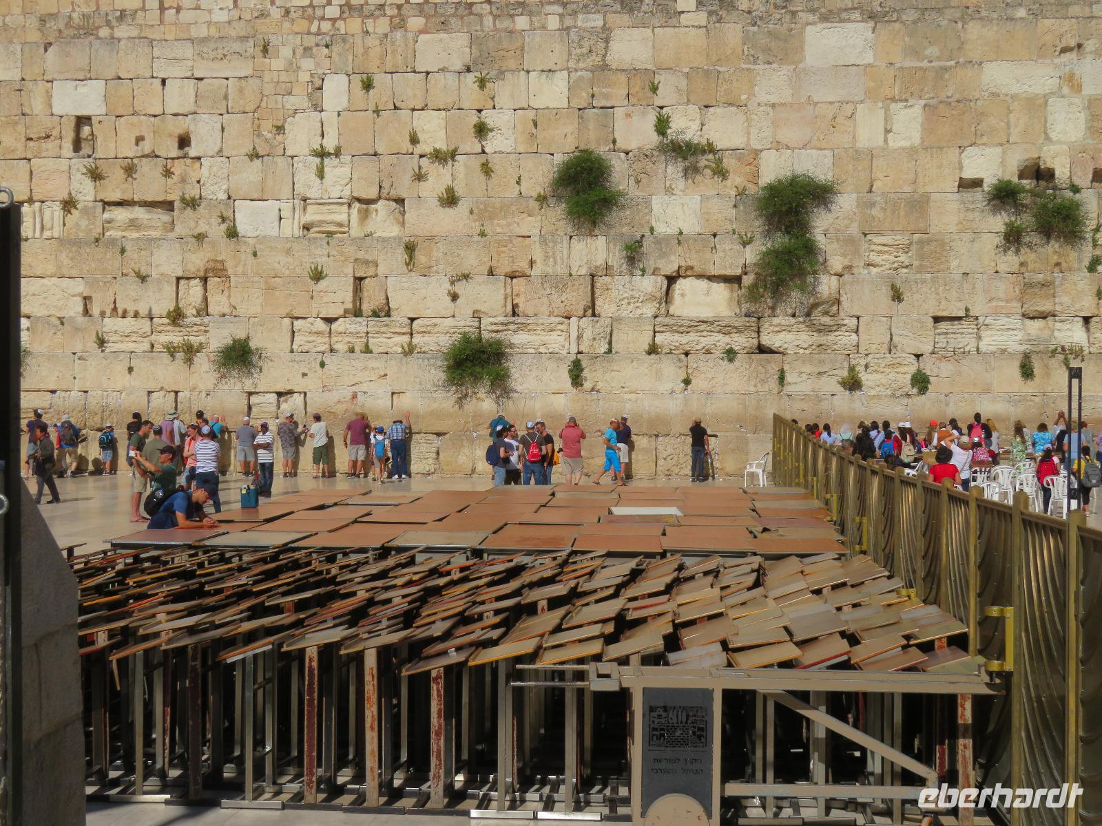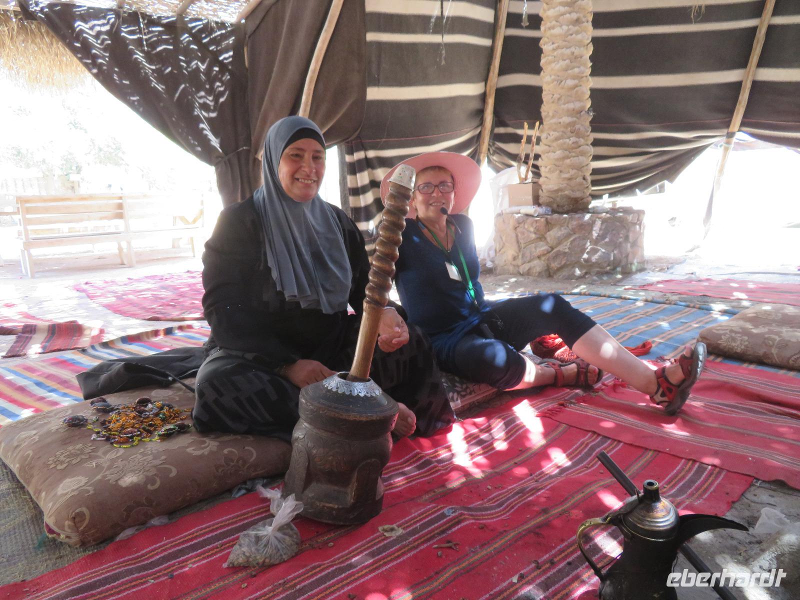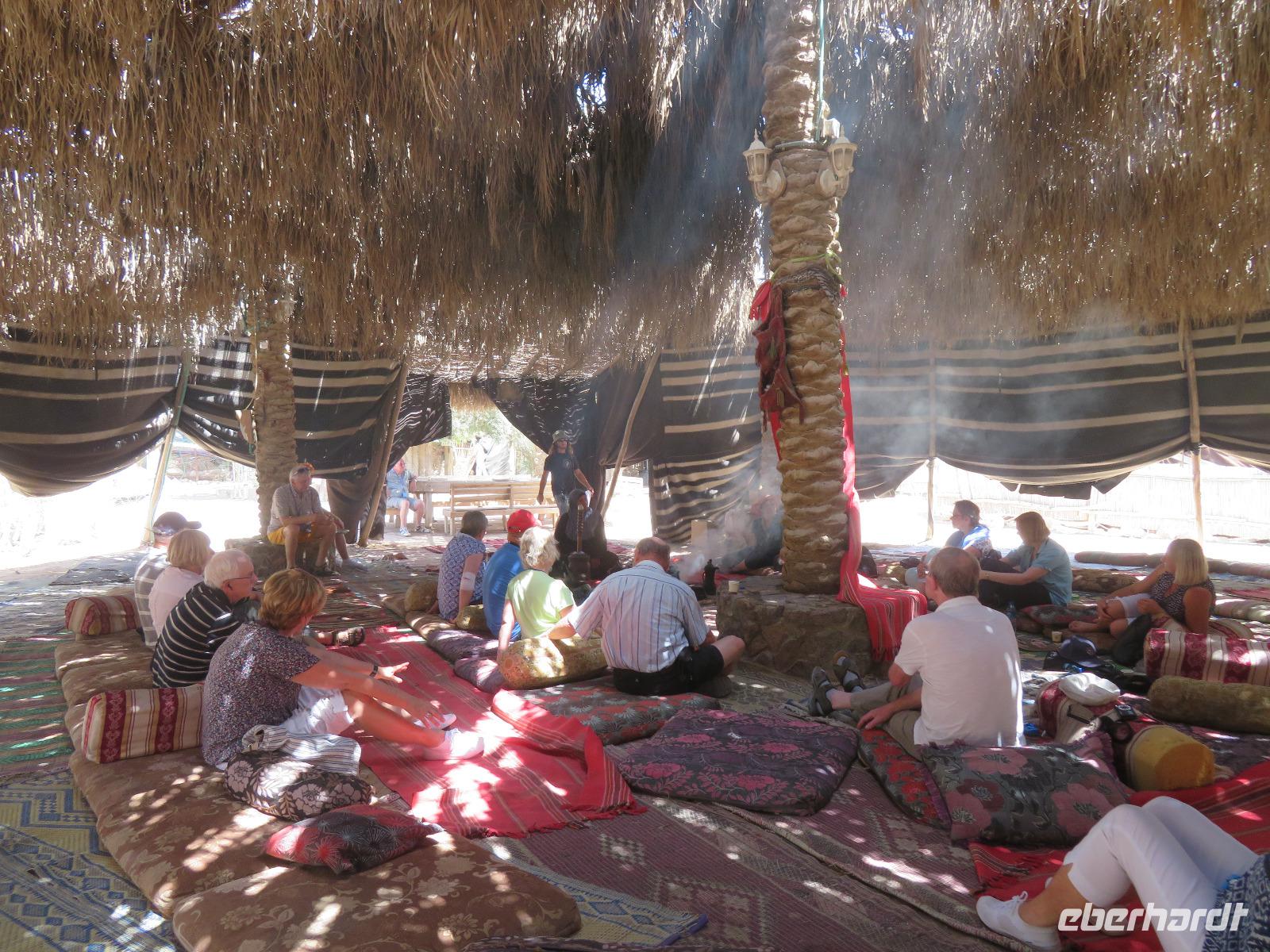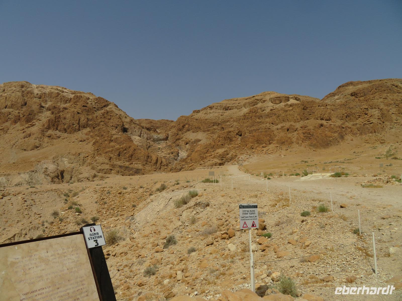 Der erste Morgen am Toten Meer. Langsam kam die Sonne hinter den gegenüber liegenden Bergen Jordaniens zum Vorschein. Der Tag versprach wieder sehr warm zu werden. Gestärkt vom reichhaltigen Frühstück fuhren wir zur imposanten Felsenfestung von Massada. Per Seilbahn erreichten wir den gigantischen Festungsbau auf einem Felsplateau, welchen Herodes als Schutz vor seinen jüdischen Feinden und Kleopatra erbauen ließ. Er selbst weilte aber nur ein einziges mal an diesem Ort. Nicht nur die einzigartige Aussicht auf die umliegende Wüste und das Tote Meer, auch die bewegte Geschichte verzweifelt kämpfender Juden beeindruckte uns. Im Jahr 70 n. Chr. eroberten die Römer Jerusalem und begannen mit der Belagerung Massadas, da sich dort jüdische Rebellen verschanzten. Diese Belagerungsplätze und Erdwälle konnten wir noch immer vom Plateau aus erkennen. Um nicht in die Hände der römischen Feinde zu gelangen, verübte ein Rest von ca. 1.000 Eingeschlossenen kollektiven Selbstmord. Mit diesen und weiteren Ausführungen leitete uns Ronit über das Plateau durch den ehemaligen Palast, Empfangsräumen mit wunderschönen Mosaikböden, Badeanlagen und erklärte uns das ausgeklügelte Zisternen-System. Die Sonne stand hoch am Himmel und zeigte uns mit aller Kraft, was sie kann. So waren wir doch etwas froh, als wir den Abstieg über die Römerrampe zum klimatisierten Bus antraten. Ami wartete bereits auf uns, so dass wir gleich zu einem Beduinendorf fahren konnten. Dort erwartete uns eine sehr nette Beduinenfrau, welche uns mit vielen Ausführungen zum traditionellen Leben in der Wüste bei Kaffee und Tee unterhielt. Nachdem wir wieder typisch israelisch zu Mittag aßen, traten wir den Rückweg zum Hotel an. Nun konnten wir endlich das vielen bekannte, aber noch nicht selbst probierte Schweben im Wasser ausprobieren. Begeistert ließen wir uns im warmen Wasser treiben. Der Ein oder Andere versuchte auch "richtig" zu schwimmen, was allerdings in tauchen endete. Dies ist aber bei einem Salzgehalt von 30% nicht zu empfehlen. Unversehrt trafen wir uns alle beim Abendessen im Hotel und ließen den ereignisreichen Tag gemeinsam ausklingen.