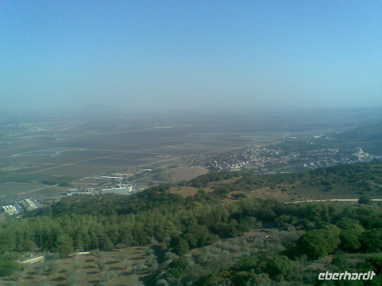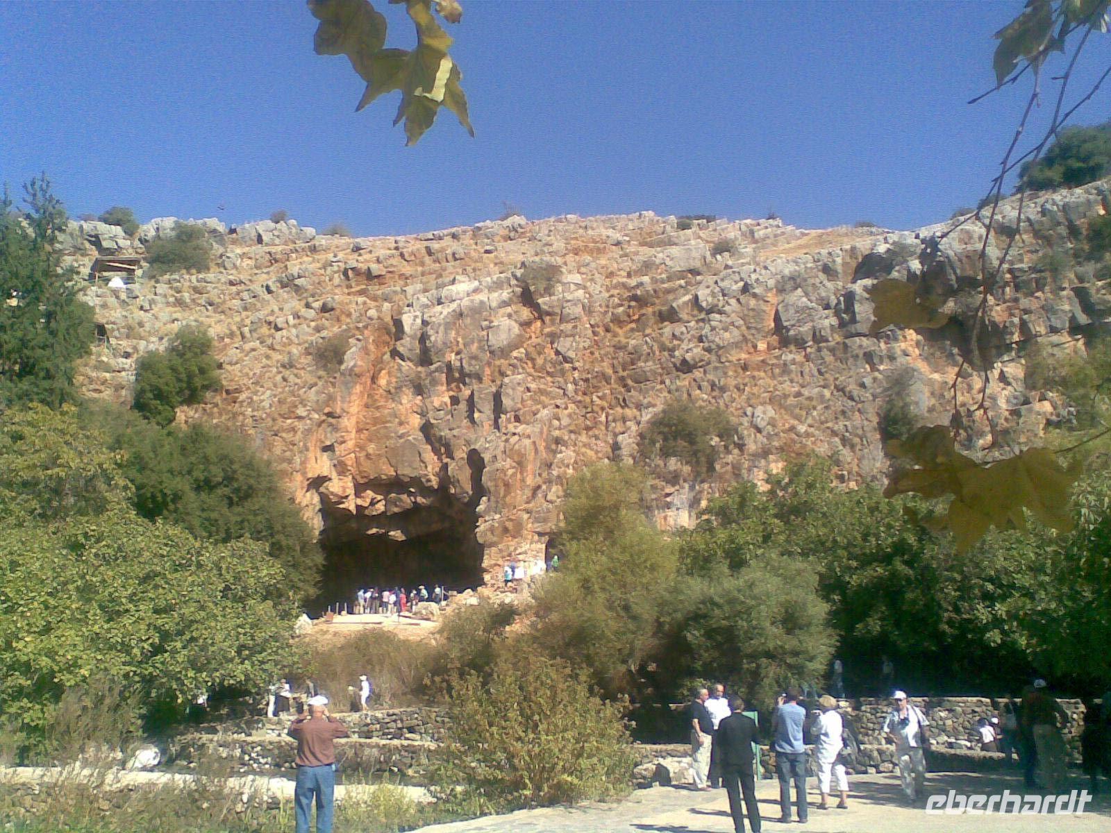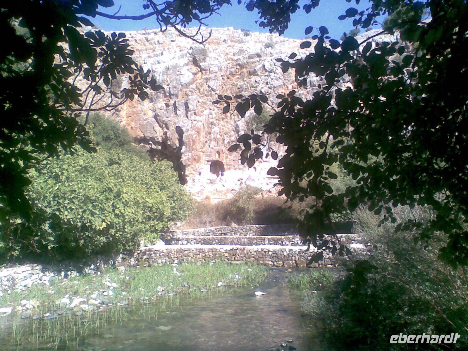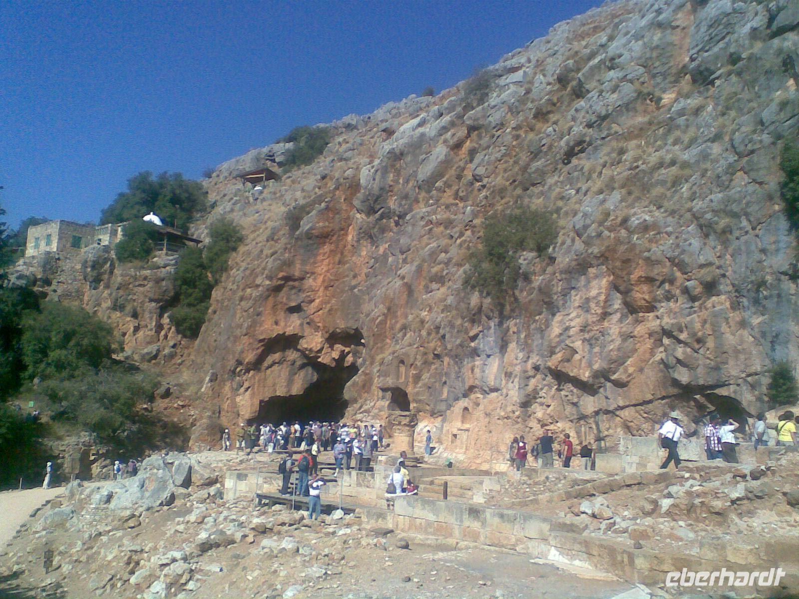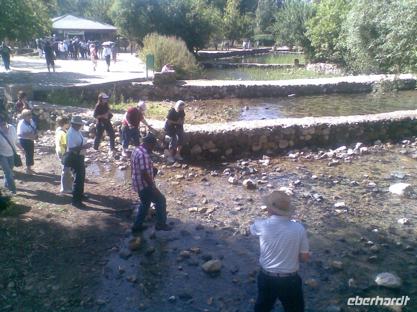 Die Hauptattraktion hier ist ein antikes Holzboot. Dieses wurde erst im Jahre 1986, nach einem Dürrejahr, in dem der Wasserspiegel des Sees Genezareth sank, entdeckt. Das Boot war ganz im Schlamm des Seeufers versunken und dadurch geschützt worden. Archäologen und einige Freiwillige retteten nach einigen Tagen begeisterten Grabens das Boot aus dem Schlamm. Das Boot wurde auf ein Alter von 2.000 Jahren geschätzt und ermöglichte einen Blick auf eine besonders historische Periode, als die Ufer des Sees den Hintergrund für die Mission Jesu an seine Jünger bildeten. Jetzt führte uns unsere Reise weiter in den äußersten Norden des Landes zum Ursprung des bedeutendsten Flusses Israels. Der Banyas ist der zweitgrößte Quellfluss des Jordan und entspringt aus einer rotgrauen Felswand und sammelt sich in mehreren Quellteichen. Wir fuhren übrigens direkt an der Grenze zum Libanon dorthin und konnten schon von weitem einige Dörfer auf libanesischem Staatsgebiet erkennen - diese Gegend war einst sehr umkämpft. Nun ging es über die Golan-Höhen an der syrischen Grenze entlang zurück zum See Genezareth.
