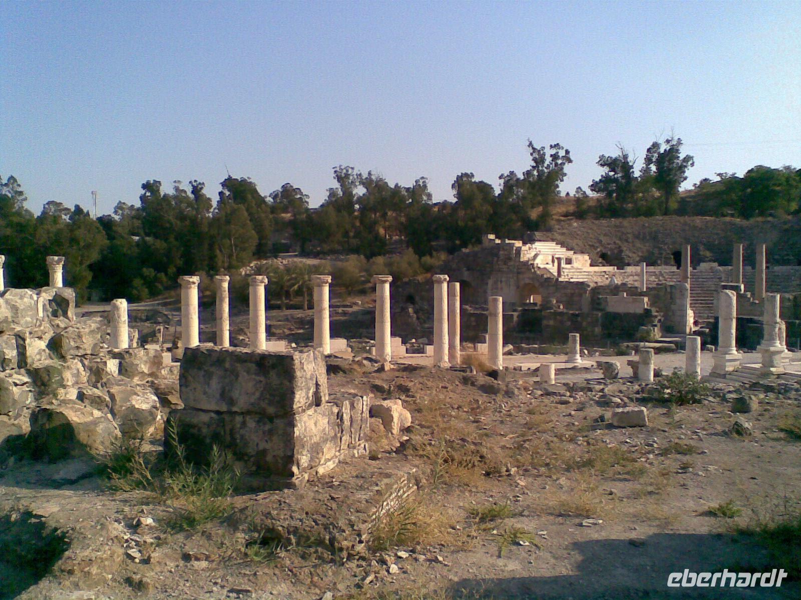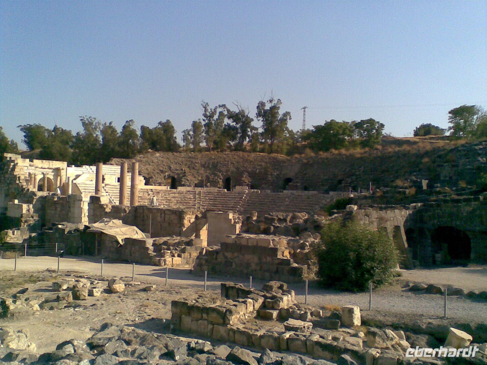 Anschließend stand Nazareth auf unserem Programm. Nazareth ist der Ort, in dem Maria vom Erzengel Gabriel die Geburt Jesu verkündigt wurde. Hier hat Jesus auch den größten Teil seines Lebens verbracht. Wir besuchten die Verkündigungskirche, die gleichzeitig auch der größte neuzeitliche Kirchenbau Israels und eine der bedeutendsten christlichen Wallfahrtsstätten ist. Nach einer kleinen Mittagspause ging es am Nachmittag weiter nach Bet She´an. Vor etwa 25 Jahren brachten Ausgrabungen die Ruinen einer antiken Stadt zum Vorschein, die in byzantinischer Zeit größer als Jerusalem gewesen sein soll und heute als Nationalpark zu den bedeutendsten archäologischen Stätten Israels zählt. Das Theater, die Badehäuser, die Tempel und die Kolonnadenstraßen machen deutlich, wie weit entwickelt diese Stadt einst war. Bet She´an war über 1.000 Jahre bewohnt, bis im 8. Jahrhundert ein Erdbeben die Stadt zerstörte. Am späten Nachmittag erreichten wir schließlich unseren Kibbuz "Kalia" in der Nähe des Toten Meeres. Leider war dieser Kibbutz nicht so komfortabel wie unserer erster Kibbutz am See Genezareth, aber wir waren wahrscheinlich schon etwas verwöhnt.