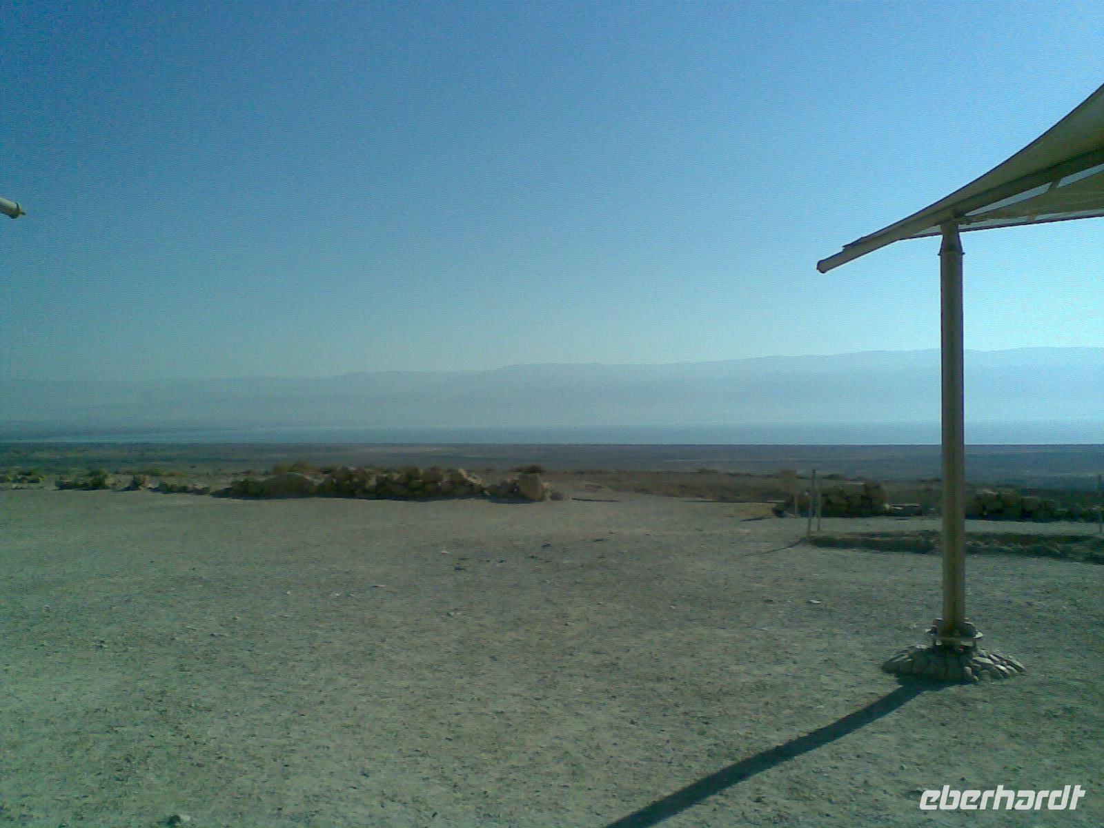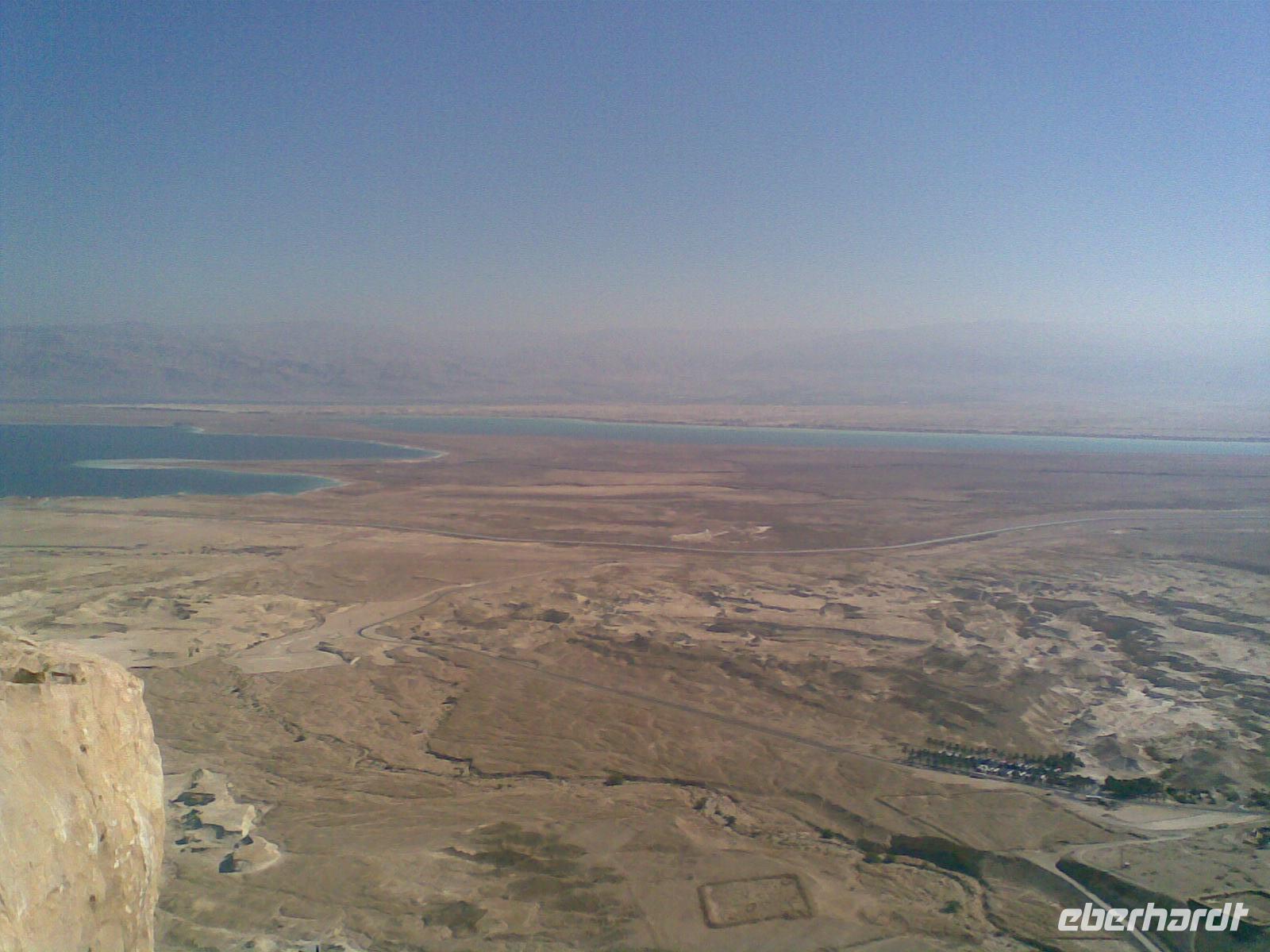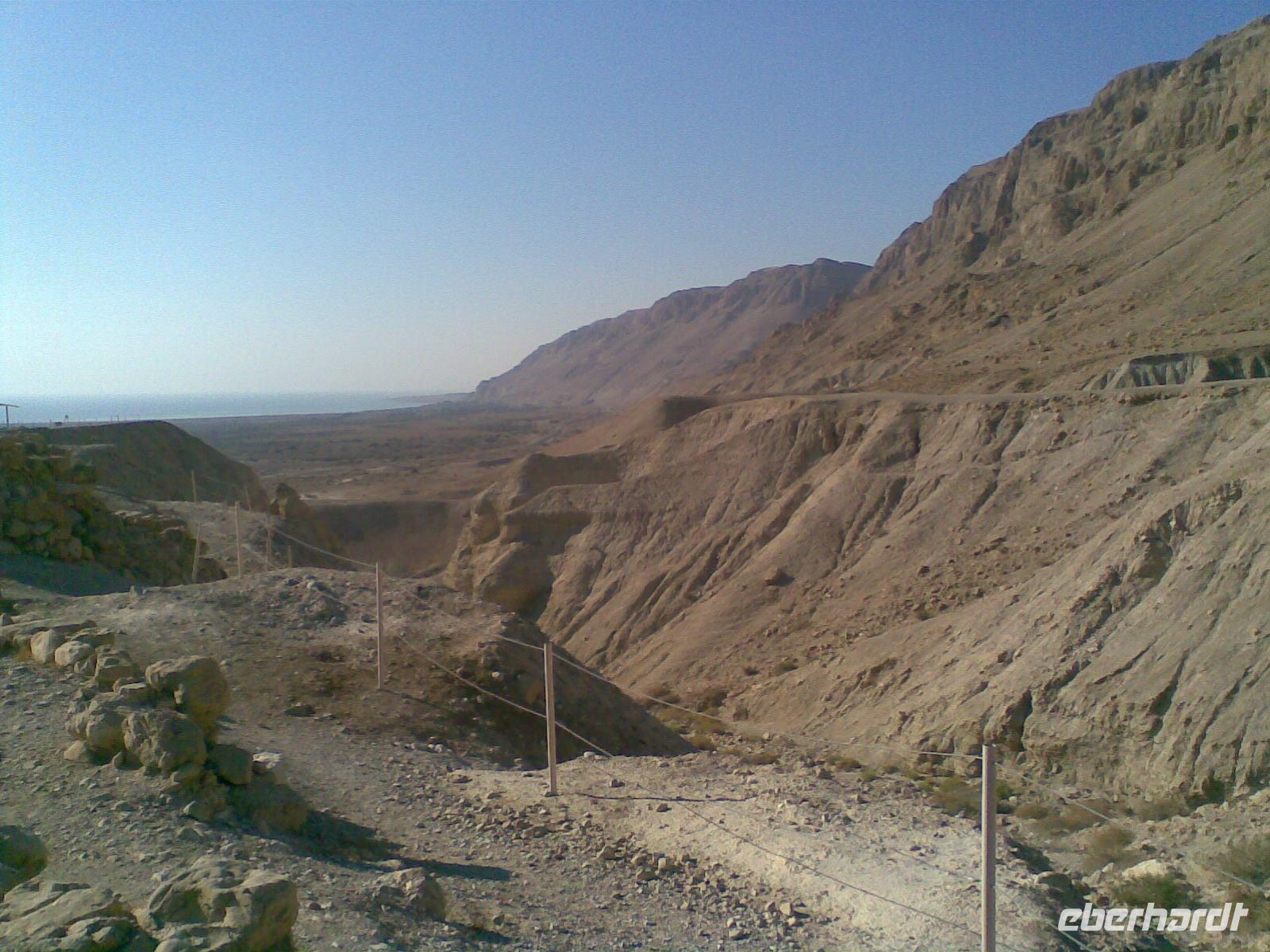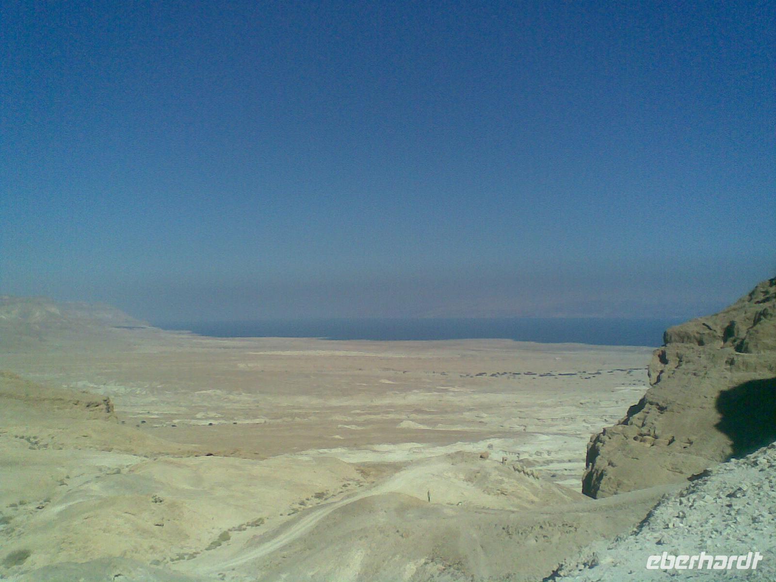 Am nächsten Morgen verließen wir nun den Kibbutz "Almog", wo wir die letzte Nacht verbracht hatten und fuhren letztmalig am Toten Meer entlang und lauschten den Erklärungen von Ilan. Unter dem Toten Meer, so erfuhren wir, wird ein biblisches Symbol für Lasterhaftigkeit vermutet - nämlich die Städte Sodom und Gomorrha. Diese sind wegen ihrer Sünden von Gott zerstört worden, nur Lot und seine Familie wurden gerettet. Seine Frau allerdings wendete sich gegen die Gebote und erstarrte sprichwörtlich zur Salzsäule. Jahrtausendelang hielt man die Ufer des Salzsees übrigens für verflucht. Ob die Städte Sodom und Gomorrha tatsächlich auf dem Grund des Toten Meeres verborgen liegen, konnte bislang nicht bewiesen werden - aber selbst wenn, so wären sie heute unter einer meterdicken Salzschicht begraben.