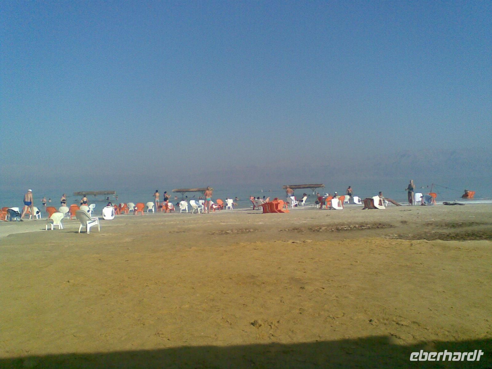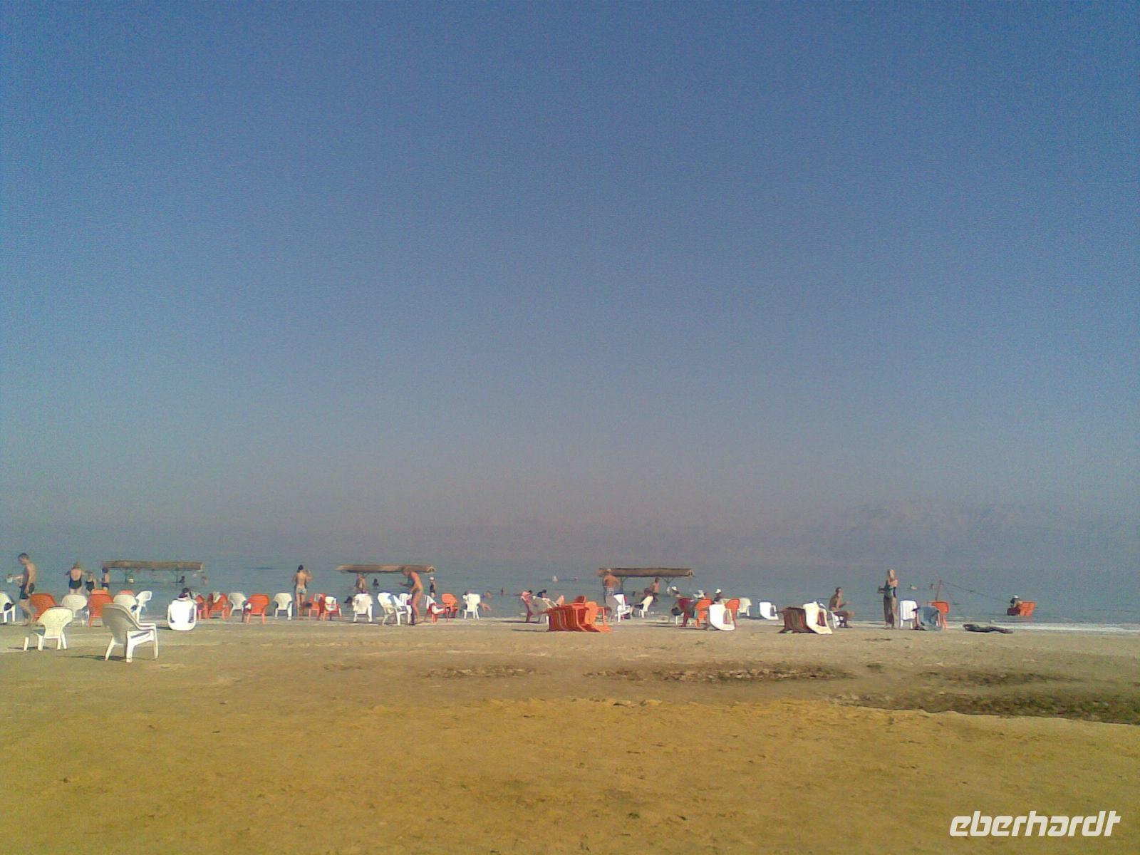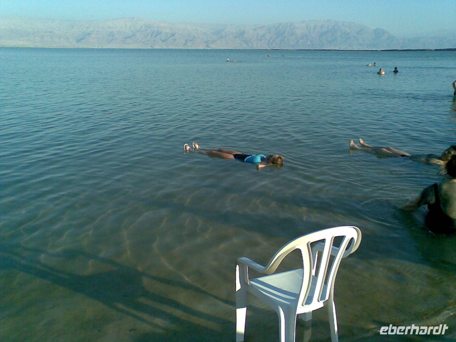 Einmal Baden im Toten Meer - diesen Gedanken hatten fast alle aus unserer Gruppe. Hier kann man auch als Nichtschwimmer unbeschwert im Wasser liegen und dabei noch Zeitung lesen, einfach unglaublich…! Das Tote Meer ist nicht nur das salz-, sondern auch das mineralreichste Gewässer der Erde. Man muss sich vorstellen, dass der Salzgehalt hier im Toten Meer bei über 30 Prozent liegt und somit etwa zehnmal so hoch ist wie im Mittelmeer. Der hohe Salzgehalt hat zur Folge, dass ein Untergehen im Toten Meer praktisch unmöglich ist.