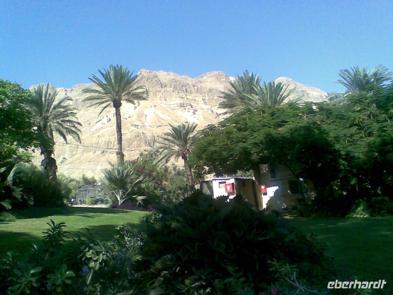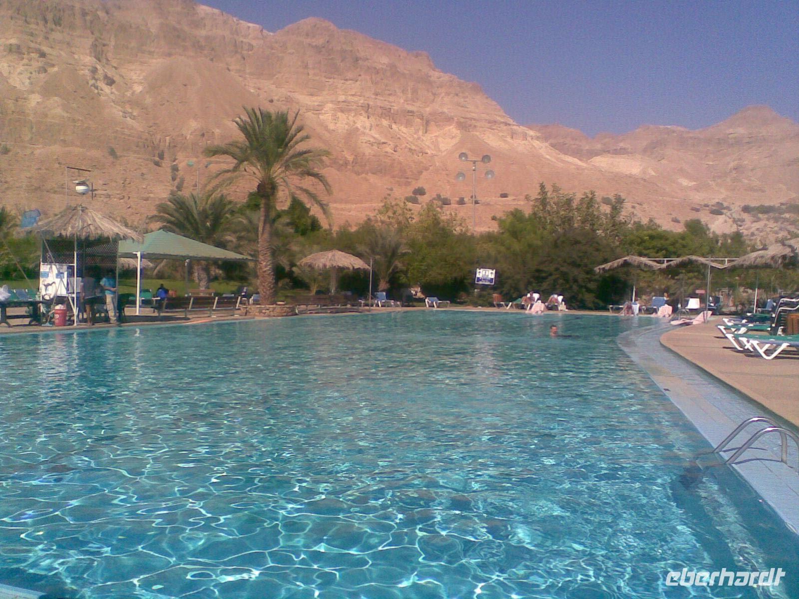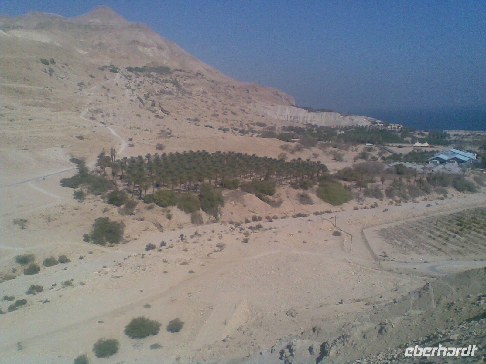 Dieses Bad empfand ich als etwas ganz besonderes, denn außerdem befindet man sich am tiefsten Punkt der Erde - sagenhafte 417 Meter unter dem Meeresspiegel!!! Die Tendenz ist sinkend, denn der Wasserspiegel geht durch die ständige Wasserentnahme aus dem Jordan jährlich um einen Meter zurück. Zur Rettung des Toten Meeres planen Israel und Jordanien nun den Bau eines 300 Kilometer langen Kanals vom Roten Meer ins Tote Meer. Ganz deutlich war der Rückgang des Wasserspiegels im Spa “En Gedi” zu sehen, denn dieses Kurzentrum wurde 1985 eröffnet und lag damals direkt am Toten Meer, heute liegt es ungefähr einen Kilometer vom Meer entfernt. Am späten Nachmittag fuhren wir dann zum Kibbutz "Almog", unserem Domizil für die nächste Nacht.