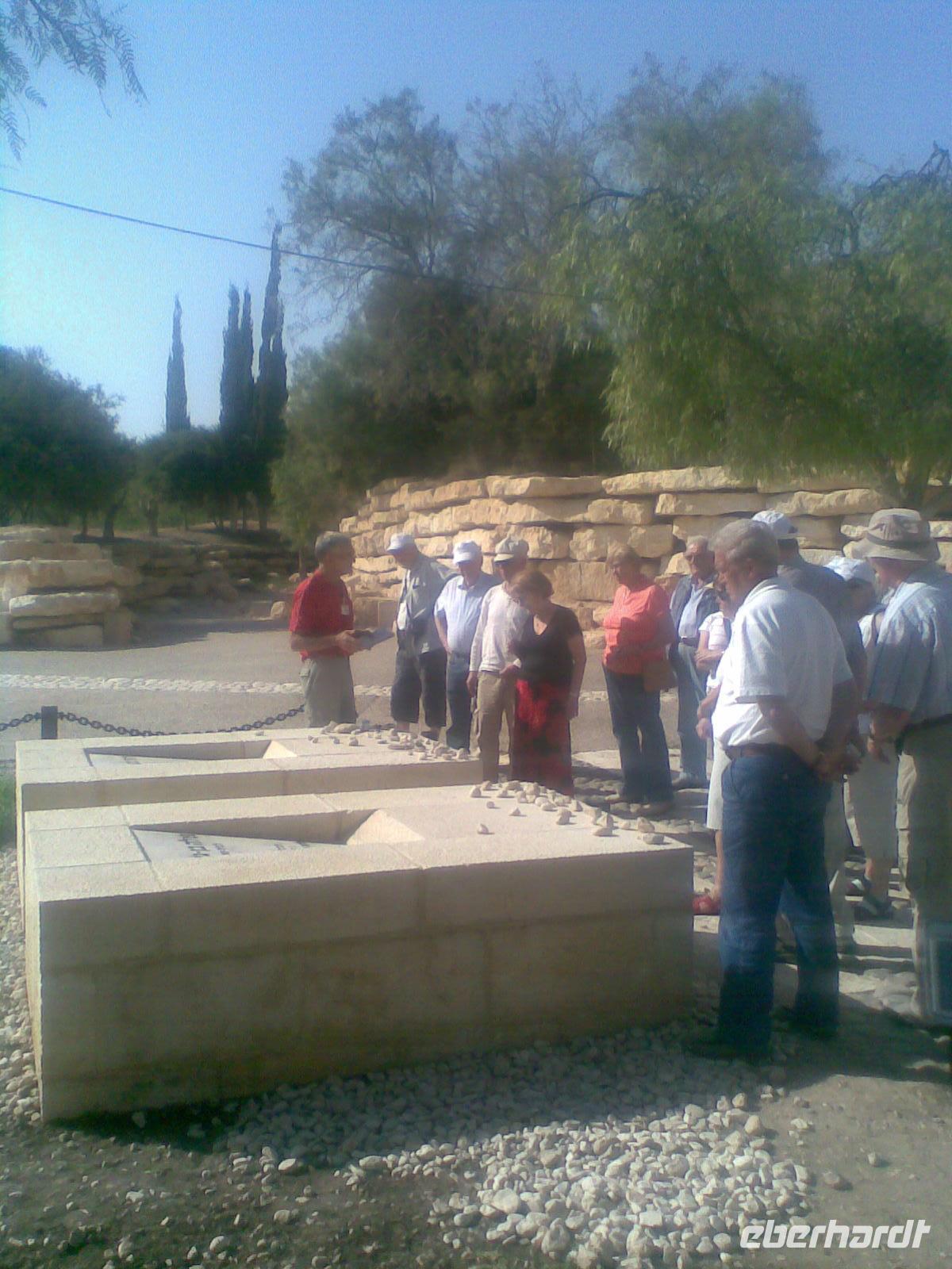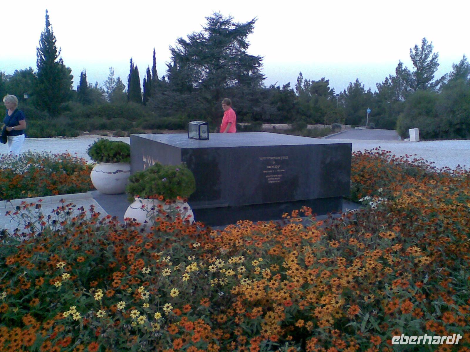Danach ging es noch zum berühmten Herzl-Berg, der dem Begründer des politischen Zionismus gewidmet ist, ohne den es heute keinen Staat Israel gäbe. Seine Grabstätte befindet sich auf dem Berg. Auch andere Persönlichkeiten fanden dort ihre letzte Ruhestätte, so sahen wir auch das Grab von Yitzhak Rabin, dem ehemaligen Ministerpräsidenten Israels, der meist durchsetzte, was er sagte. Auf dem politischen Höhepunkt seines Lebens angekommen, fiel er 1995 einem Attentat zum Opfer, ausgerechnet durch die Hand eines fanatischen Juden - nicht nur Israel, sondern weltweit war man damals geschockt. Noch heute legen viele Leute zum Gedenken an ihn kleine Steine an seinem Grab nieder.