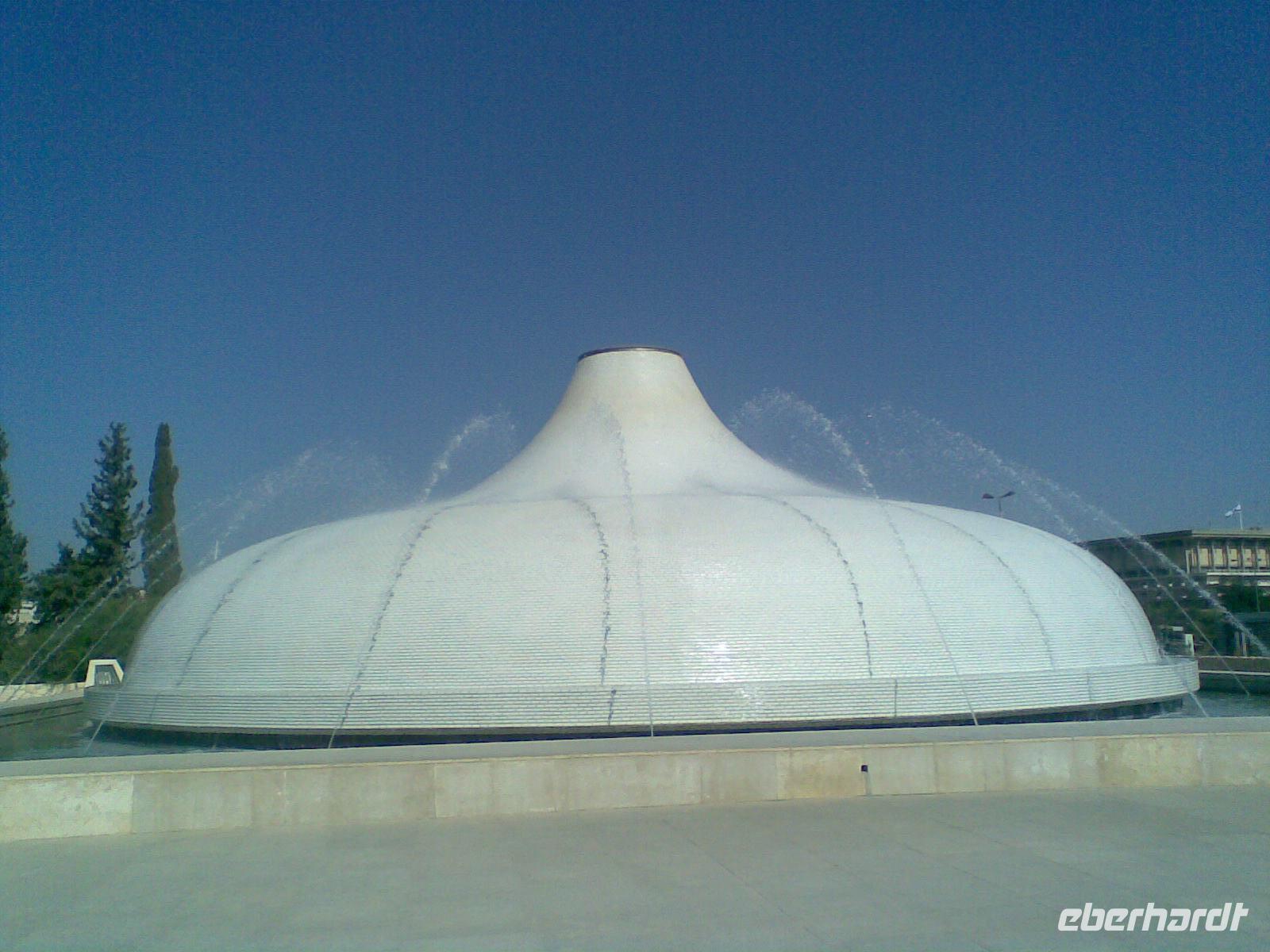 Nun ging es noch zum Israel Museum. Es ist das größte und bedeutendste Museum des Landes und vereint den “Schrein des Buches”, archäologische Funde, jüdische Kunst und einen Skulpturengarten. Berühmtester Schatz hier sind die Qumran-Rollen - die markante Kuppel des Schreins soll an die Verschlüsse jener Tonkrüge erinnern, in denen die berühmten Schriftrollen vor ungefähr sechzig Jahren gefunden wurden.