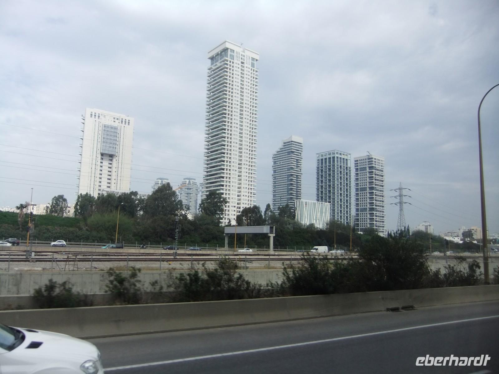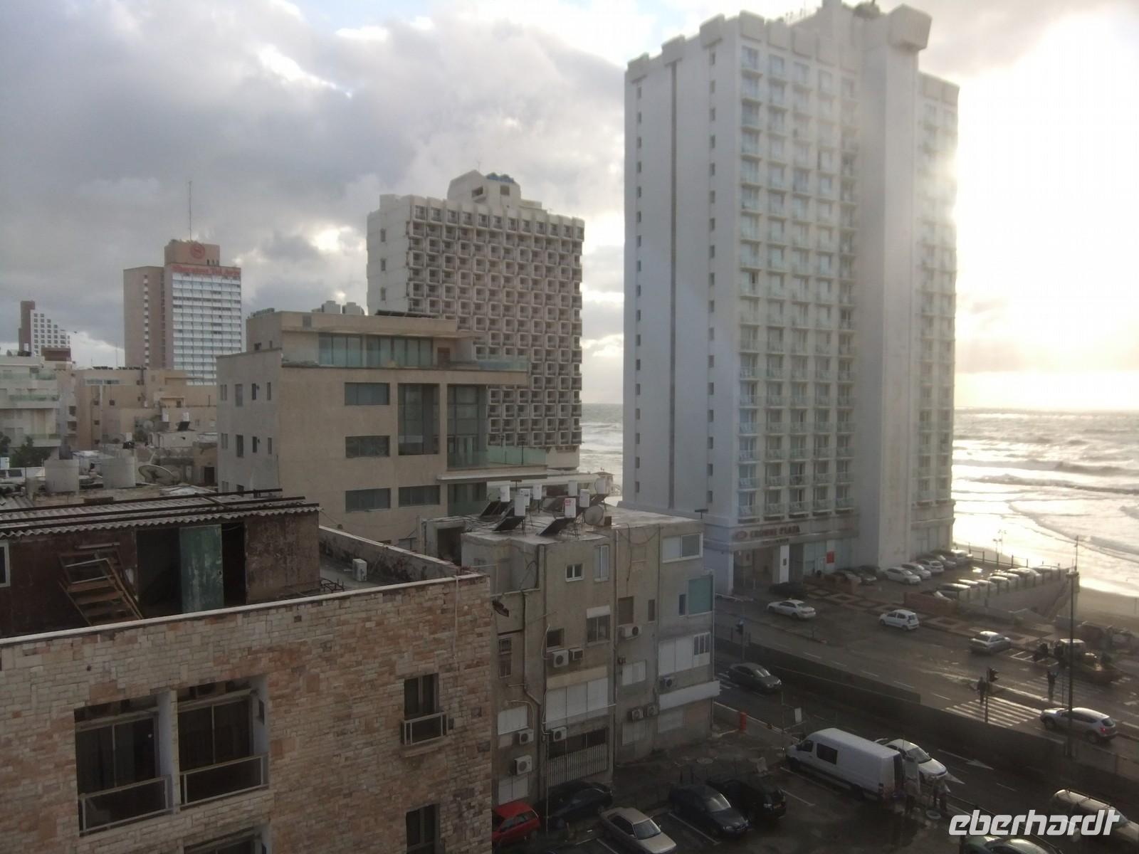 Eine Großstadt empfängt uns, die gerade einmal 100 Jahre alt ist. Am kilometerlangen Sandstrand reihen sich die Hotelhochhäuser aneinander und aus der Innenstadt, die allein 4000 Gebäude im Bauhausstil zählt, ragen die schlanken Wohn- und Bürotürme. Hier wurde der Staat Israel durch Ben Gurion 1948 ausgerufen, hier befinden sich heute (noch) die Botschaften, hier ist das öffentliche Leben weltoffener und weniger traditionell. Am Strand herrscht ein starker Wind, Wellenberge rollen heran, es ist kühl, aber das wird sich bald ändern.