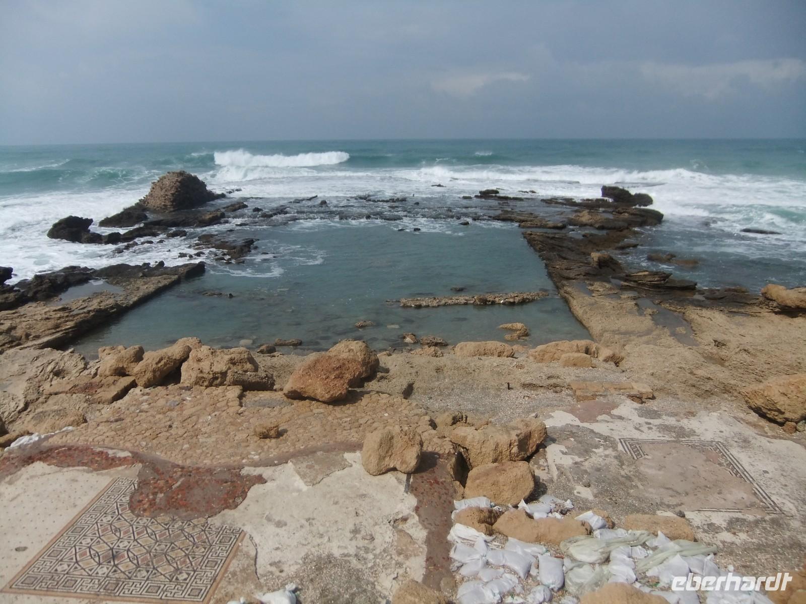 Caesarea: Herodes der Große, einer der grausamsten Tyrannen und einer der größten Bauherren Judäas ließ hier eine moderne Stadt und einen Hafen anlegten, nach Vorbild der römischer Städte und mit dem Namen seines römischen Dienstherren Cäsar Augustus.