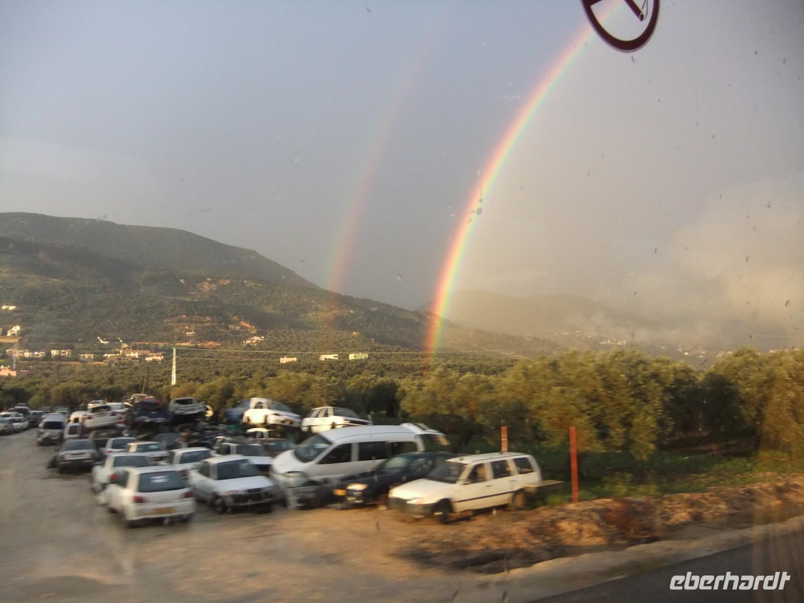 Bei der Fahrt zum See Genezareth sehen wir einen prächtigen Regenbogens, Symbol des Friedens, für die Juden Symbol des Bundes mit Gott.