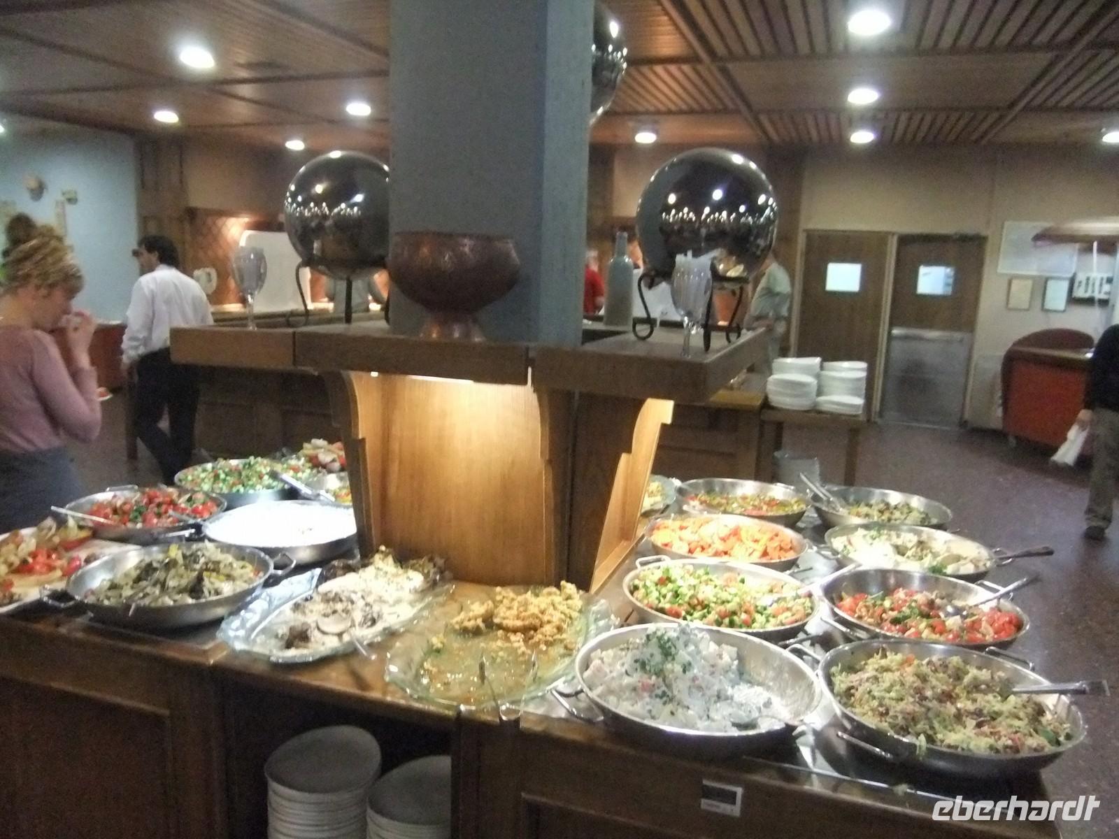 Terrasse. Im zentralen Speiserestaurant gibt es wieder eine Fülle von leckeren Speisen. Wenn das so weiter geht...