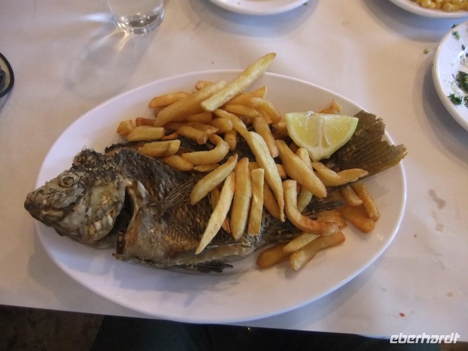 Am Abend lernen wir die Küche Israels kennen, falls es diese überhaupt gibt, denn die Einwohner kommen aus vielen Teilen der Welt, in die sie verstreut waren. Manches ist ungewohnt, aber alles sehr schmackhaft: die flachen Brotfladen Pitta, mit Salaten oder verschiedenen Soßen oder die Felafel, in Fett gebackene Klößchen aus Kichererbsenmehl mit einer Füllung aus Gemüse und Gewürzen. Bier und Wein aus israelischer Produktion sind von hoher Qualität. Ich ahne schon: nach dieser Reise wird auch das eigene Gewicht nicht mehr ganz so sein wie vorher.