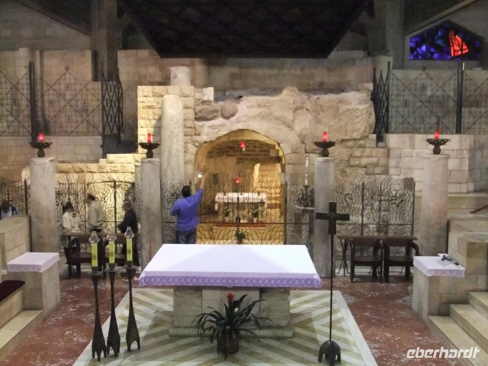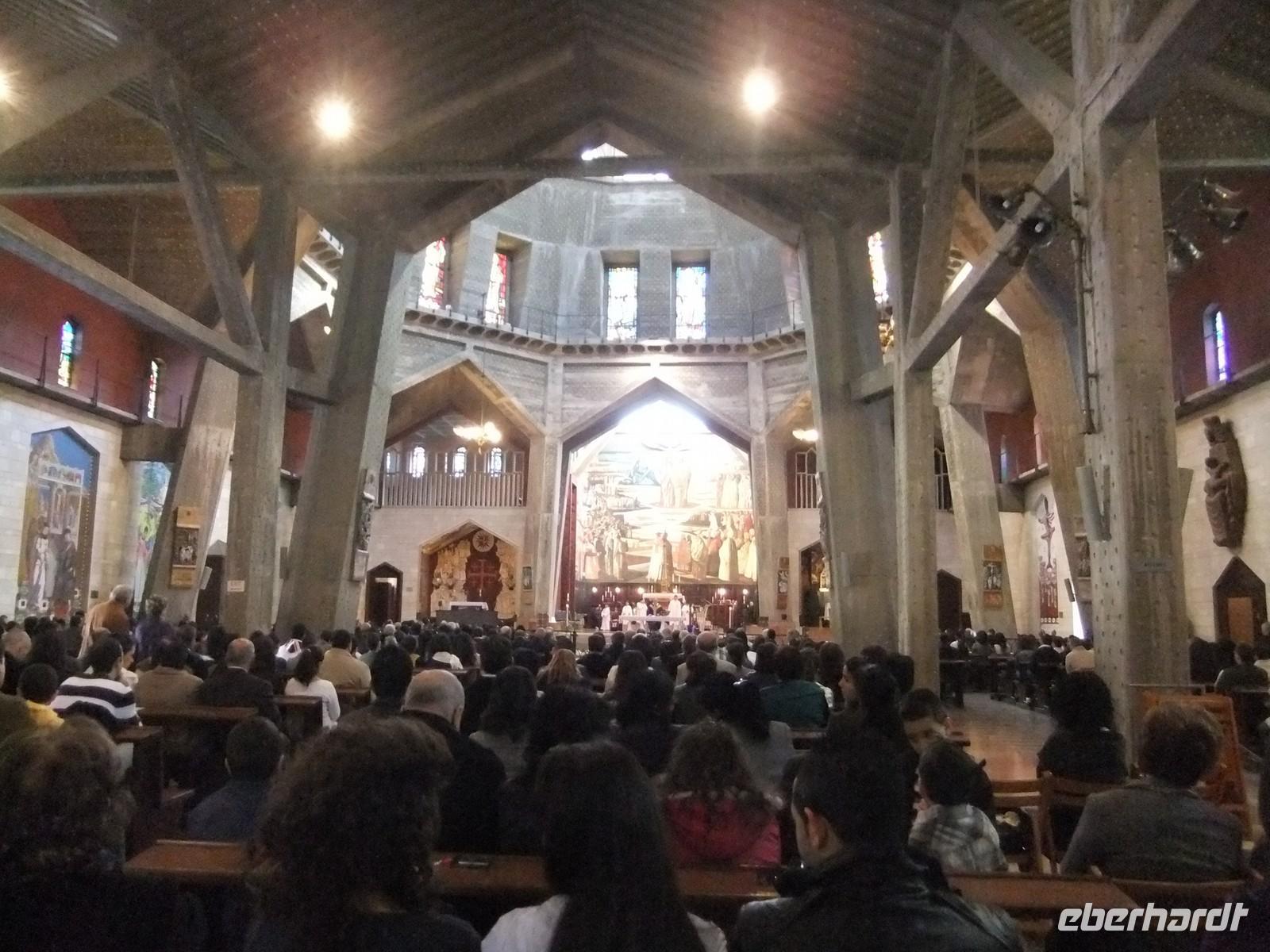 Nazareth: In dem vorwiegend arabischen Stadt gibt es viele Christen, die an diesem Sonntag die Verkündigungskirche besuchen, die an dem Ort erbaut wurde, an dem der Engel Gabriel Maria die Geburt Jesu verkündet haben soll. Die heutige Kirche ist die größte moderne Kirche Israels und die fünfte an dieser Stelle. Beeindruckend sind im Vorhof die vielen Madonnendarstellungen, von den strengen romanischen Madonnen Andorras und Montserrats bis zur modernen deutschen Madonna mit den durch eine Mauer getrennten Kindern.