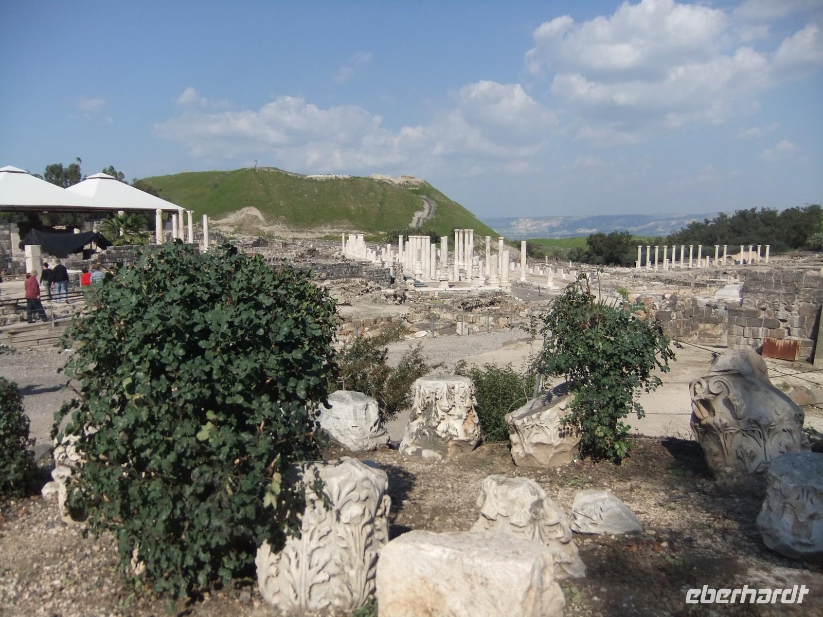 Bet Sche'an. 500 Jahr römische Provinz Judäa haben viele Zeugen römischer Baukunst hinterlassen. Die Anlagen von Bet Sche'an sind besonders eindrucksvoll durch ihre Erhaltung. Nach einem Erdbeben versank die verlassene Stadt im Schlamm eines Flusses, der seinen Lauf geändert hat. In den Thermen ist z.B. das Hypocaustum, die Fußbodenheizungsanlage sehr gut erhalten.