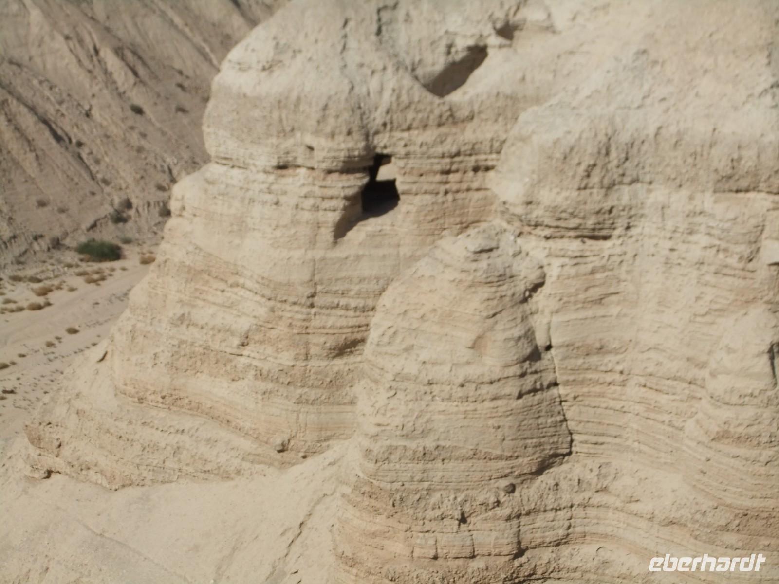 Die beiden Orte bedeuten viel für Israel. In 11 Höhlen von Qumram, wenige Minuten von unserem Kibbuz entfernt, wurden zwischen 1947 und 1956 fast 1000 Manuskripte in Tongefäßen gefunden, oft nur in kleine Schnipseln zerfallen. Darunter sind die ältesten biblischen Handschriften, die Krone ist die über 7 m lange Jesaja-Rolle, die wir später in Jerusalem sehen werden. Eine Sekte, die Essener hatten eine Art frühe Mönchsgemeinschaft am Toten Meer geschaffen. Sie verschwand im Jüdischen Krieg, die Ergebnisse ihrer fleißigen Schreibarbeit blieben teilweise erhalten. Die Ausgrabungen zeigen u.a. eine Mikwe, ein jüdisches Ritualbad.
