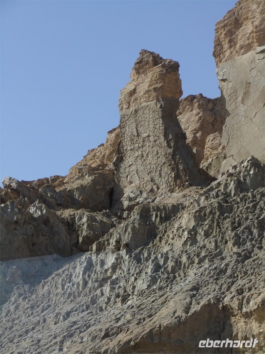 Wir fahren die gesamte Westseite des Tote Meeres ab, bis zum inzwischen abgetrennten südlichen Teil mit seinen Chemischen Werken für Pottasche, Brom, Salze. Wir halten am isolierten Salzfelsen, der der Legende nach die Frau des Abrahamneffen Lot darstellt. Sie hatte sich nicht an die Vorschrift gehalten, sich bei der Vernichtung der Stadt Sodom nicht umzudrehen. Dann geht es in die Wüste Negev. Genau genommen ist es nur eine Halbwüste, denn es gibt viele unterirdische Wasserreservoire, Quellen, es regnet auch gelegentlich, ja es kann sogar im Winter zu gefährlichen Sturzfluten kommen.