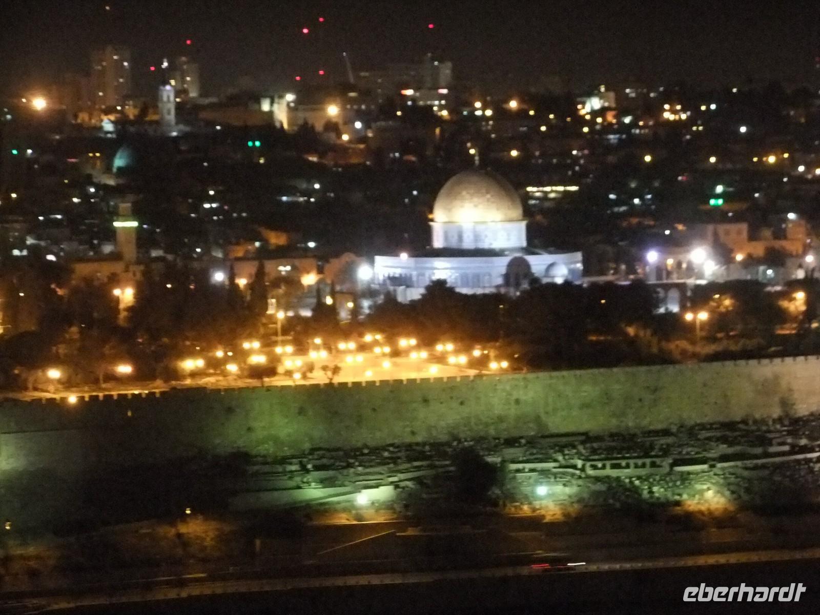 Wir fahren durch das Viertel der orthodoxen Juden, Meir Sharim, alle Geschäfte sind geöffnet. Vom Ölberg aus haben wir einen überwältigenden Blick auf die Stadt, den Tempelberg mit der goldenen Kuppel des Felsendomes. Ein Besuch der hell erleuchteten Klagemauer schließt den ersten Besuch Jerusalems ab.