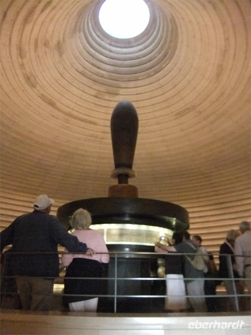 Im "Schrein des Buches" treffen wir noch einmal auf Qumran, einige seiner Tongefäße und die fast vollständig erhaltene Rolle mit den Prophezeiungen Jesajas, der eine Wende zu universellen Frieden und Gerechtigkeit verkündete.