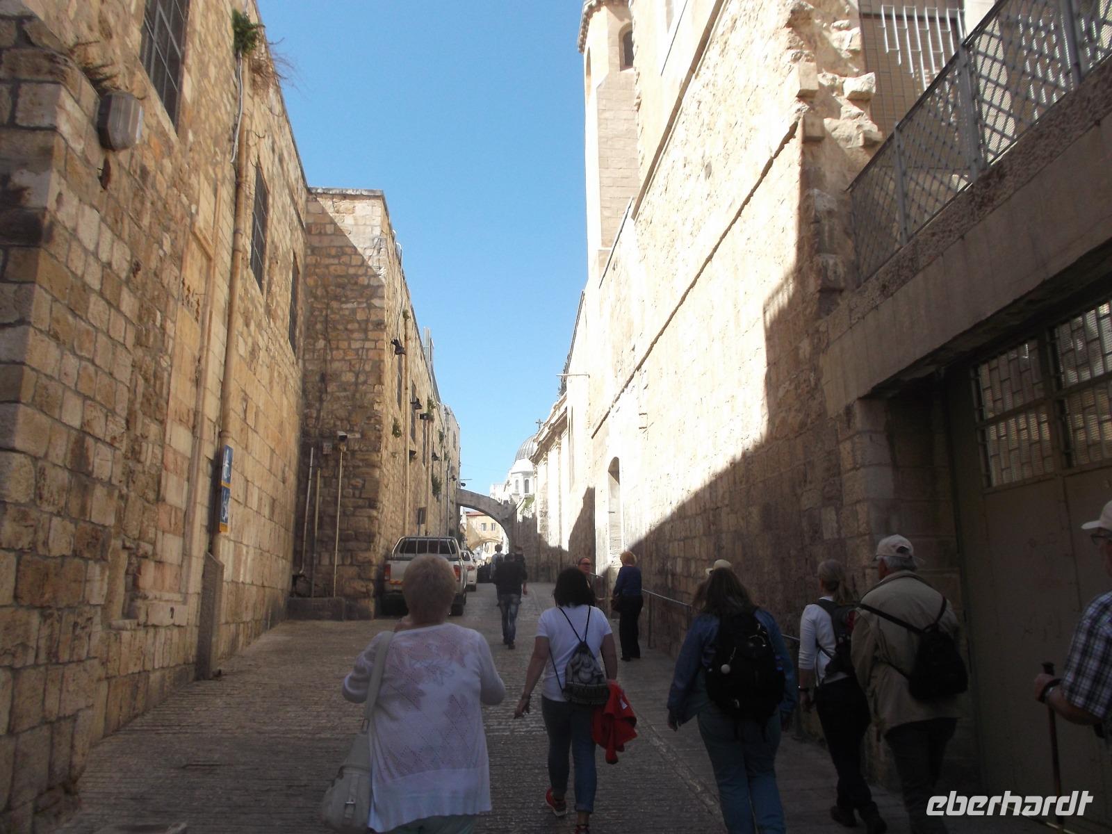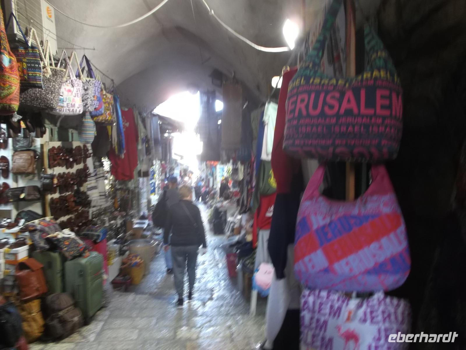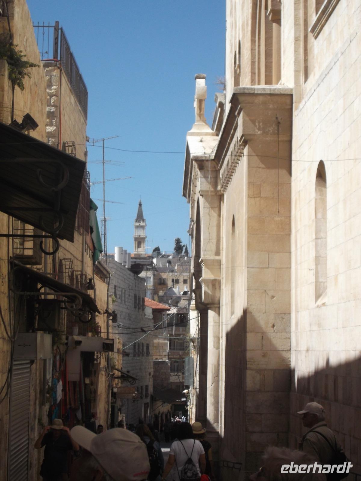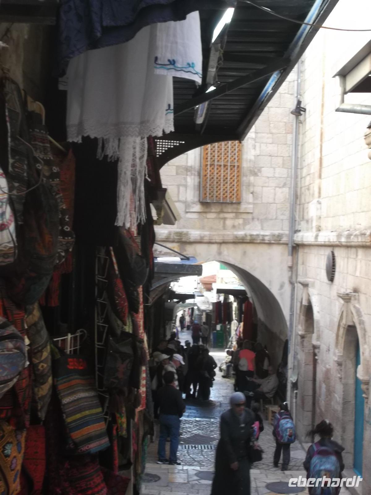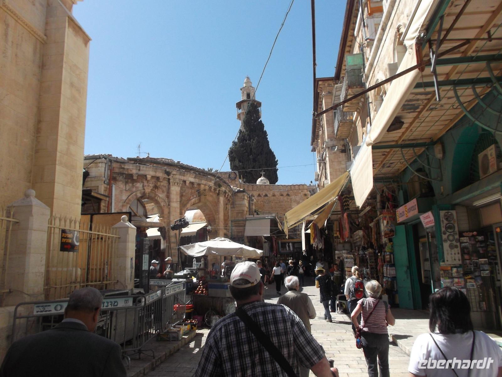 Nach der Besichtigung der Grabeskirche ging es durch die Altstadt, die in vielem einem großen arabischen Basar gleicht und in der wir Freizeit hatten, um das außerordentliche orientalische Flair von Jerusalem in uns aufzunehmen.