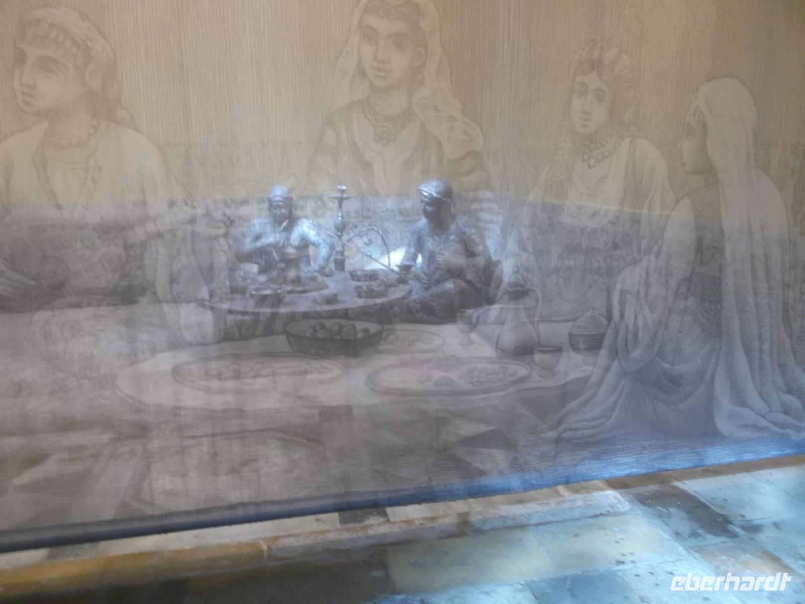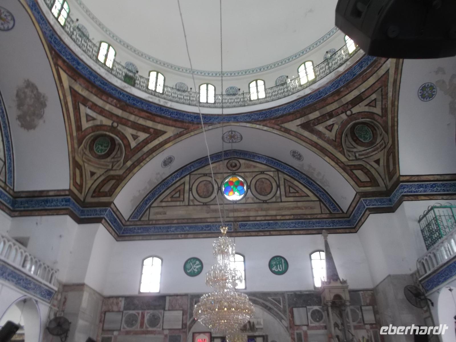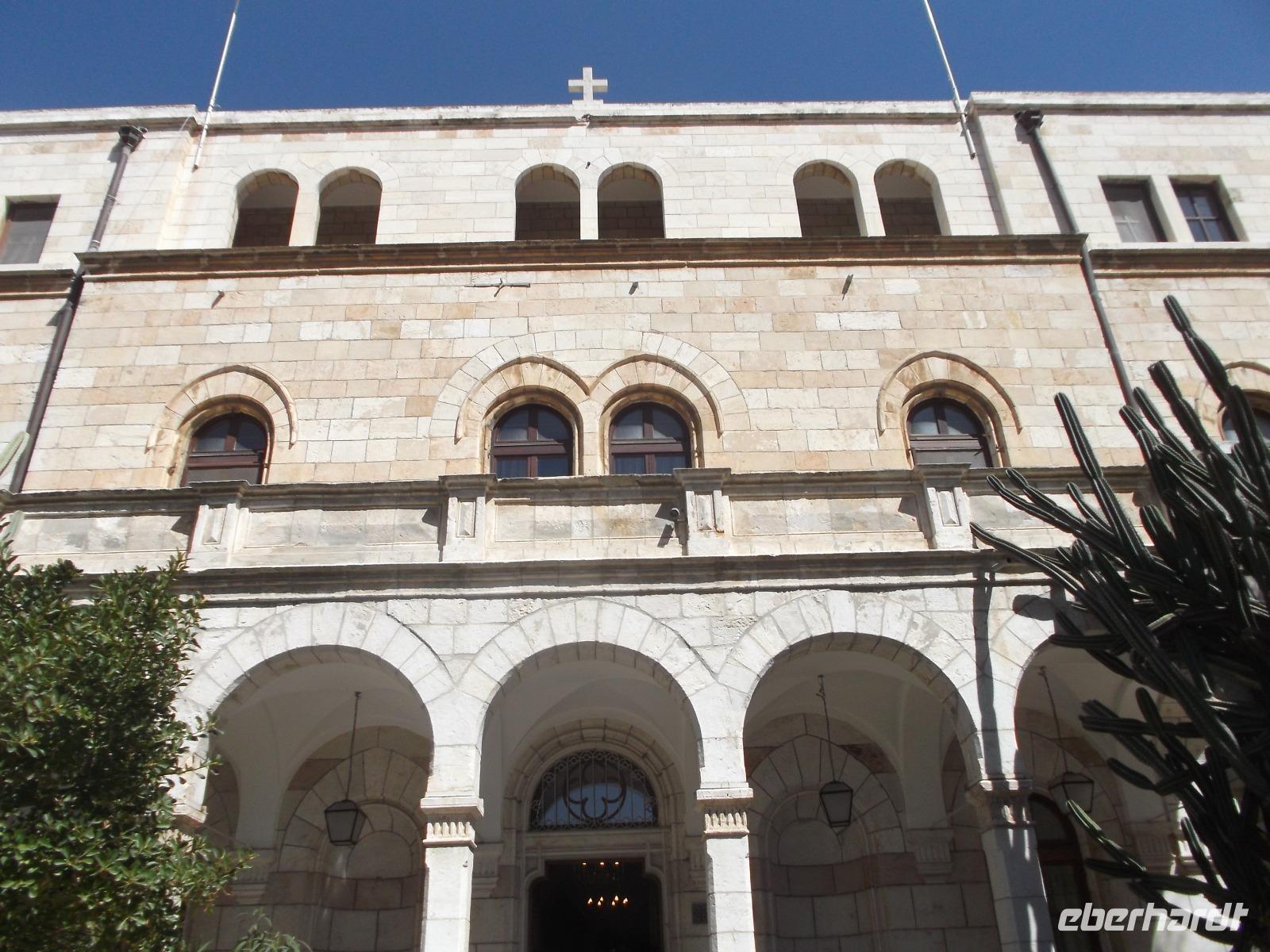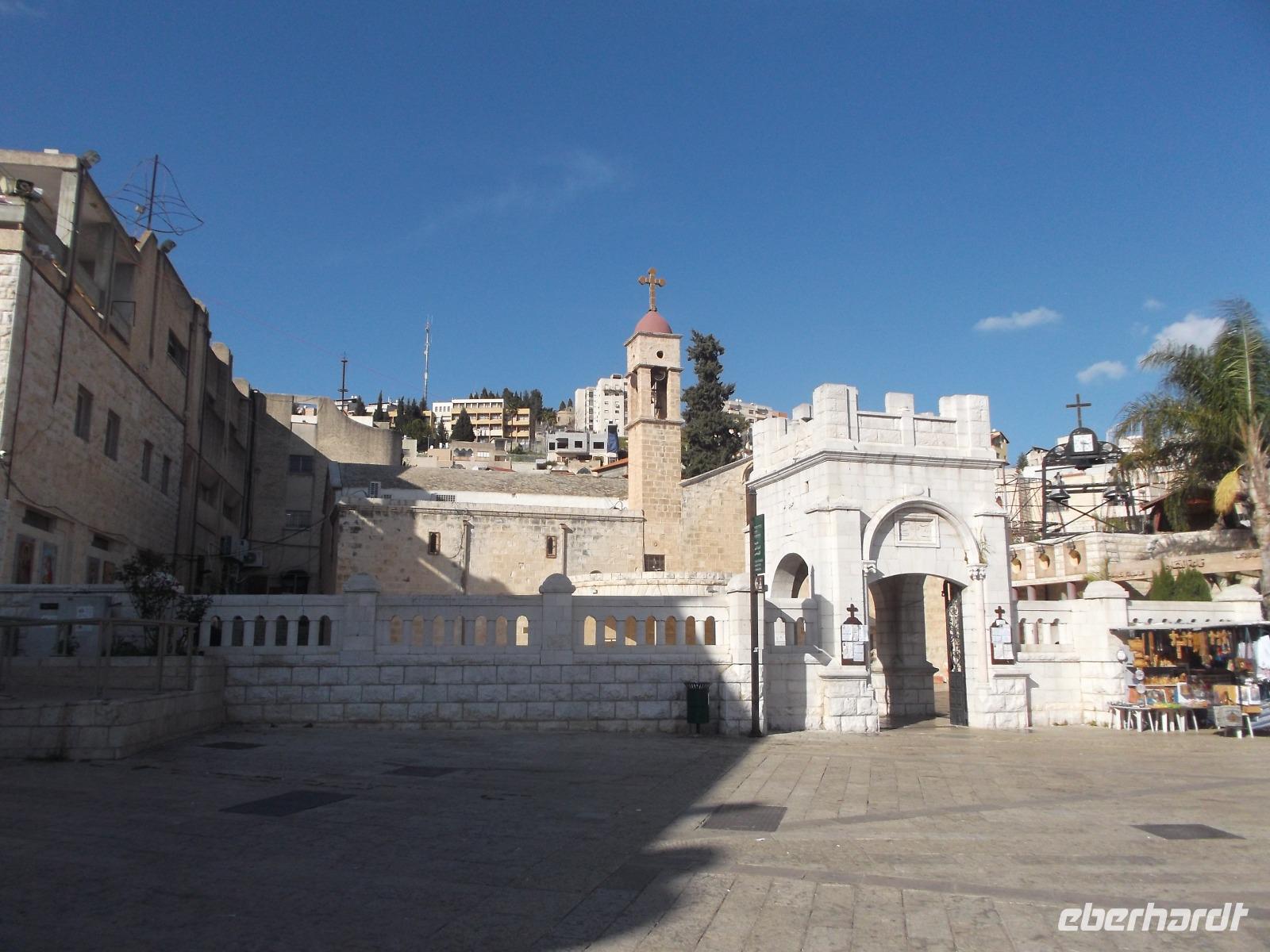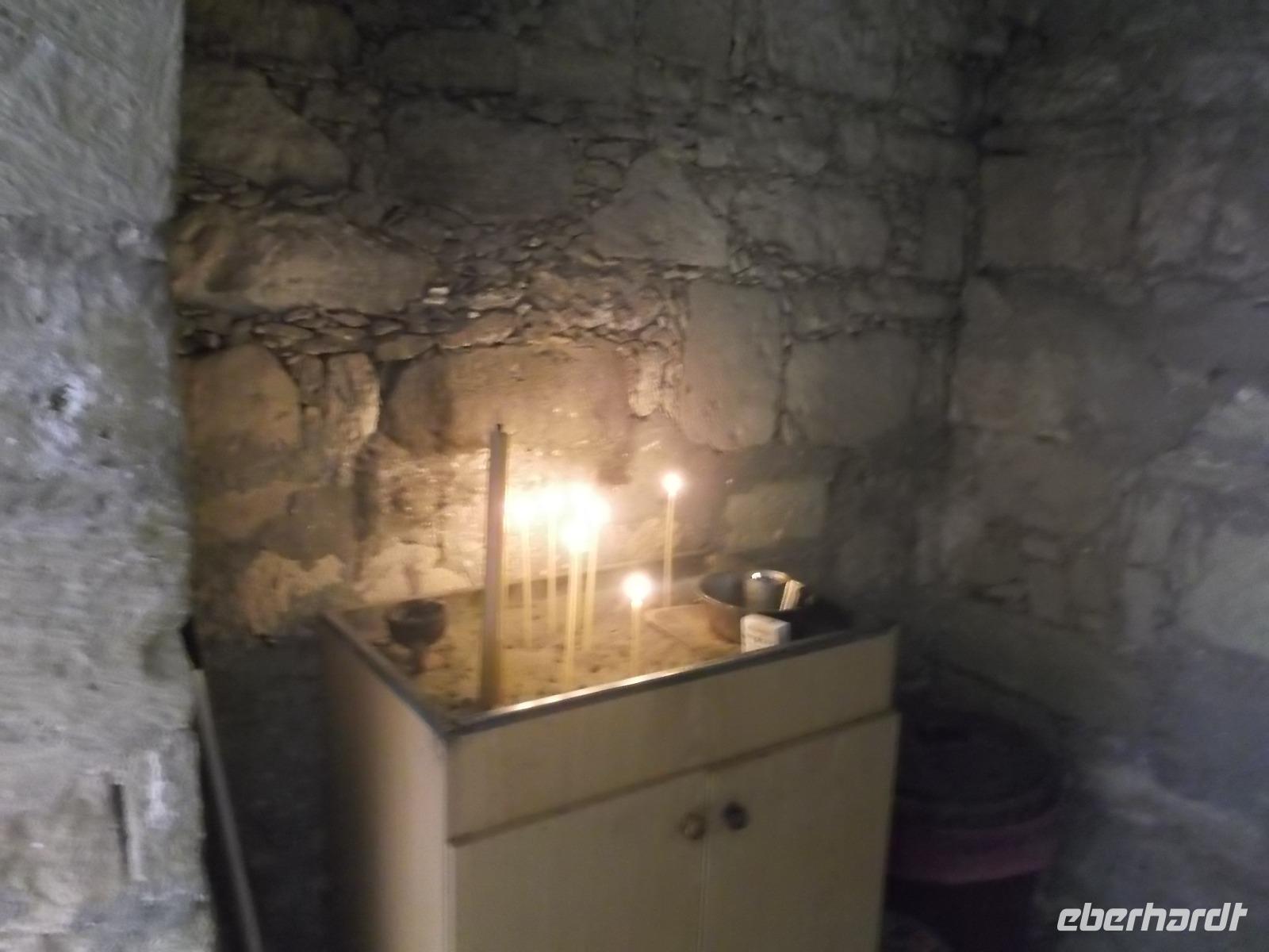 Nach ausgiebigem Besuch der Kirche hatte Reiseleiter Eitan noch eine kleine Überraschung parat: durch die Altstadt und über den kleinen Markt von Nazareth ging es zu einer weiteren Verkündigungskirche, jener nämlich, von der die orthodoxen Christen glauben, dass der Erzengel Gabriel HIER der Jungfrau Maria erschienen sei. Sie steht über einer ehemaligen Dorfquelle - ist im Inneren sehr hübsch bemalt und gegenüber dem gewaltigen katholischn Bau, den wir eine gute halbe Stunde zuvor besichtigt hatten, eher unscheinbar.