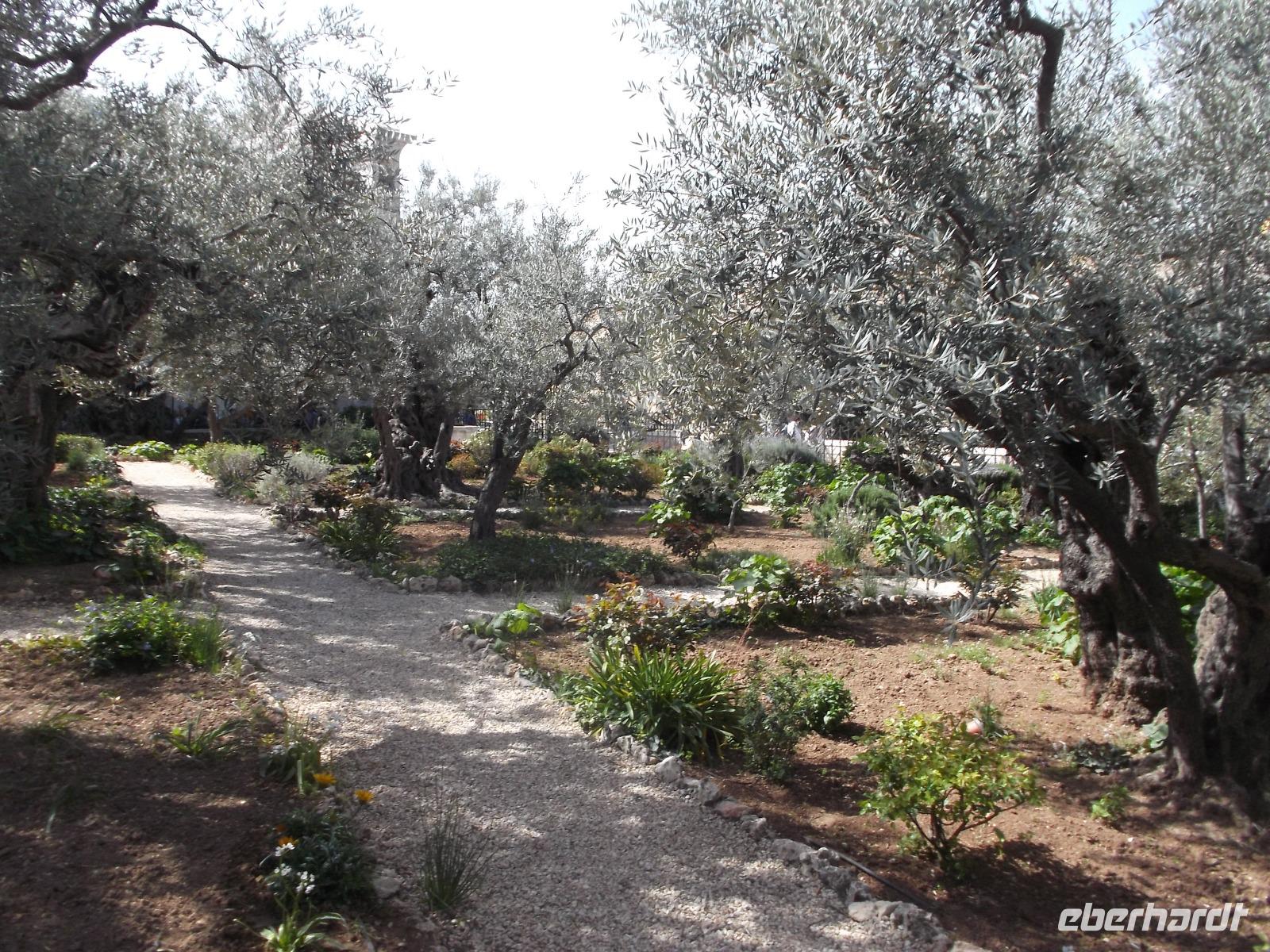 Wir machten einen trotz steiler Straße recht geruhsamen Spaziergang hinunter zum Garten Gethsemane. Hier betete Jesus der Überlieferung nach, bevor seine Leidensgeschichte begann und noch heute stehen hier im Garten Dutzende Olivenbäume von einem Alter, dass sie durchaus die Geschehnisse rund um die Verhaftung Christi mit angesehen haben könnten.
