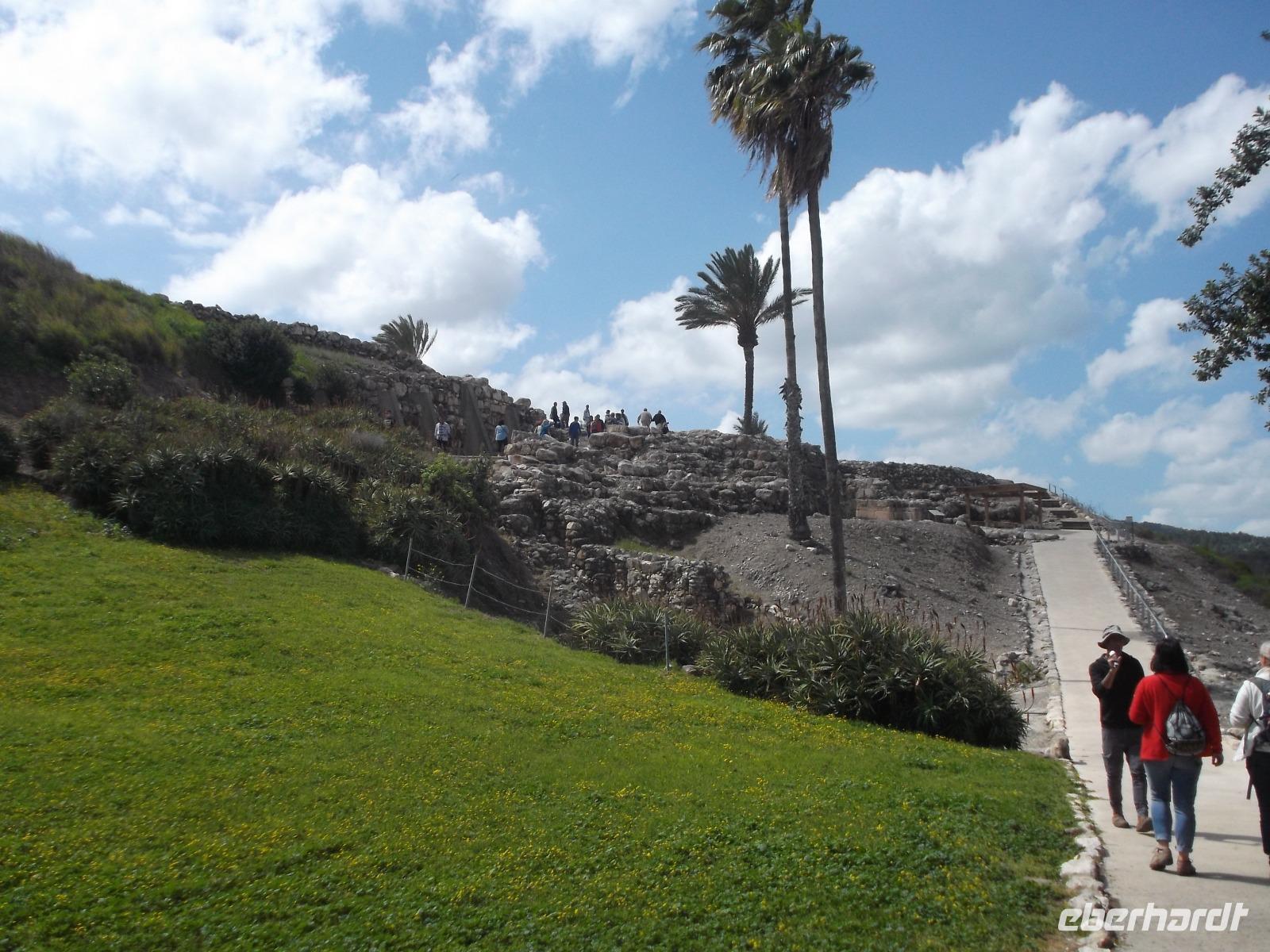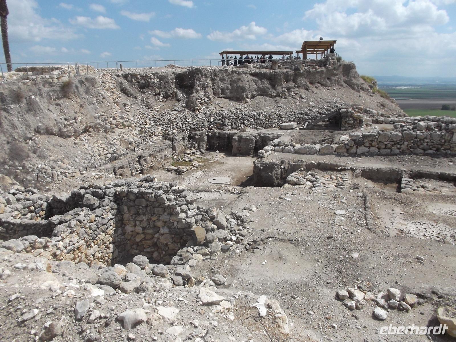 "Lehitraot Jeruschalajim" - Auf Wiedersehen Jerusalem! Hieß es heute, als wir die „heilige Stadt" verließen. Da heute Schabbath war, der Tag, an dem, orthodoxe Juden nicht arbeiten (dürfen), hatten wir für zwei Tage eine Vertretung unserer Reiseleiterin Corinne. Eitan, den wir kurz nach Verlassen Jerusalems trafen, war ein umgänglicher und umsichtiger Reiseleiter. Wir fuhren in Richtung Norden und hatten bald den Ausgrabungsort Megiddo erreicht, der in der Bibel auch als Armageddon bezeichnet wird. Hier besichtigten wir den Tell, den Siedlungshügel, der aufgrund seiner reichhaltigen Funde als eine der wichtigsten Forschungsstätten und bedeutendster Fundplatz der biblischen Periode angesehen wird und seit 2005 auf der Liste der UNESCO-Welterbestätten steht. Wir begannen einen Spaziergang durch die Fundplätze und zu den Ausgrabungen der im Altertum nach Schlachten und Zerstörungen immer wieder aufs Neue bebauten und besiedelten Stadt. Die Tore der alten Befestigungsanlagen, der Palast, ein Opferaltar und ehemalige Stallgebäude sowie das Wassersystem, das Zeugnis ablegt von erstaunlichen Fähigkeiten und Initiativen der frühen Ingenieure, gehört zu den besonderen Sehenswürdigkeiten des "biblischen Siedlungshügels".