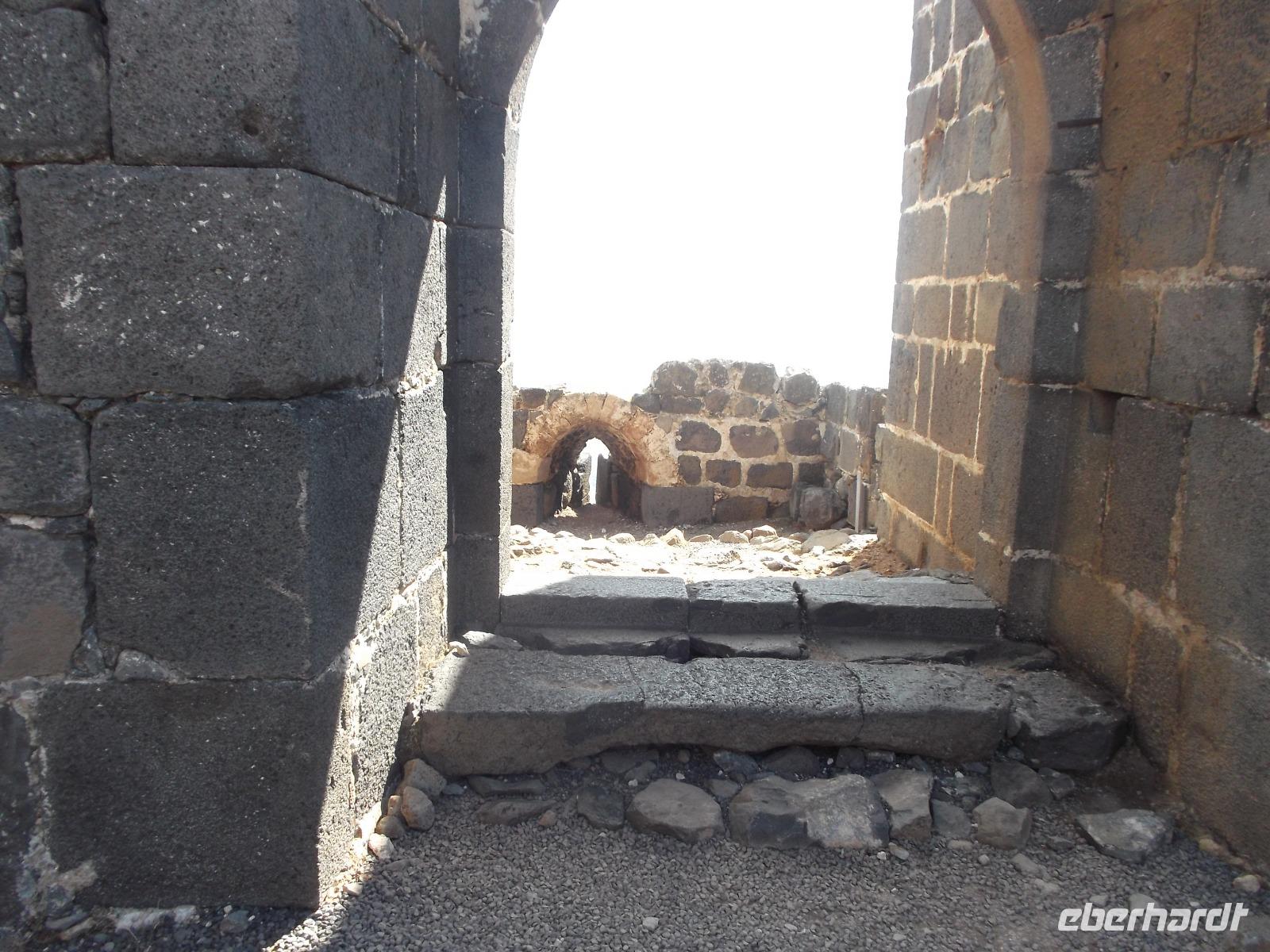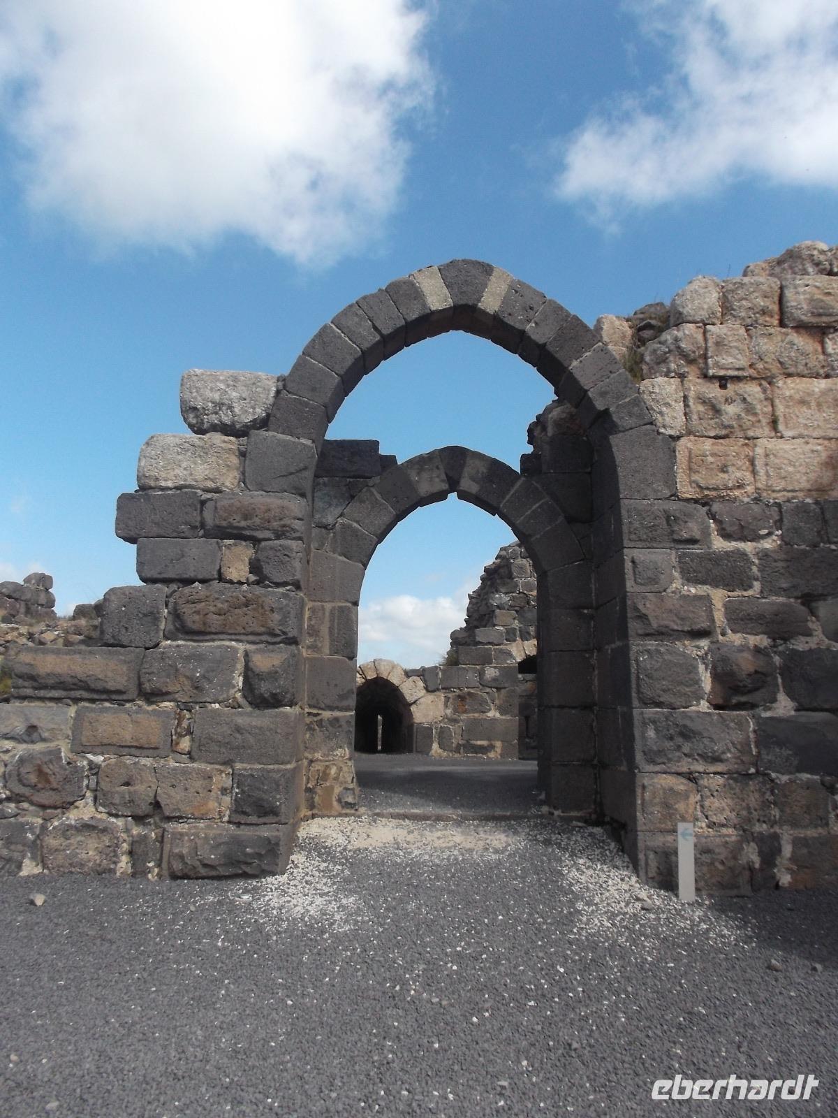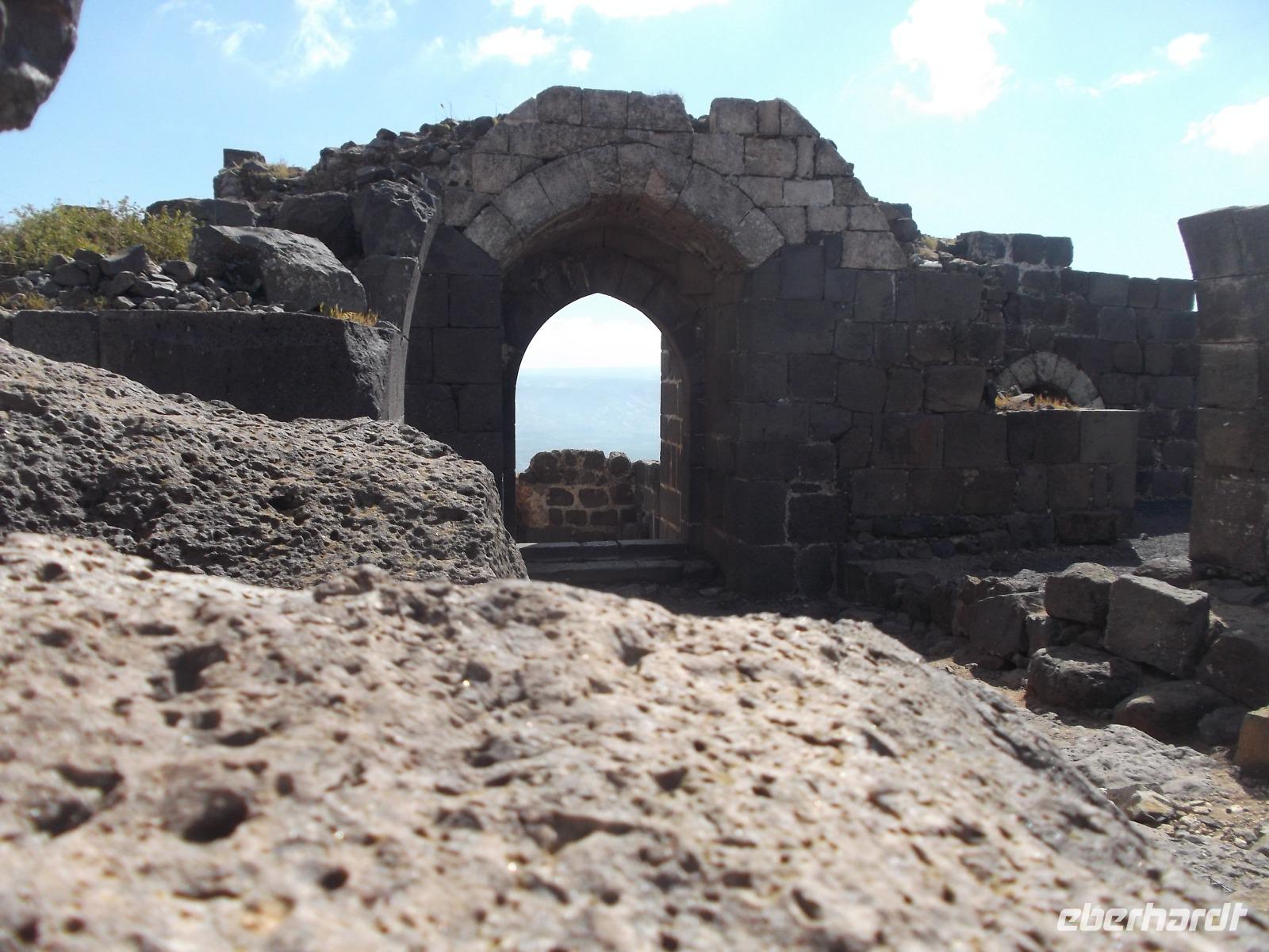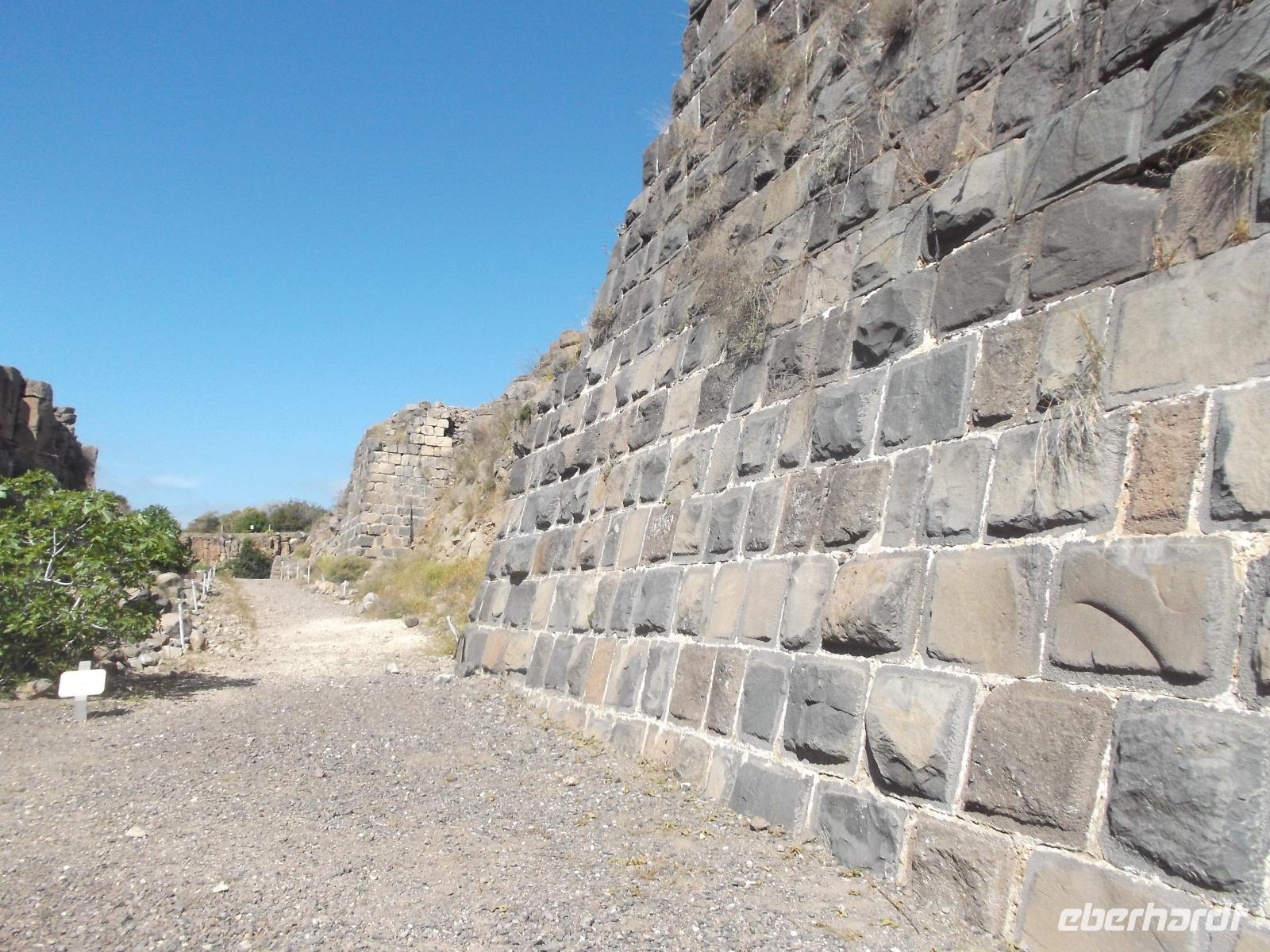 Die Burgruine Belvoir - eine Kreuzfahrerburg, die heute in einem israelischen Nationalpark liegt und vermutlich durch französische Tempelritter gebaut wurde - war unser erstes Ziel heute. Historisch belegt ist nur, dass die Festung 1168 an den Johanniterorden verkauft wurde, der daraus eine der spektakulärsten Burgen im Heiligen Land machte. Von der einstigen Stärke zeugen bis heute die imposanten Reste, die - 550 m über dem Jordantal gelegen - die Burg zu einer der schönsten und malerischsten zumindest im Heiligen Land machen. Vielleicht wird sie deshalb auf Hebräisch „Stern des Jordan" genannt. Vor allem bemerkenswert ist der über 20 m breite, in den Fels gehauene Burggraben, der die bedeutenden Ruinen der Burg mit ihrem fast quadratischen Grundriss umgibt. Wir hatten genug Zeit, um uns die malerische Ruine genauer anzusehen, bevor es weiterging zu den Golanhöhen.