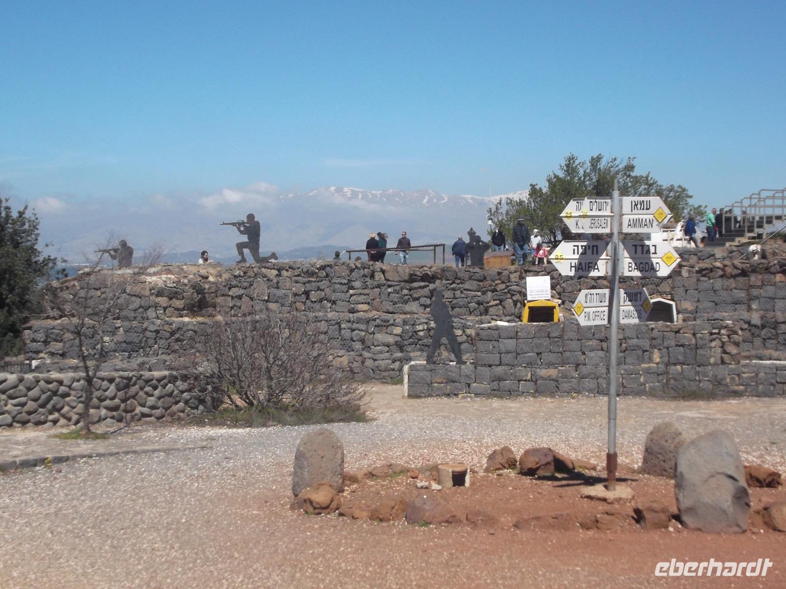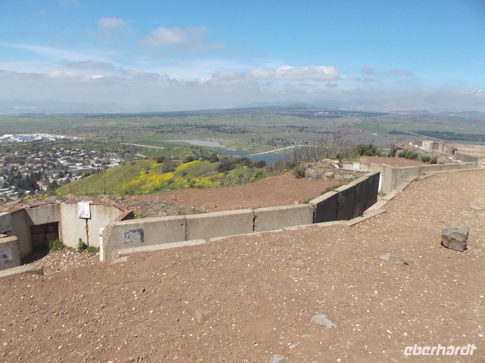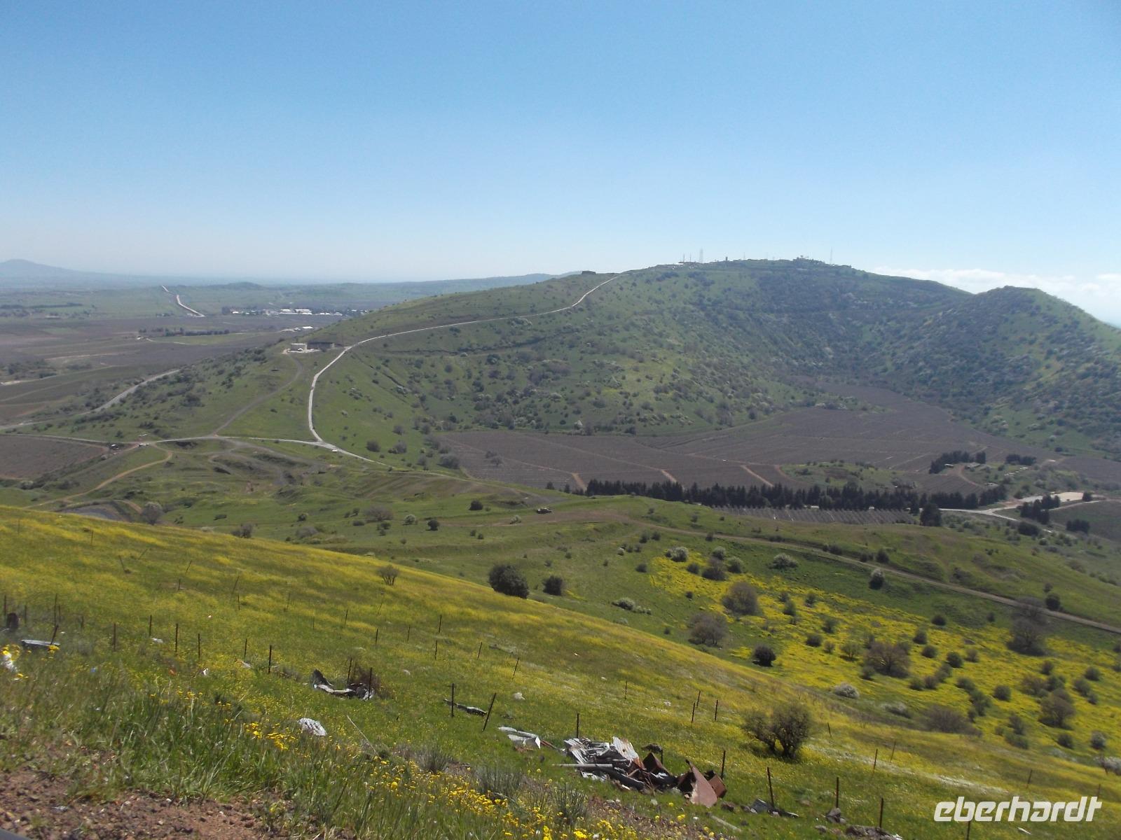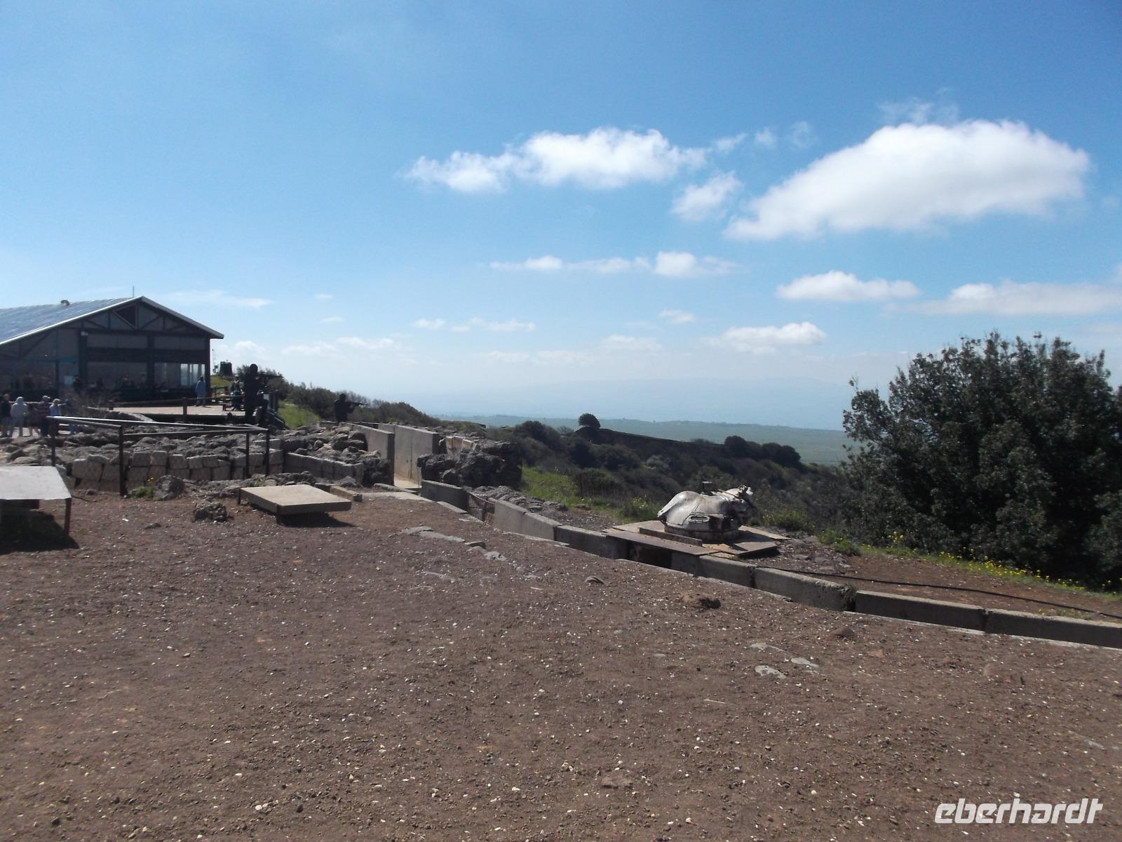 Seit em Siebentage-Krieg 1967 befindet sich der größte Teil des strategisch wichtigen Höhenzuges unter israelischer Kontrolle. In der Nähe der höchsten Erhebung, des über 2800 m hohen Berges Hermon, befindet sich heute Israels einziges Skigebiet. Wir waren auf etwas über 1000 m Höhe an einer der Stellen, wo sich in den Kriegen Israels mit seinen Nachbarn Jordanien, Syrien und Libanon die israelischen Stellungen befanden. Der Abstecher auf den Golan war höchst interessant - es ist schon etwas Besonderes, UN-Beobachter und Schauplätze, die man sonst nur aus den Nachrichten oder dem Geschichtsunterricht kennt, mit eigenen Augen zu sehen.