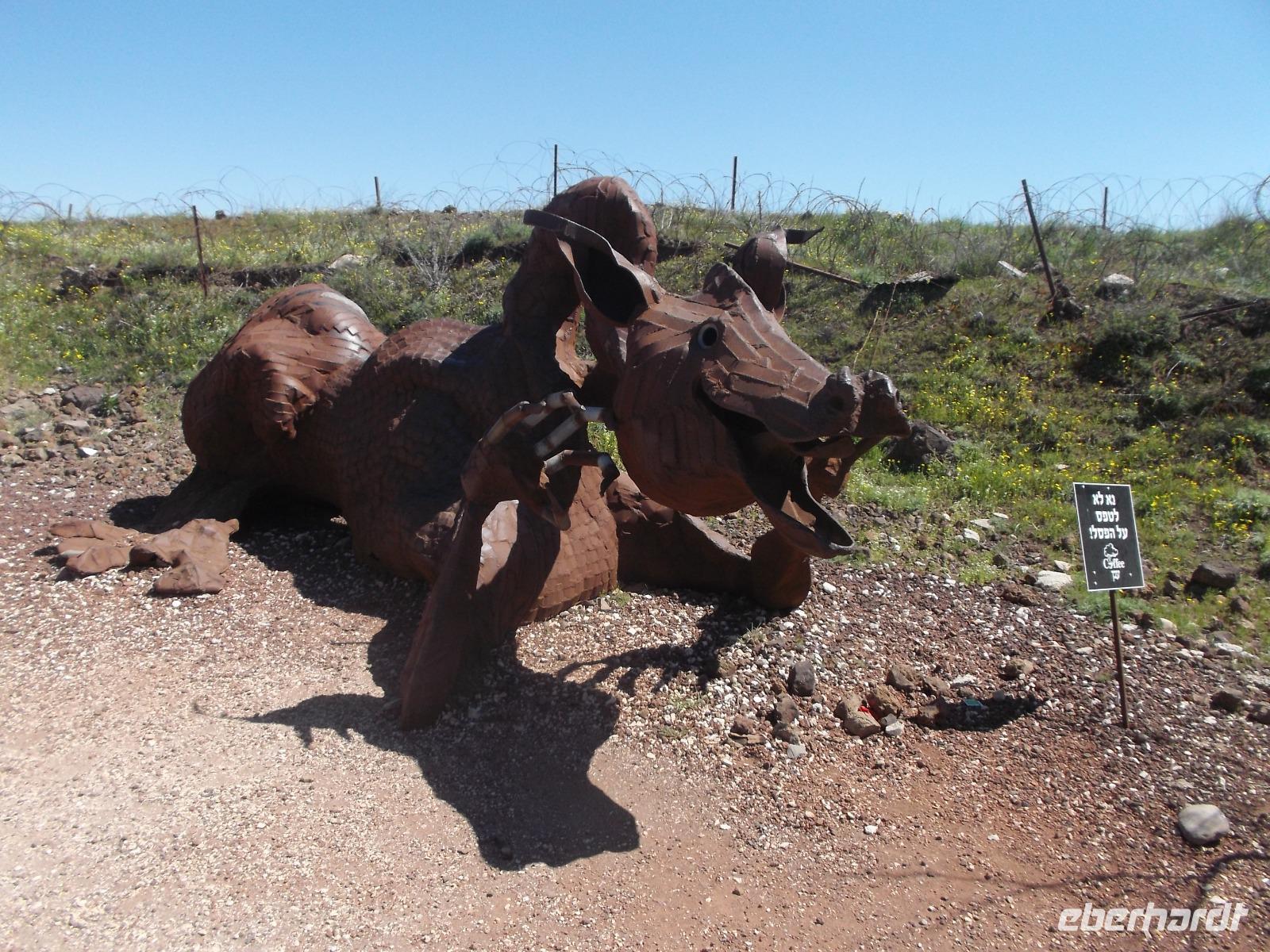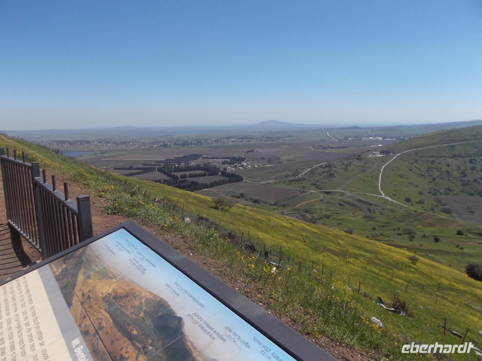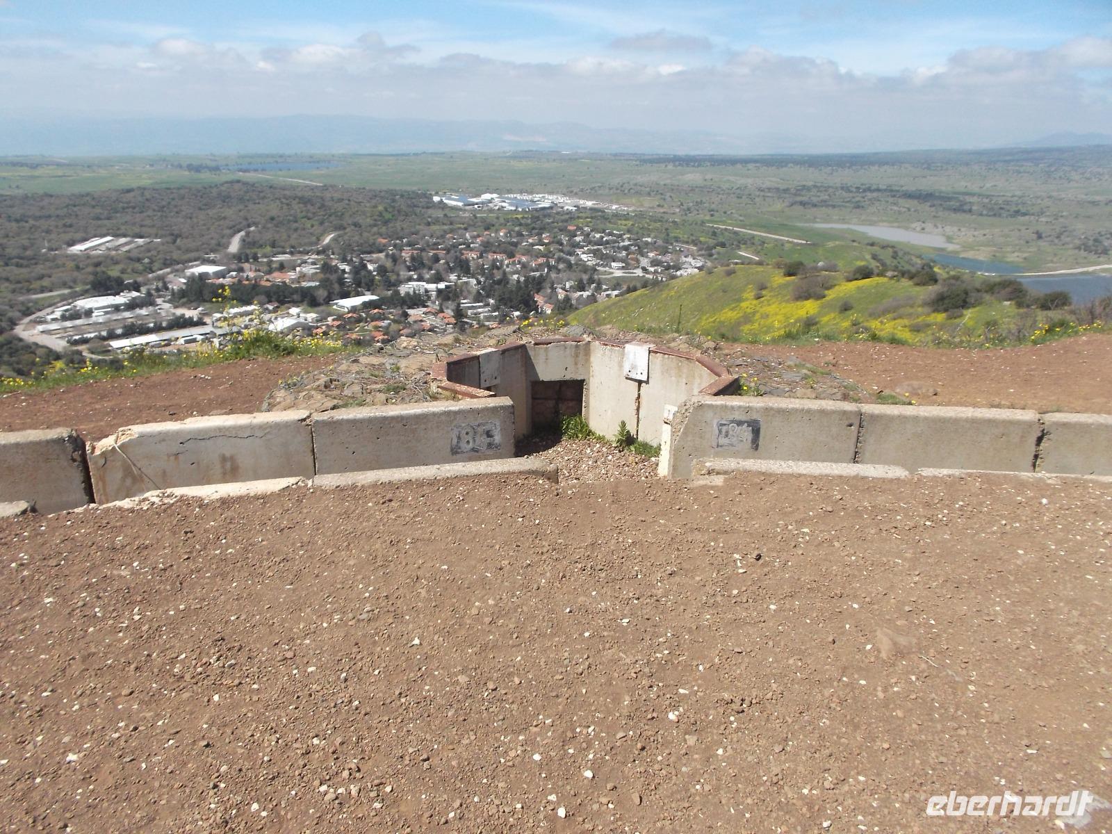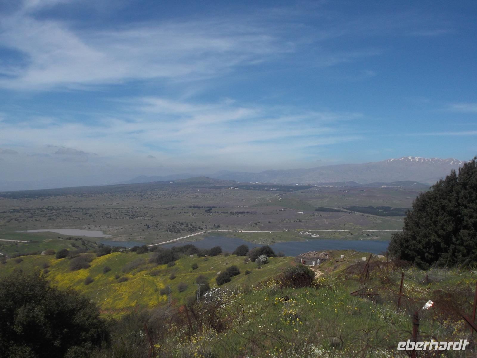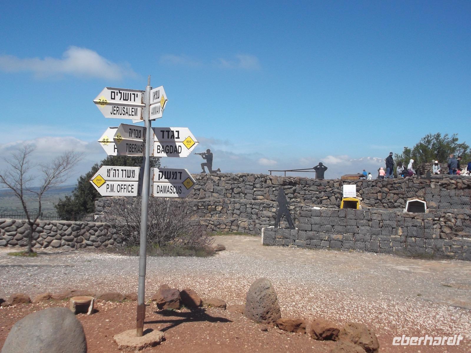 Seit em Siebentage-Krieg 1967 befindet sich der größte Teil des strategisch wichtigen Höhenzuges unter israelischer Kontrolle. In der Nähe der höchsten Erhebung, des über 2800 m hohen Berges Hermon, befindet sich heute Israels einziges Skigebiet. Wir waren auf etwas über 1000 m Höhe an einer der Stellen, wo sich in den Kriegen Israels mit seinen Nachbarn Jordanien, Syrien und Libanon die israelischen Stellungen befanden. Der Abstecher auf den Golan war höchst interessant - es ist schon etwas Besonderes, UN-Beobachter und Schauplätze, die man sonst nur aus den Nachrichten oder dem Geschichtsunterricht kennt, mit eigenen Augen zu sehen.