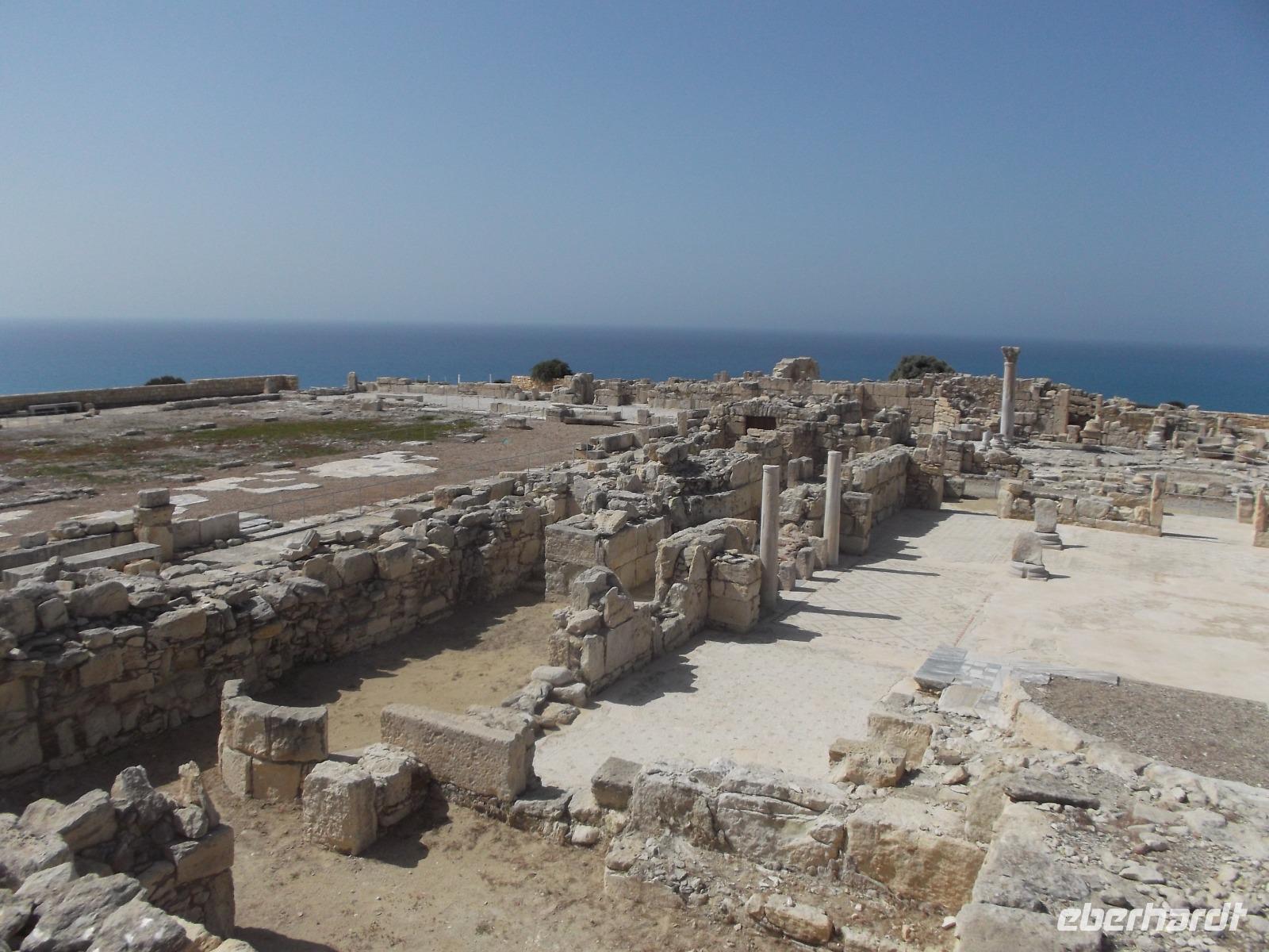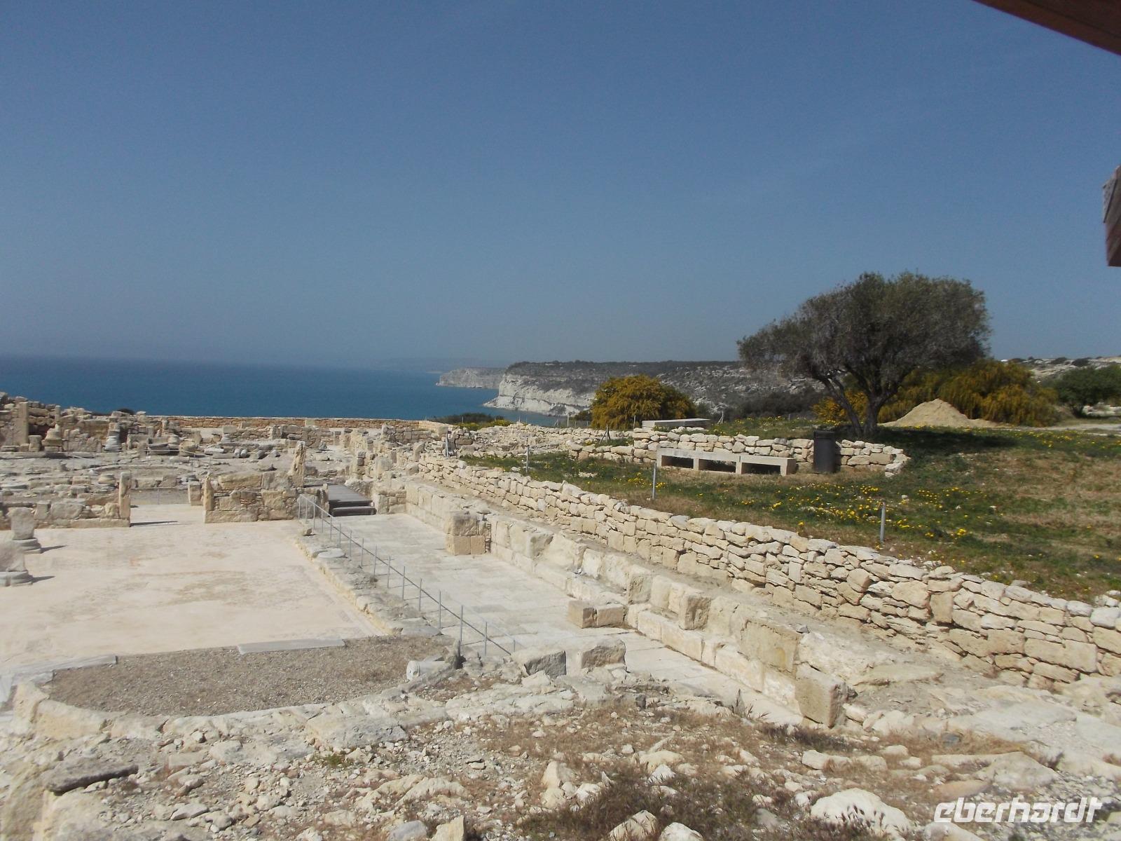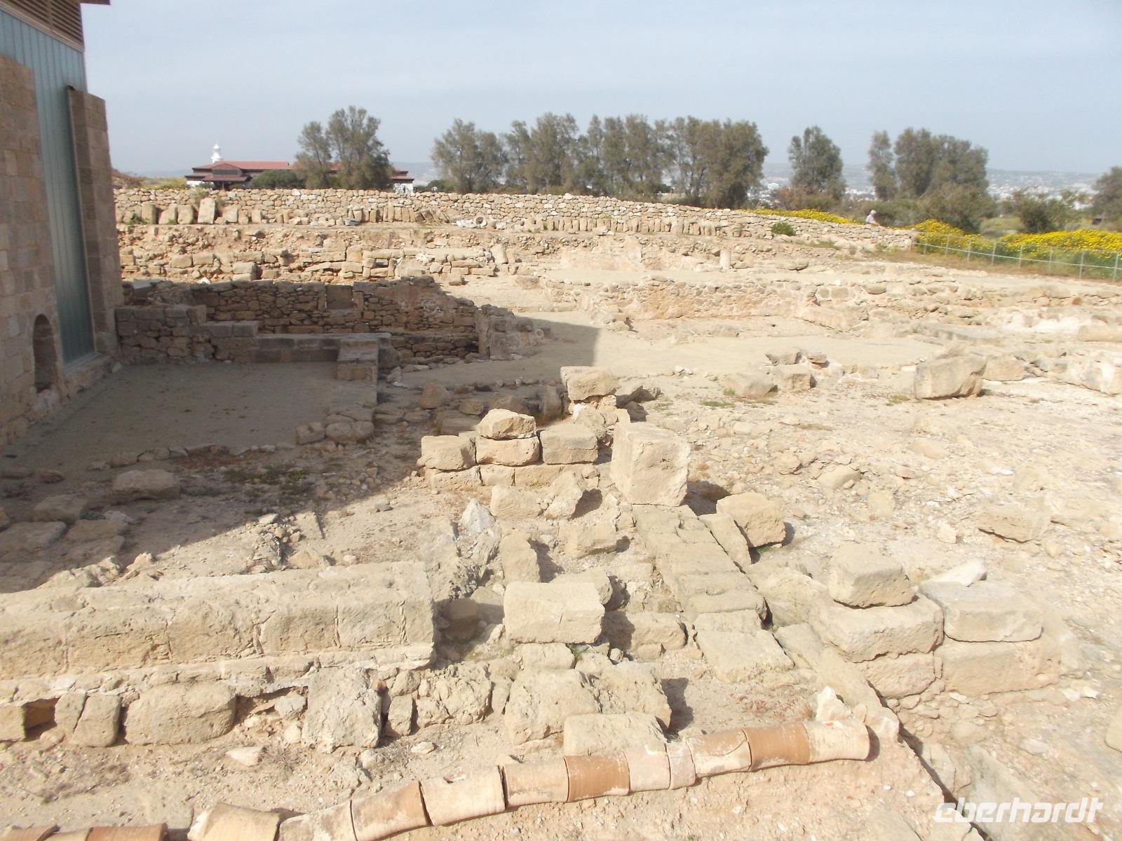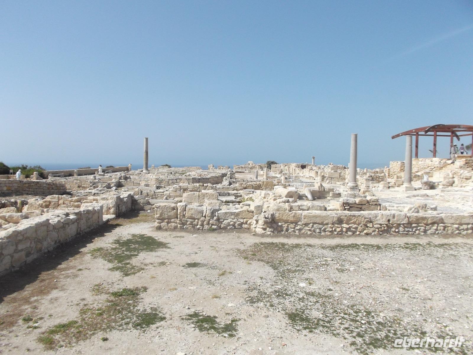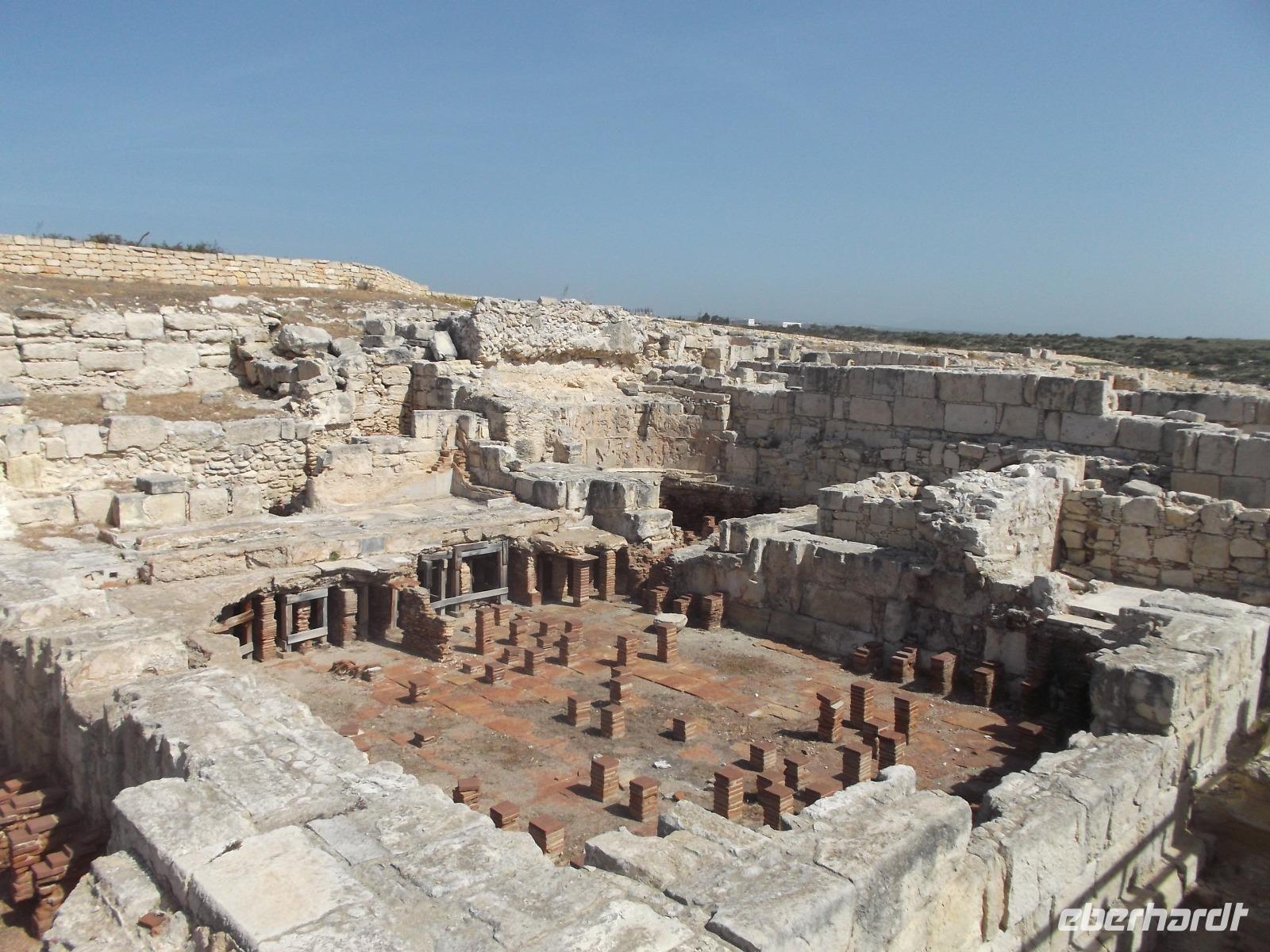 Westlich der Stadt Limassol liegt die Halbinsel Akrotiri, auf der sich bis heute ein großer britischer Armeestützpunkt befindet und an deren Rand befindet sich eine der bedeutendsten Ausgrabungsstädten Zyperns. Das ehemalige Stadtkönigreich Kourion ist wohl im 13. Vorchristlichen Jahrhundert als Kolonie von Argos gegründet worden, das als ältester kontinuierlich besiedelter Ort Europas gilt. Dennoch sind Dokumente über Kourion erst später überliefert, die ältesten stammen aus dem 7. Jh. v.Chr. Prunkstücke der Ausgrabungen sind mehrere Villen aus römischer Zeit mit gut erhaltenen Fußbodenmosaiken, von denen das sogenannte „Haus des Eustolios" die prächtigste und weitläufigste darstellt und fast schon als Palast bezeichnet werden kann. Hier sahen wir auch aufwendig gestaltete Thermen mit Heizungsanlagen, Wasserzufuhr etc. sowie gut erkennbar den typischen Aufbau einer römischen Villa.