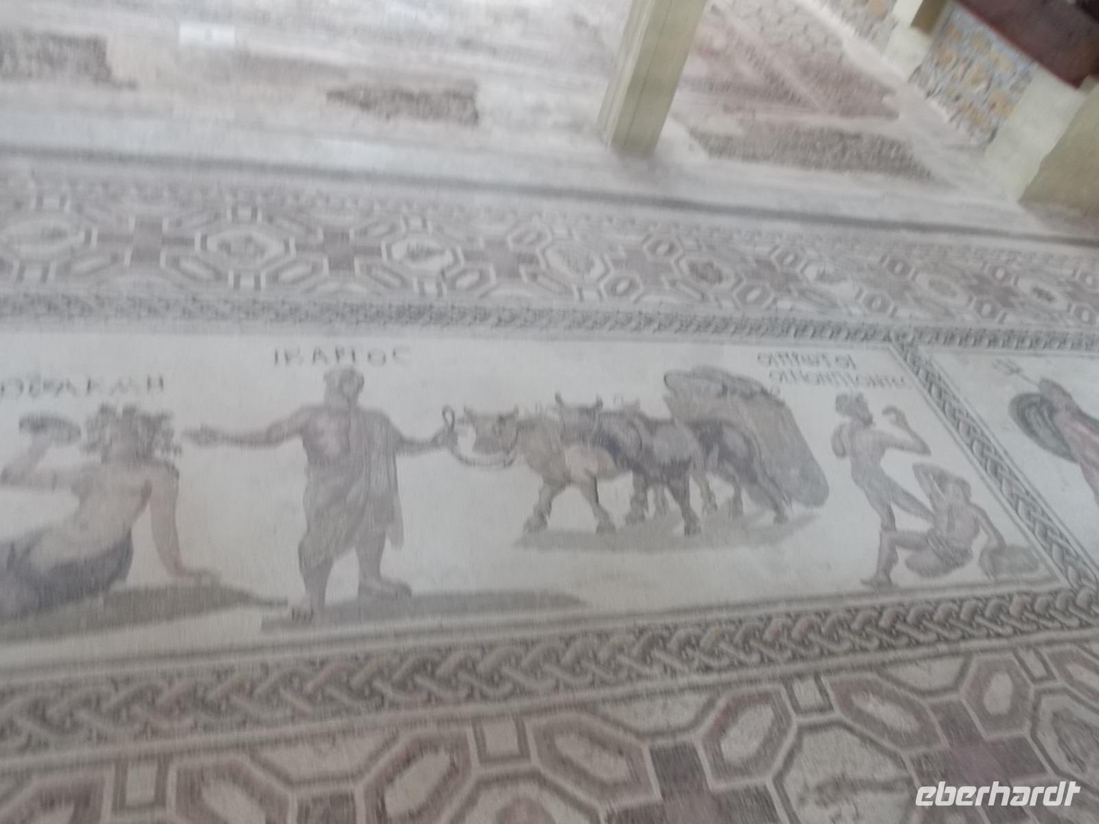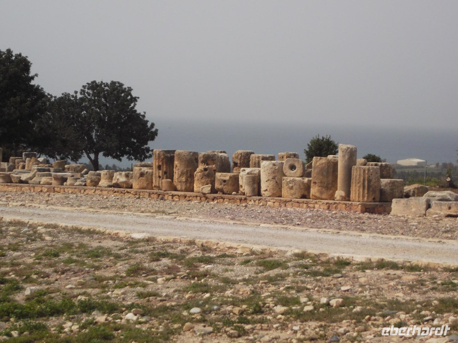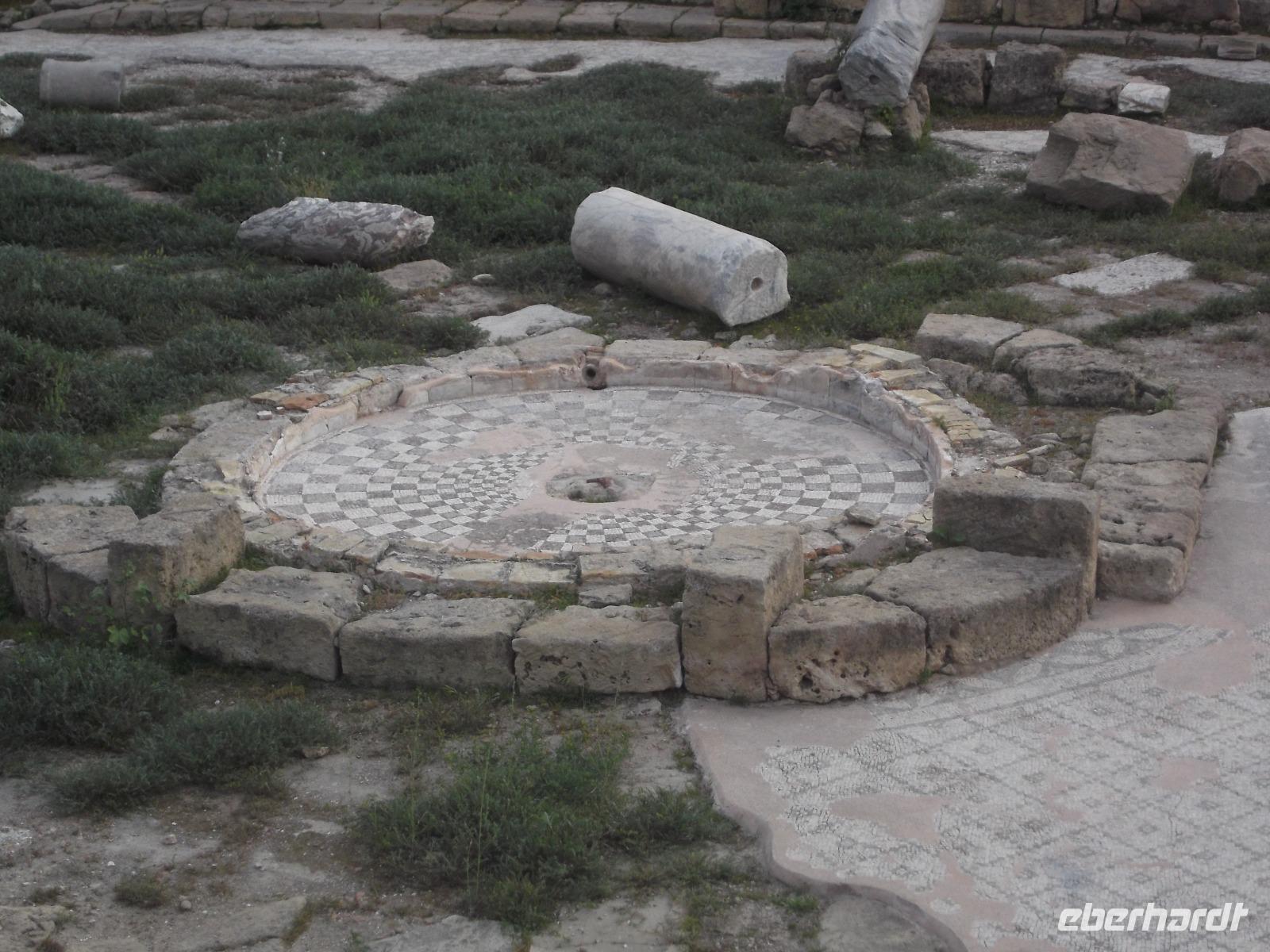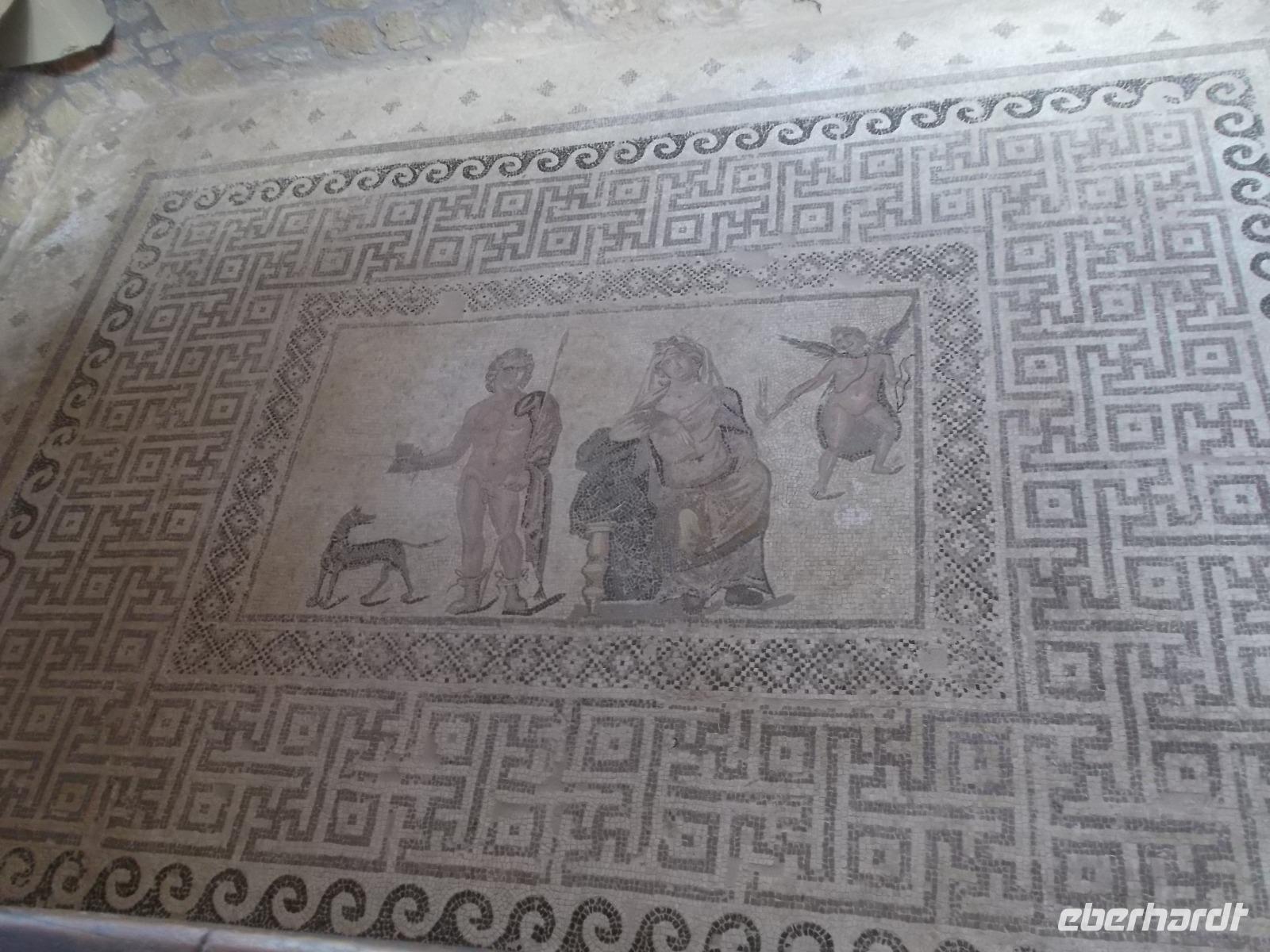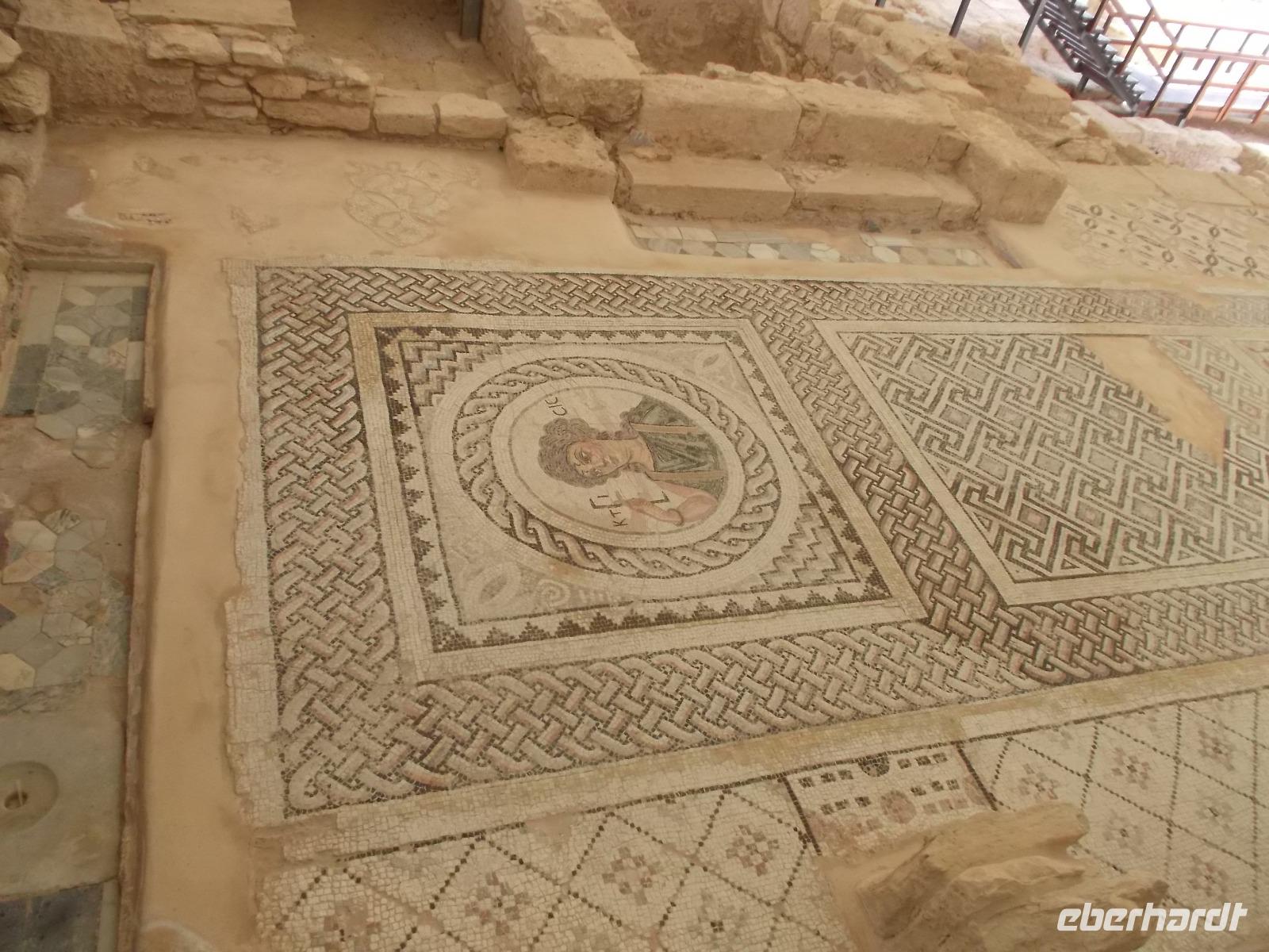 Westlich der Stadt Limassol liegt die Halbinsel Akrotiri, auf der sich bis heute ein großer britischer Armeestützpunkt befindet und an deren Rand befindet sich eine der bedeutendsten Ausgrabungsstädten Zyperns. Das ehemalige Stadtkönigreich Kourion ist wohl im 13. Vorchristlichen Jahrhundert als Kolonie von Argos gegründet worden, das als ältester kontinuierlich besiedelter Ort Europas gilt. Dennoch sind Dokumente über Kourion erst später überliefert, die ältesten stammen aus dem 7. Jh. v.Chr. Prunkstücke der Ausgrabungen sind mehrere Villen aus römischer Zeit mit gut erhaltenen Fußbodenmosaiken, von denen das sogenannte „Haus des Eustolios" die prächtigste und weitläufigste darstellt und fast schon als Palast bezeichnet werden kann. Hier sahen wir auch aufwendig gestaltete Thermen mit Heizungsanlagen, Wasserzufuhr etc. sowie gut erkennbar den typischen Aufbau einer römischen Villa.