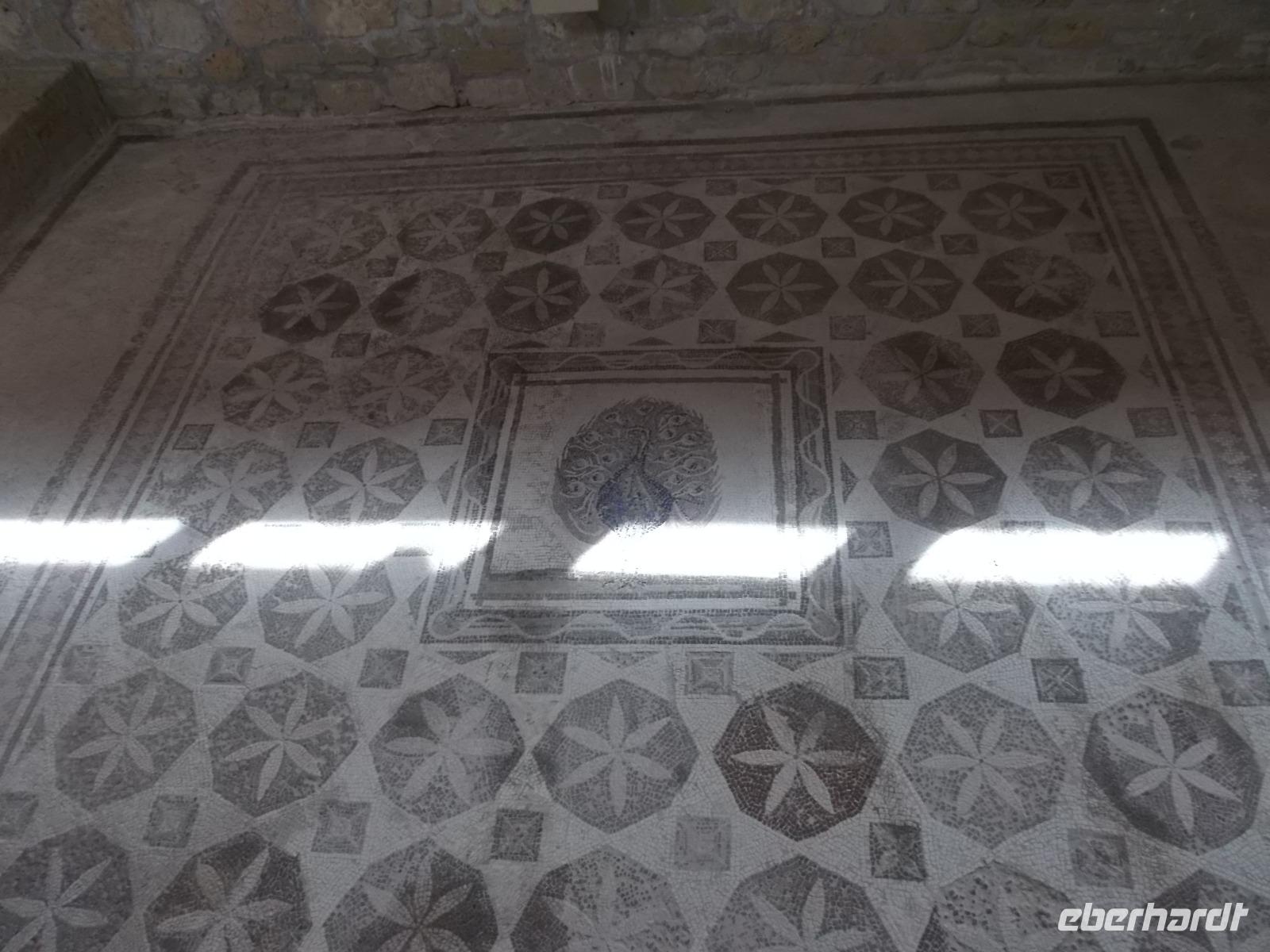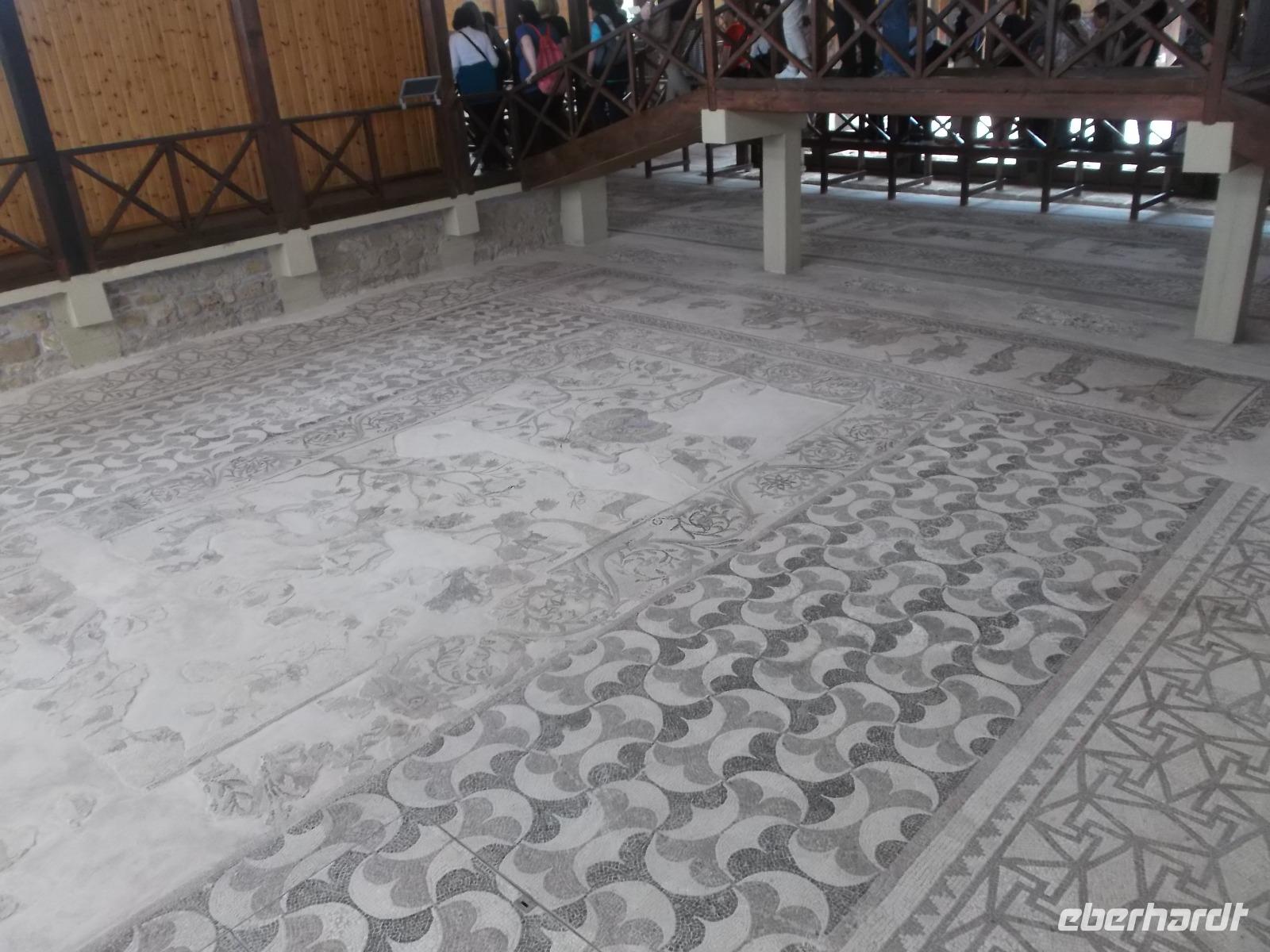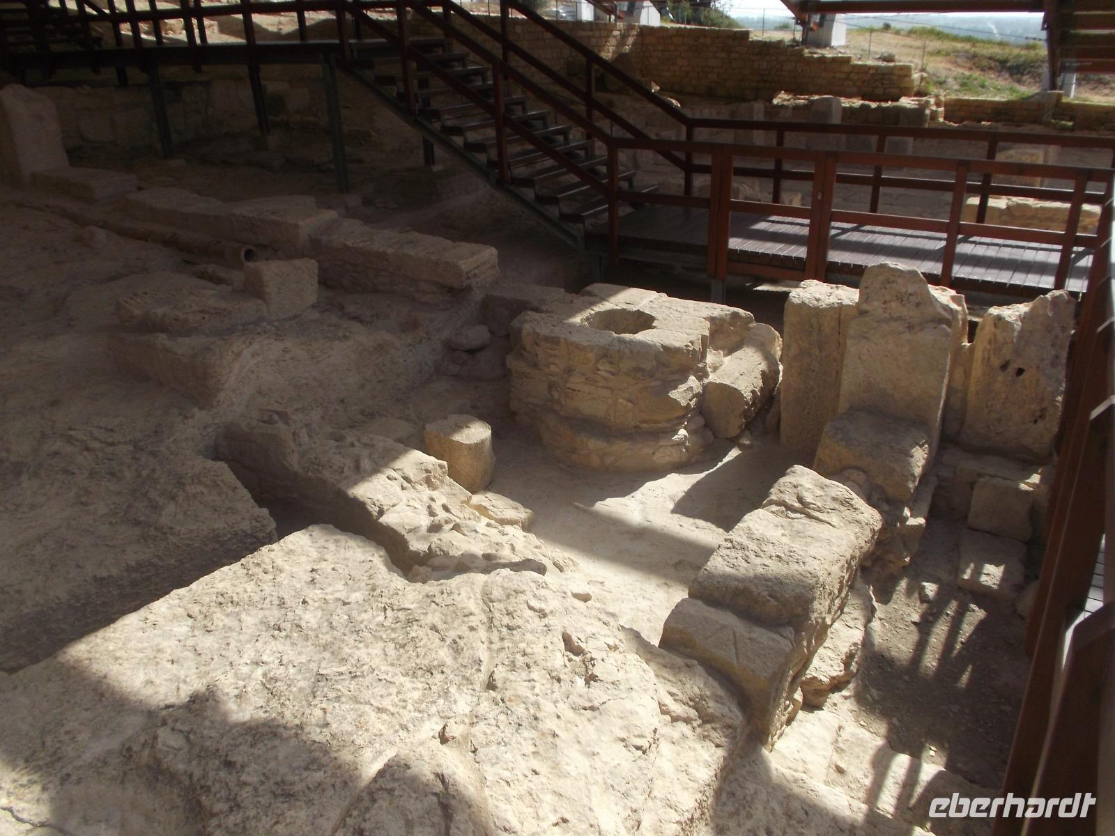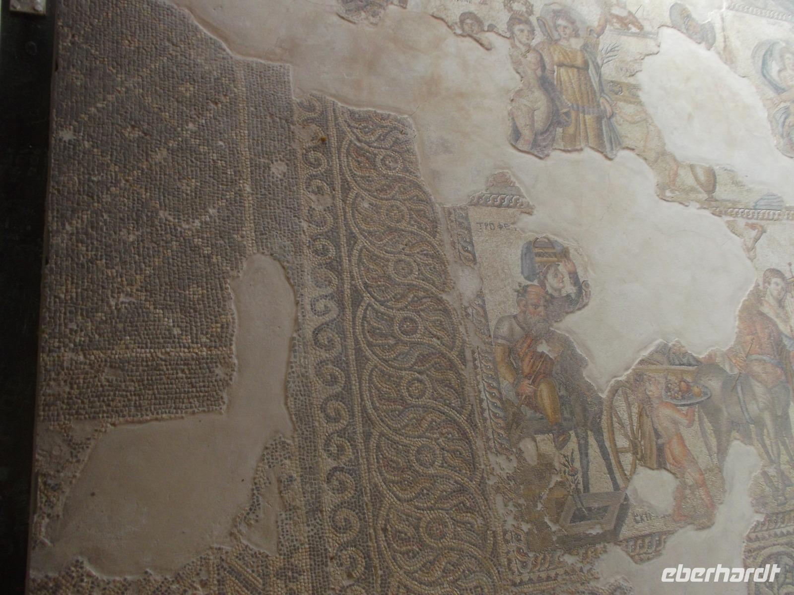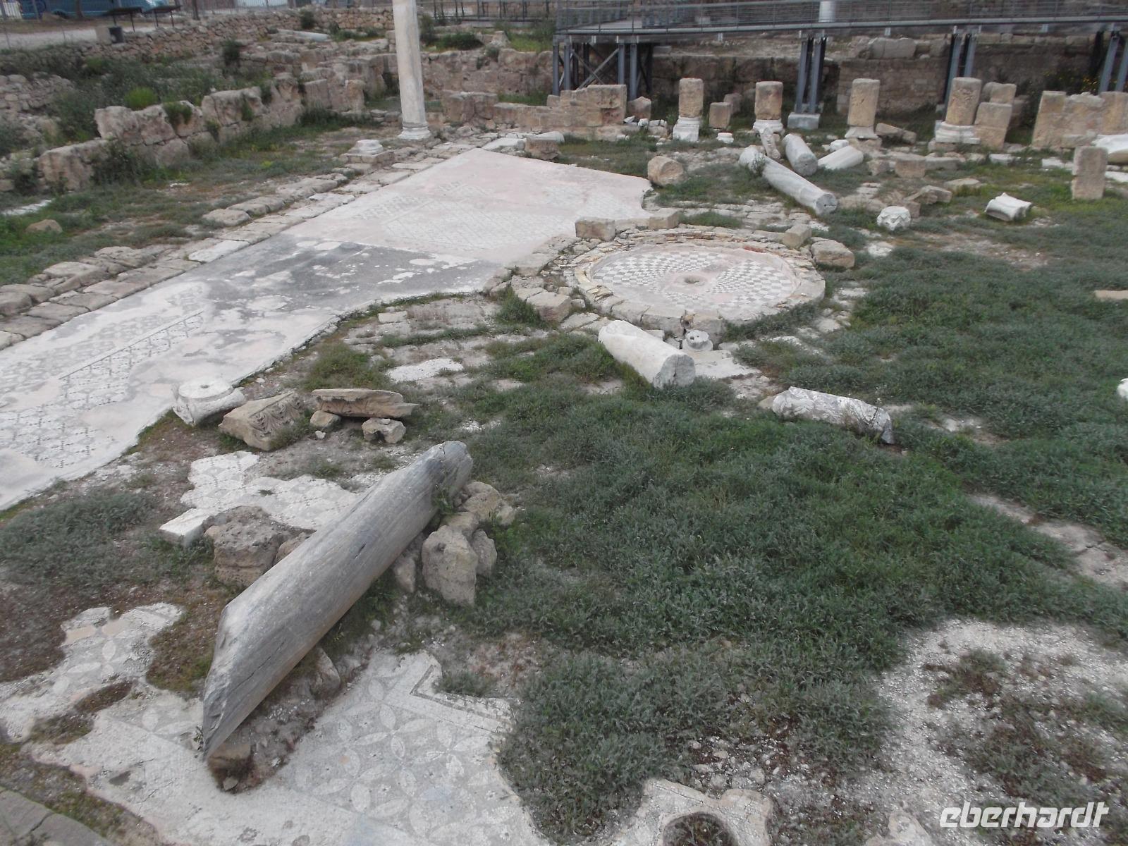 Westlich der Stadt Limassol liegt die Halbinsel Akrotiri, auf der sich bis heute ein großer britischer Armeestützpunkt befindet und an deren Rand befindet sich eine der bedeutendsten Ausgrabungsstädten Zyperns. Das ehemalige Stadtkönigreich Kourion ist wohl im 13. Vorchristlichen Jahrhundert als Kolonie von Argos gegründet worden, das als ältester kontinuierlich besiedelter Ort Europas gilt. Dennoch sind Dokumente über Kourion erst später überliefert, die ältesten stammen aus dem 7. Jh. v.Chr. Prunkstücke der Ausgrabungen sind mehrere Villen aus römischer Zeit mit gut erhaltenen Fußbodenmosaiken, von denen das sogenannte „Haus des Eustolios" die prächtigste und weitläufigste darstellt und fast schon als Palast bezeichnet werden kann. Hier sahen wir auch aufwendig gestaltete Thermen mit Heizungsanlagen, Wasserzufuhr etc. sowie gut erkennbar den typischen Aufbau einer römischen Villa.