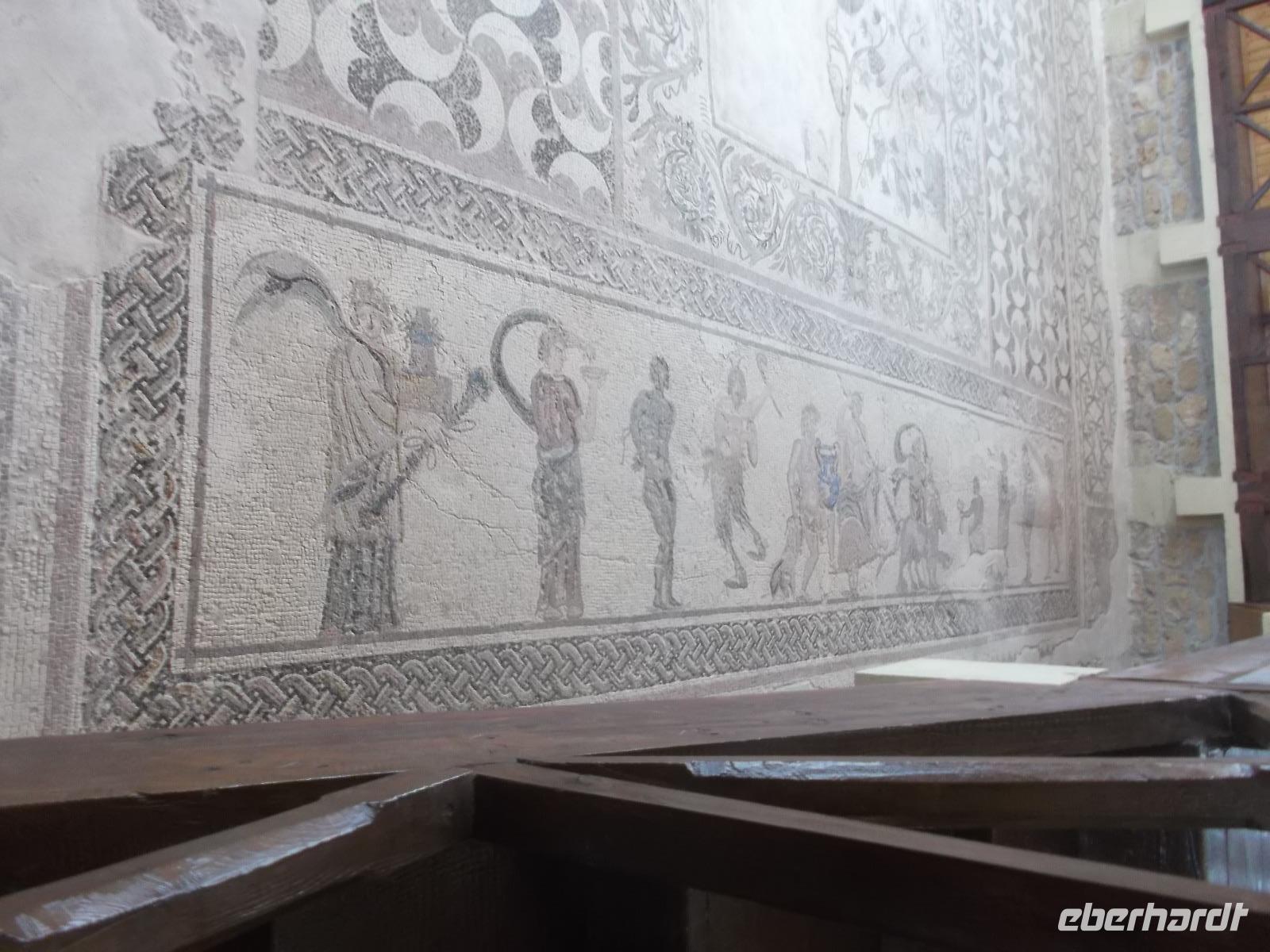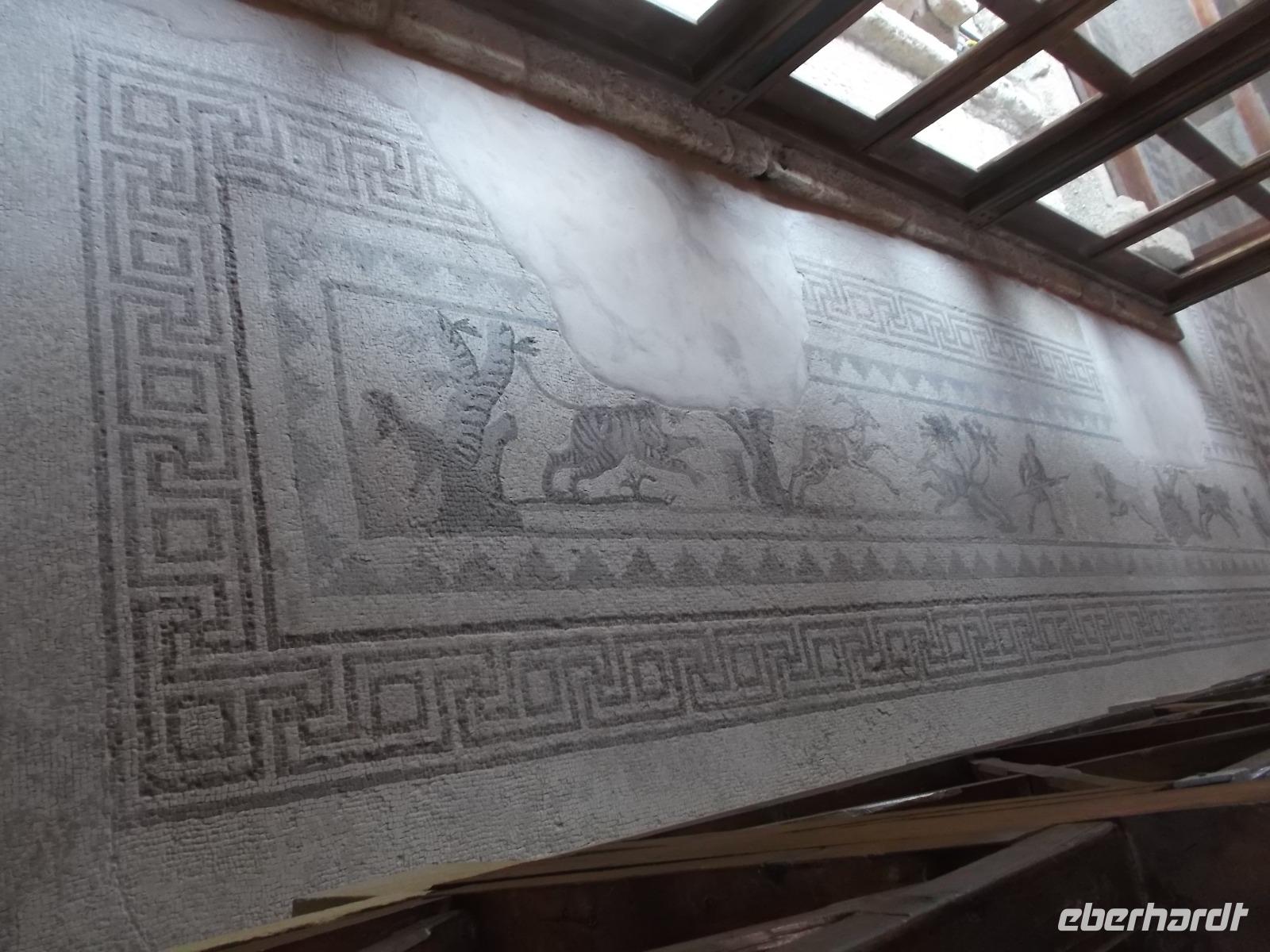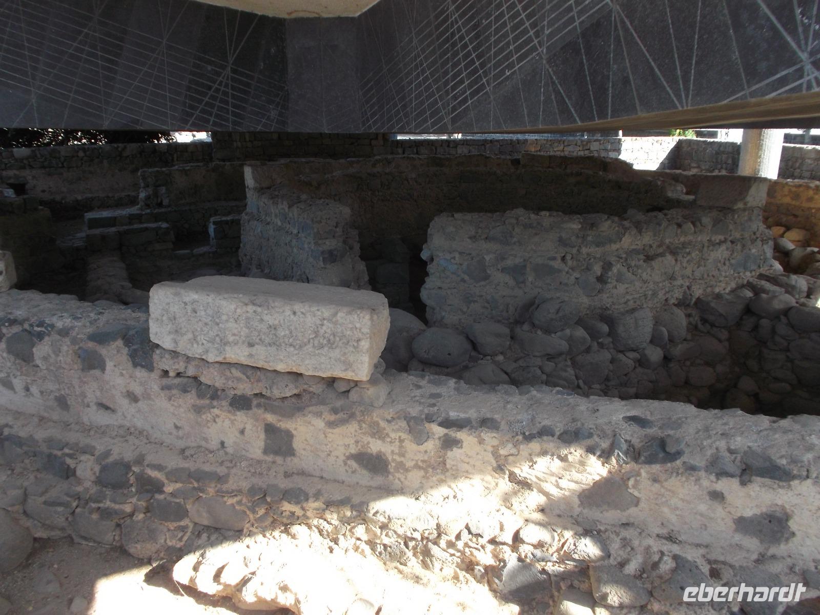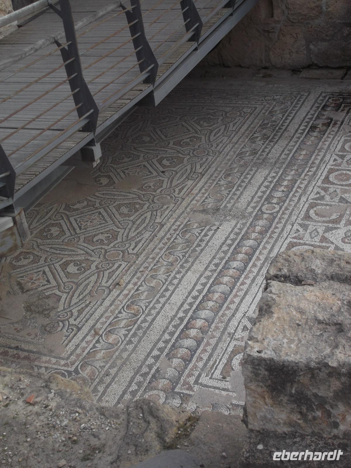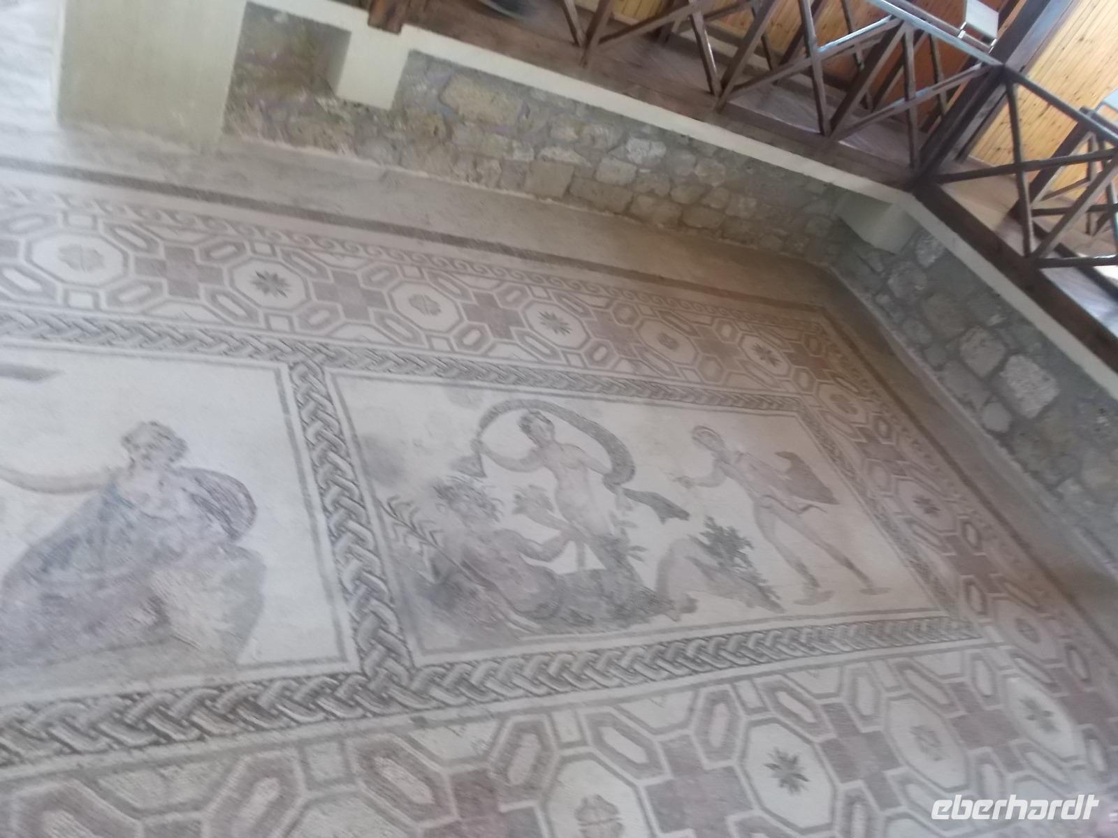 Westlich der Stadt Limassol liegt die Halbinsel Akrotiri, auf der sich bis heute ein großer britischer Armeestützpunkt befindet und an deren Rand befindet sich eine der bedeutendsten Ausgrabungsstädten Zyperns. Das ehemalige Stadtkönigreich Kourion ist wohl im 13. Vorchristlichen Jahrhundert als Kolonie von Argos gegründet worden, das als ältester kontinuierlich besiedelter Ort Europas gilt. Dennoch sind Dokumente über Kourion erst später überliefert, die ältesten stammen aus dem 7. Jh. v.Chr. Prunkstücke der Ausgrabungen sind mehrere Villen aus römischer Zeit mit gut erhaltenen Fußbodenmosaiken, von denen das sogenannte „Haus des Eustolios" die prächtigste und weitläufigste darstellt und fast schon als Palast bezeichnet werden kann. Hier sahen wir auch aufwendig gestaltete Thermen mit Heizungsanlagen, Wasserzufuhr etc. sowie gut erkennbar den typischen Aufbau einer römischen Villa.