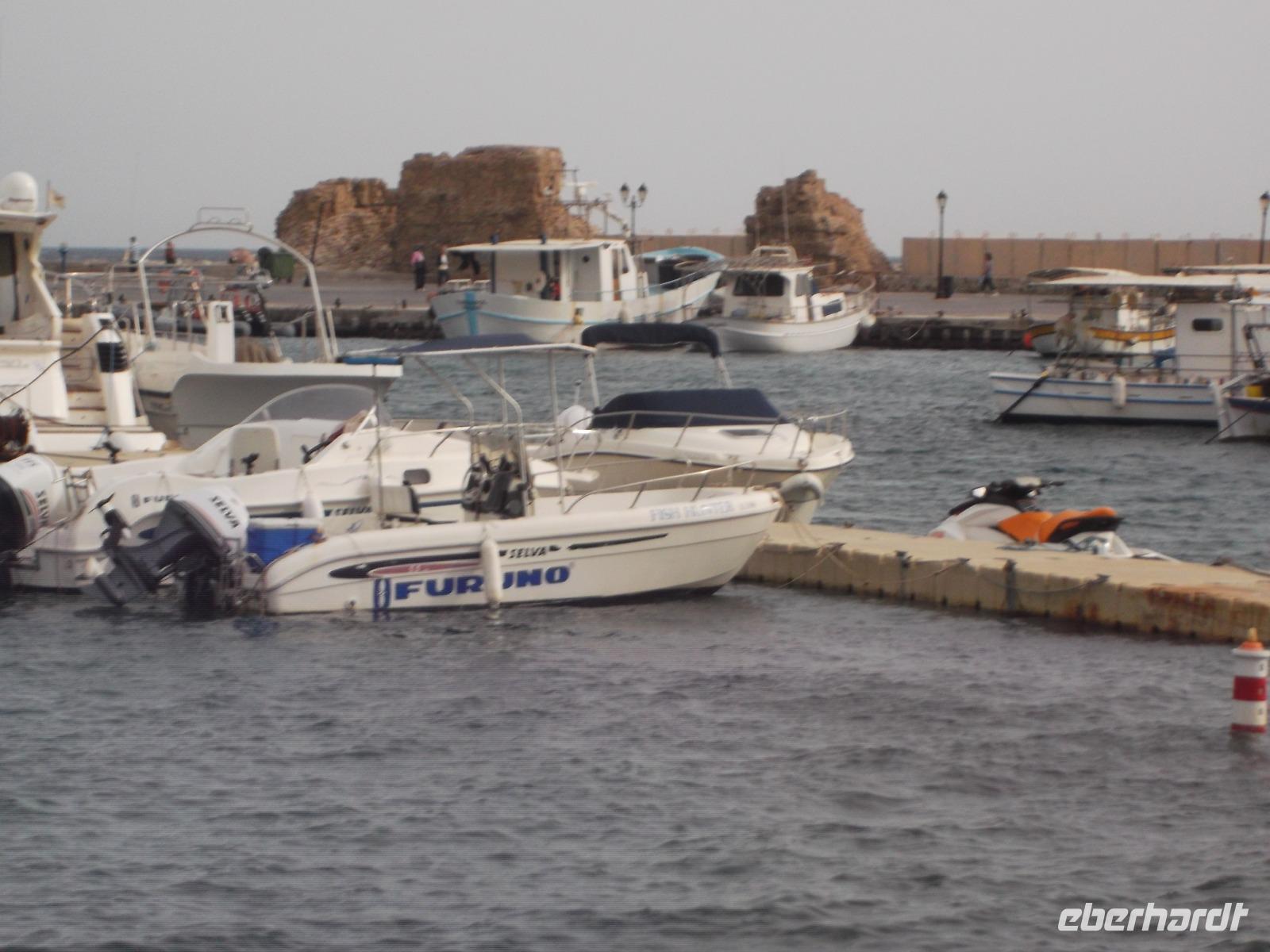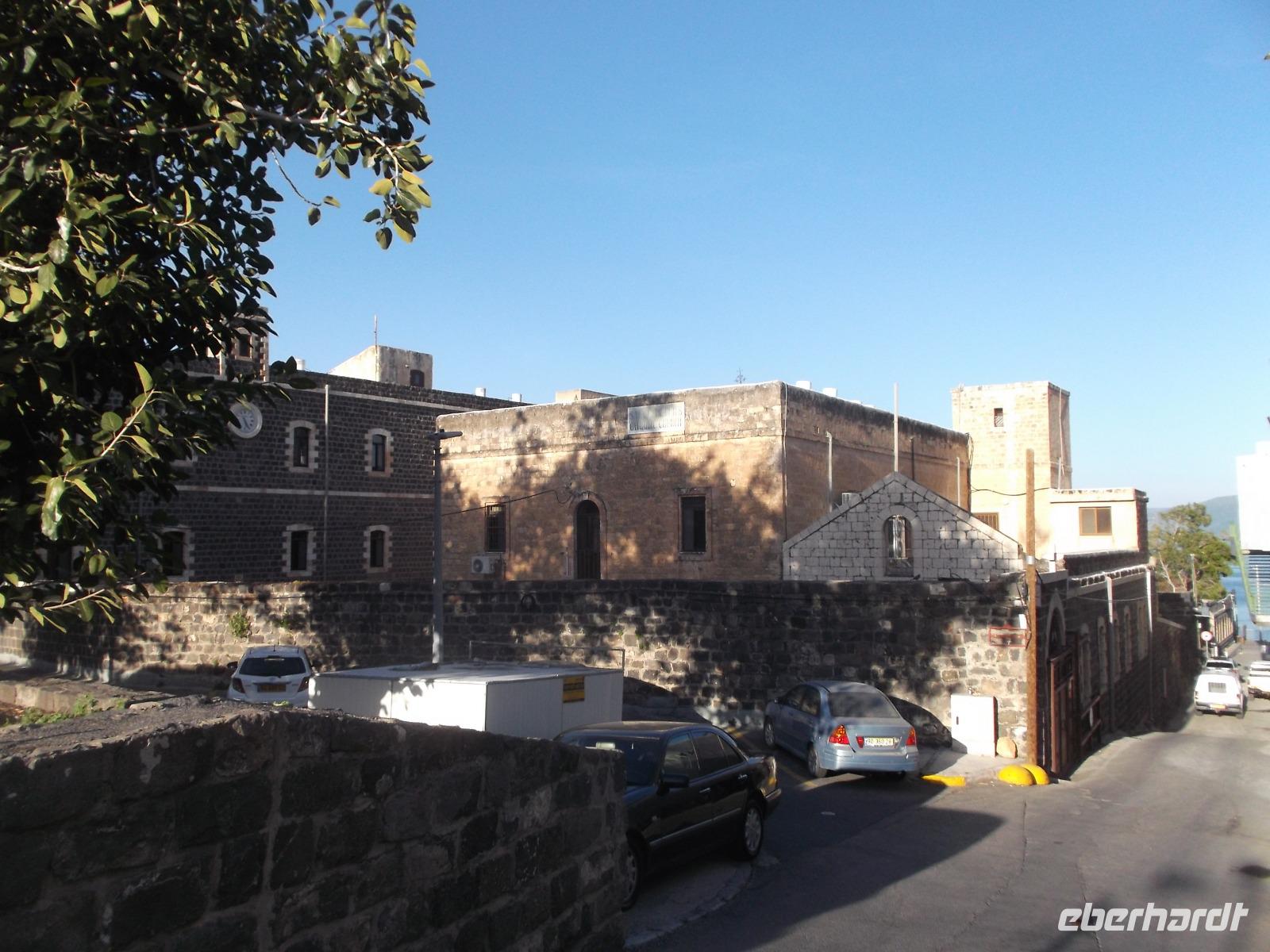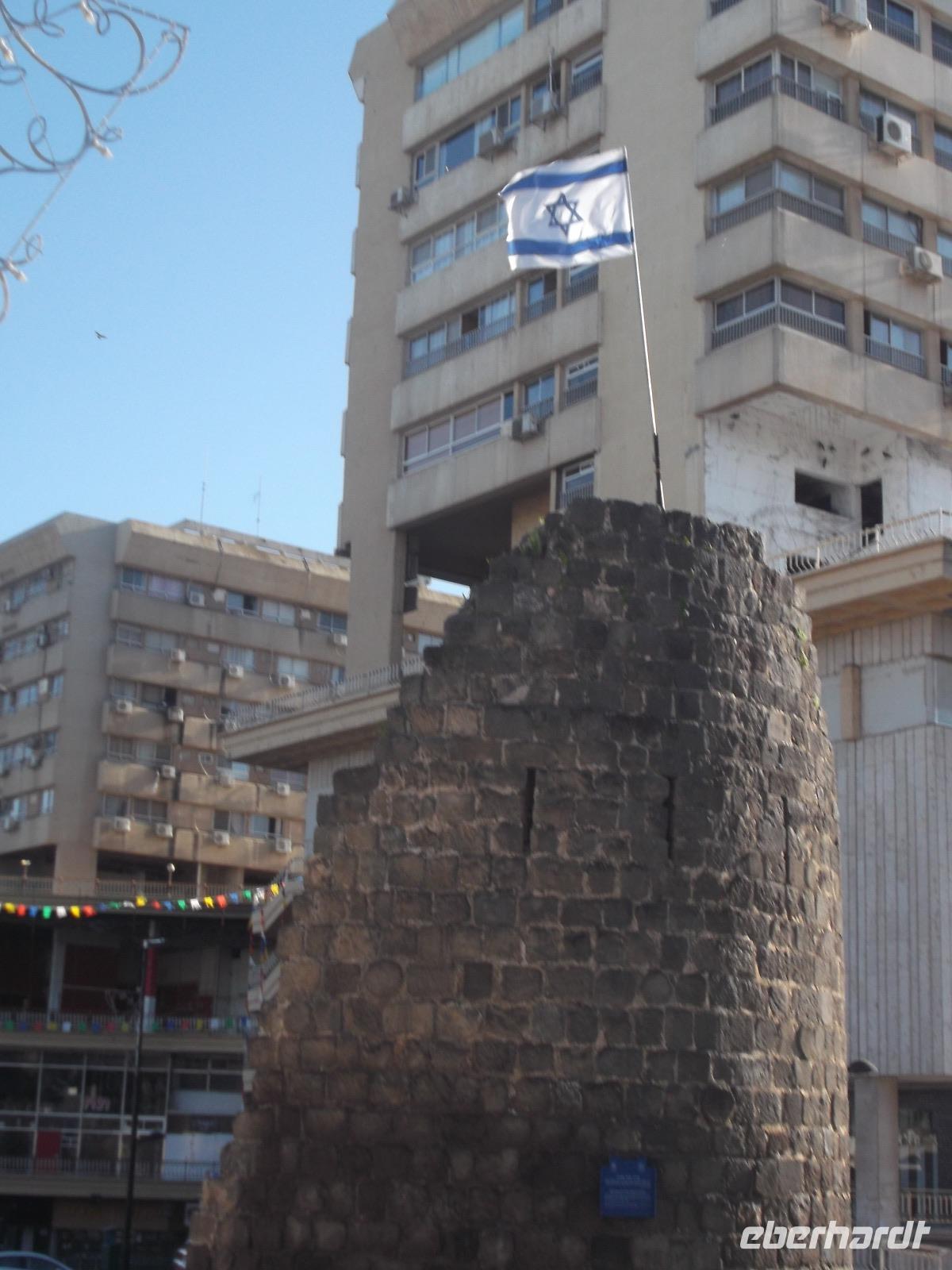 Als Tagesabschluss fuhren wir noch zum Hafen der Stadt Tiberias, die mit 200 Metern unter dem Meeresspiegel zu den am niedrigsten gelegenen Orten Israels und der ganzen Welt zählt. Die einst von den Kreuzrittern stark befestigte Stadt - spärliche Reste der einst mächtigen Kreuzfahrerfestung und des Klosters St. Peter sind noch zu finden - wurde in der späten Kreuzzugsgeschichte von den Muslimen erobert und zerstört, später neu besiedelt und mit Stadtmauer wieder aufgebaut. Dann im 19. Jh. jedoch zerstörte ein Erdbeben große Teile der historischen Gebäude, so dass die Stadt sich heute modern und mit nur wenig Historie präsentiert.