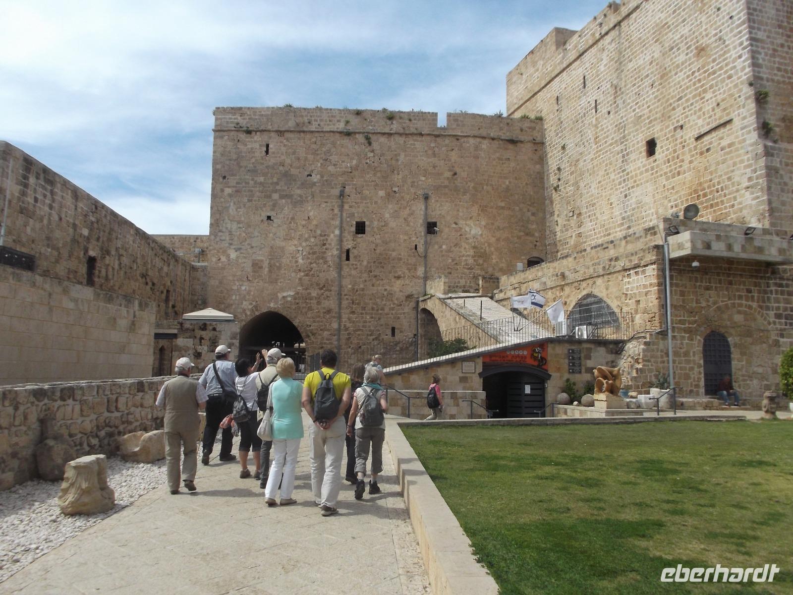 Entlang der Höhenzüge des Karmel-Gebirges erreichten wir nach einiger Zeit die Stadt Akkon, die seit 2001 zum UNESCO-Weltkulturerbe gehört. Dieser Ort hat besondere Bedeutung für die Geschichte des Kreuzfahrer-Königreiches, da er nach dem Fall von Jerusalem zur Hauptstadt des Königreiches und mit seinem Allwetter-Hafen zu einer Schlüsselstadt und zum wichtigsten Hafen der Kreuzzüge wurde. Seine Lage auf einer Landzunge im Norden der Haifa-Bucht und seine starken Befestigungen sowie die rege Bautätigkeit zur Zeit der Kreuzzüge ließen den Ort zur herausragendsten Küstenfestung im Nahen Osten werden. Hier gründete man nicht nur den Deutschen Orden und wählte die Stadt zum Sitz des Hochmeisters, hier befand sich auch das älteste Hospital der Johanniter, die ab 1230 die Verwaltung der Stadt übernahmen. Dies und ihre Funktion auch als letzte Bastion der Tempelritter vor dem Ende der Kreuzzüge führte zum Ausbau einer ganzen unterirdischen Stadt, die wir ausführlich besichtigten. Neben den wuchtigen Vierecktürmen, die mit meterdicken Mauern mehrere Stockwerke in die Höhe ragten - inklusive einer steinernen Rampe, die es ermöglichte, auch Pferde in die oberen Etagen zu bringen, spielte sich ein Teil des Lebens im 12. Und 13. Jh. in den Kellergeschossen ab. Speisesäle, Empfangsräume, Lager und Kasematten zeugen von der schieren Größe der einstigen Kreuzfahrerstadt. Auch in der charmanten historischen Altstadt konnten wir das seltene Gefühl genießen, die Zeit sei stehen geblieben. Wir besuchten noch die gewaltige große Moschee, denn Akkon ist die auch größte arabisch bewohnte Stadt auf israelischem Gebiet.