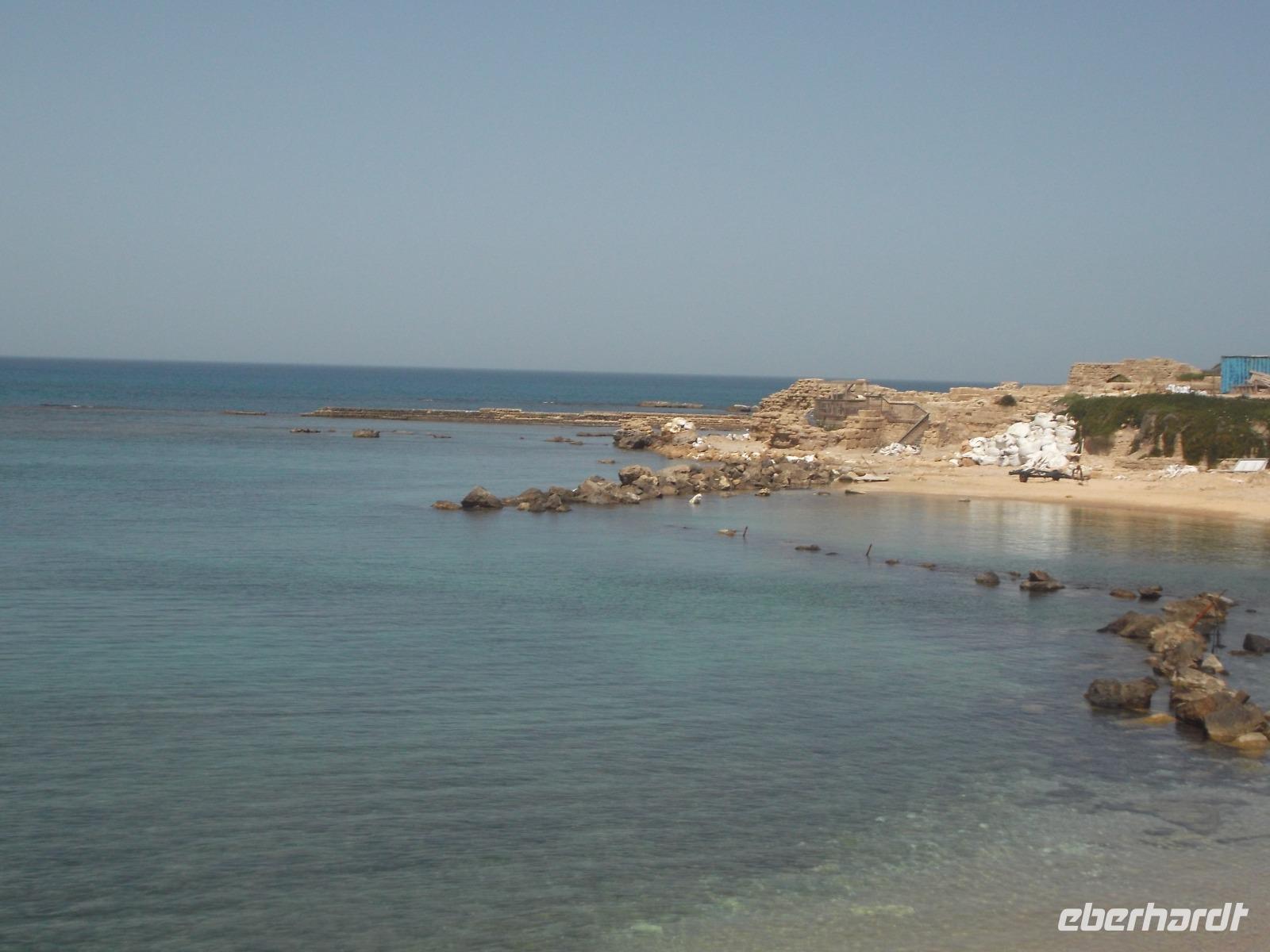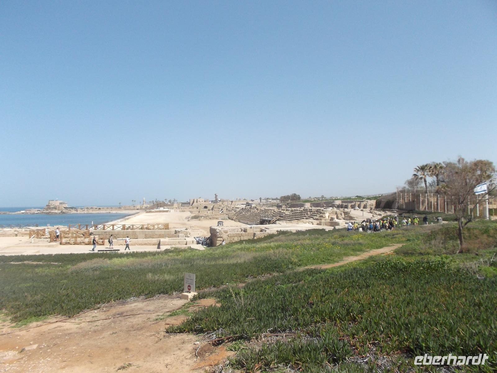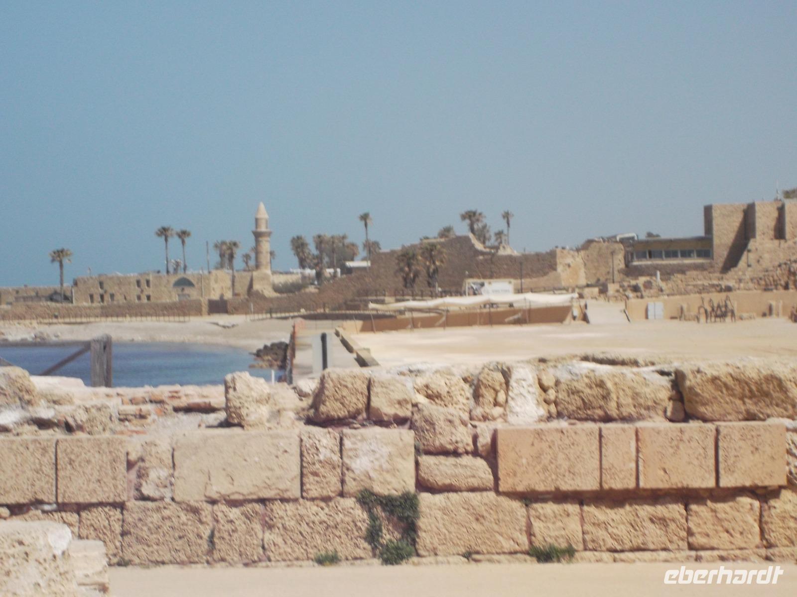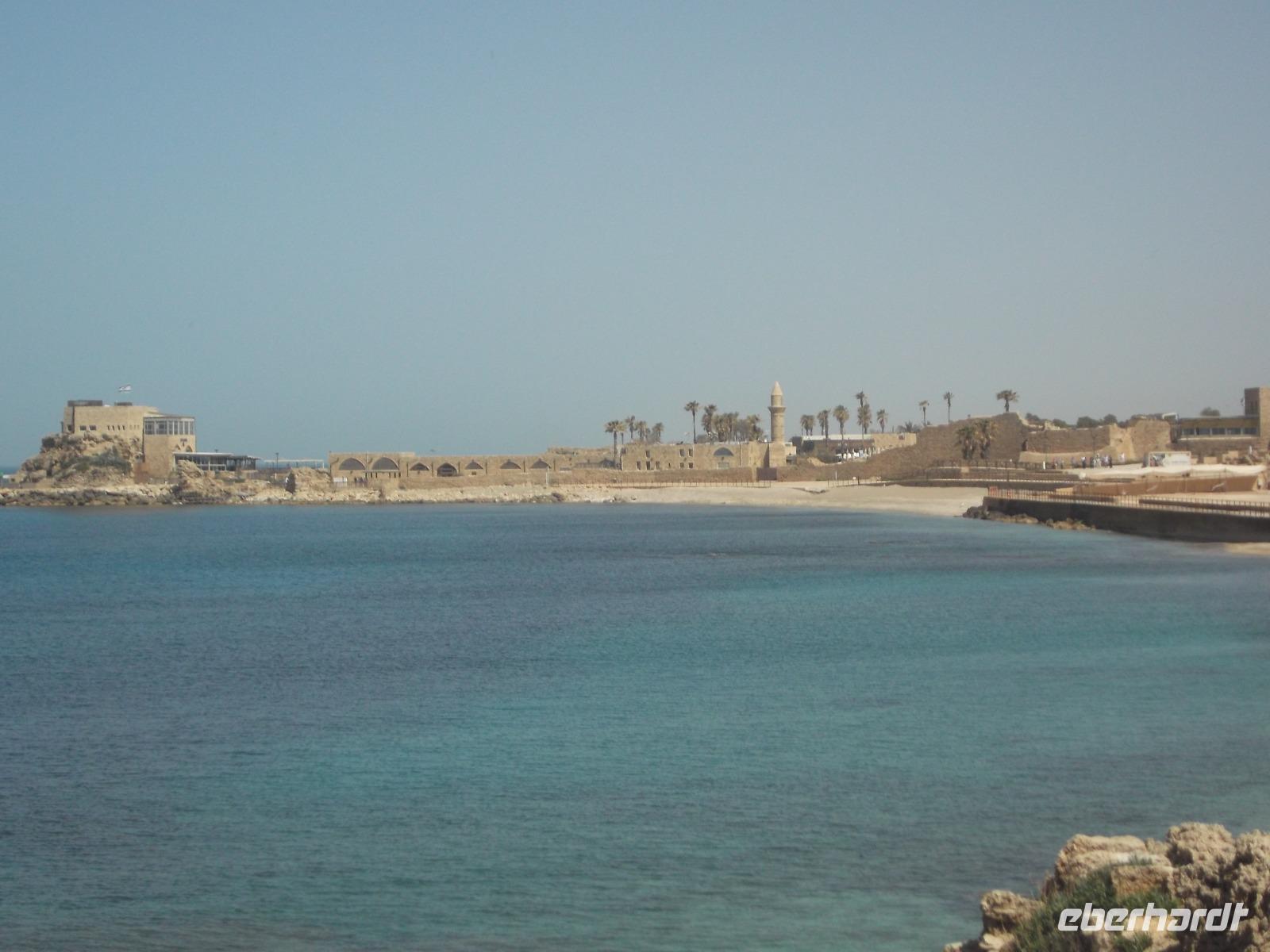 Das schöne Haifa verließen wir heute bereits wieder, um an der Mittelmeerküste entlang zu fahren. Unterwegs legten wir einen kurzen Fotostopp ein, der die Festung Atlit zeigte. Da sie als immer noch aktive Festung des israelischen Miltärs nicht für Besucher zugänglich ist, konnten wir nur von weitem den wuchtigen Festungsturm fotografieren. Als eine der größten Kreuzritterburgen im Heiligen Land Anfang des 13. Jh. von den Tempelrittern erbaut war das einstige Chateau Pelerin die einzige Festung, die nie erobert wurde. Zeitgleich mit dem Fall der Stadt Akkon wurde sie 1291 von ihrer Besatzung verlassen, da kein Nachschub mehr zu erwarten war. Nach einem weiteren Stopp mit kleinem Spaziergang zu den am Ufer des Mittelmeeres gelegenen Resten der Kreuzritterfestung Merle, ging es entlang der Mittelmeerküste nach Caesarea, das in römischer Zeit die größte Hafenstadt Israels war. Der Ort, heute eine der bedeutendsten Ausgrabungsstätten Israels, blickt auf eine lange, wechselhafte Geschichte zurück. Die Phönizier, Herodes der Große und der römische Kaiser Vespasian sind nur einige der Baumeister in dieser Stadt, die wie ein einziges gewaltiges Freilichtmuseum wirkt. Entscheidend war der Hafen, um den herum die antike Stadt entstand. Ihr berühmtes antikes Theater ist nicht nur Teil der Ausgrabungsstätte, sondern wird auch heute noch für Konzerte genutzt. Bei unserem interessanten Rundgang im heute als Nationalpark angelegten Ausgrabungsgelände sahen wir neben dem Theater und verschiedenen Resten von öffentlichen Bädern auch Überreste der alten Paläste und des gewaltigen Hippodroms, einer Kampfbahn für Pferde- und Wagenrennen. Später jedoch versandete der Hafen und die einst wohl bedeutendste Stadt der Region ging nieder - bis im 13. Jh. die Kreuzritter den Hafen erneut in Betrieb nahmen und die Stadt stark befestigten. Gut erhaltene Reste ihrer gewaltigen Stadtmauern sind bis heute zu sehen.