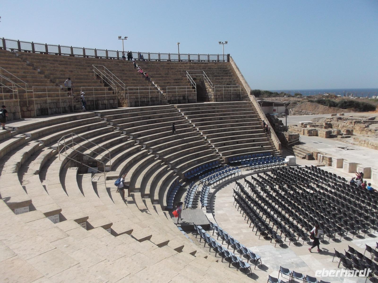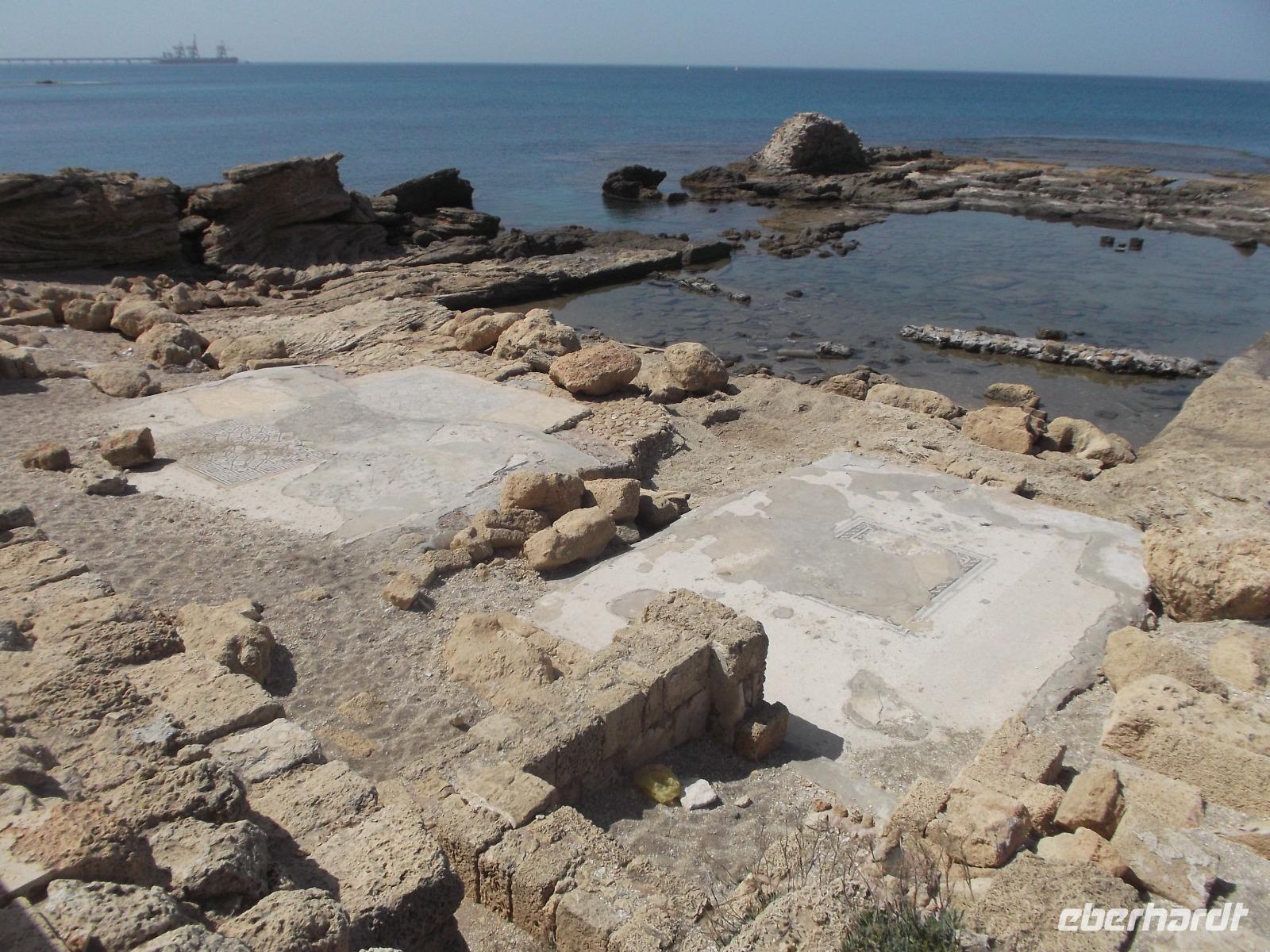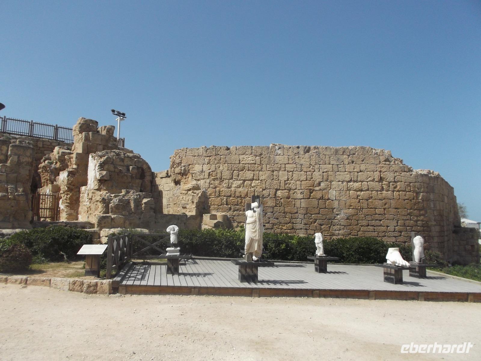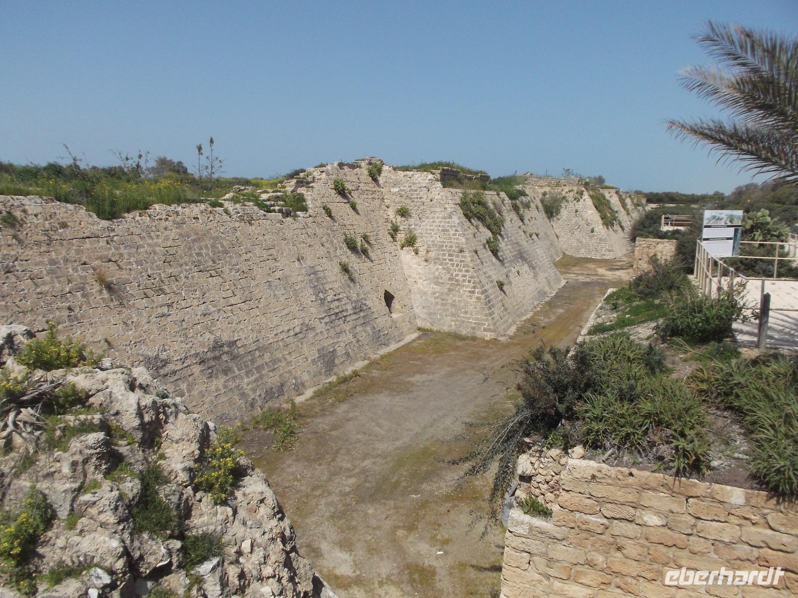 Das schöne Haifa verließen wir heute bereits wieder, um an der Mittelmeerküste entlang zu fahren. Unterwegs legten wir einen kurzen Fotostopp ein, der die Festung Atlit zeigte. Da sie als immer noch aktive Festung des israelischen Miltärs nicht für Besucher zugänglich ist, konnten wir nur von weitem den wuchtigen Festungsturm fotografieren. Als eine der größten Kreuzritterburgen im Heiligen Land Anfang des 13. Jh. von den Tempelrittern erbaut war das einstige Chateau Pelerin die einzige Festung, die nie erobert wurde. Zeitgleich mit dem Fall der Stadt Akkon wurde sie 1291 von ihrer Besatzung verlassen, da kein Nachschub mehr zu erwarten war. Nach einem weiteren Stopp mit kleinem Spaziergang zu den am Ufer des Mittelmeeres gelegenen Resten der Kreuzritterfestung Merle, ging es entlang der Mittelmeerküste nach Caesarea, das in römischer Zeit die größte Hafenstadt Israels war. Der Ort, heute eine der bedeutendsten Ausgrabungsstätten Israels, blickt auf eine lange, wechselhafte Geschichte zurück. Die Phönizier, Herodes der Große und der römische Kaiser Vespasian sind nur einige der Baumeister in dieser Stadt, die wie ein einziges gewaltiges Freilichtmuseum wirkt. Entscheidend war der Hafen, um den herum die antike Stadt entstand. Ihr berühmtes antikes Theater ist nicht nur Teil der Ausgrabungsstätte, sondern wird auch heute noch für Konzerte genutzt. Bei unserem interessanten Rundgang im heute als Nationalpark angelegten Ausgrabungsgelände sahen wir neben dem Theater und verschiedenen Resten von öffentlichen Bädern auch Überreste der alten Paläste und des gewaltigen Hippodroms, einer Kampfbahn für Pferde- und Wagenrennen. Später jedoch versandete der Hafen und die einst wohl bedeutendste Stadt der Region ging nieder - bis im 13. Jh. die Kreuzritter den Hafen erneut in Betrieb nahmen und die Stadt stark befestigten. Gut erhaltene Reste ihrer gewaltigen Stadtmauern sind bis heute zu sehen.
