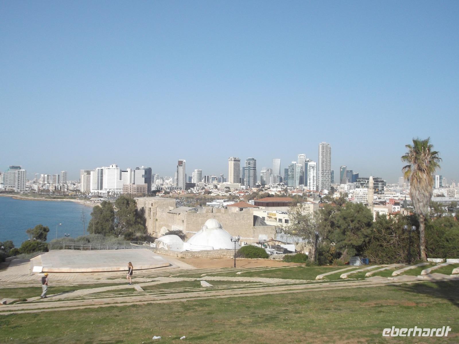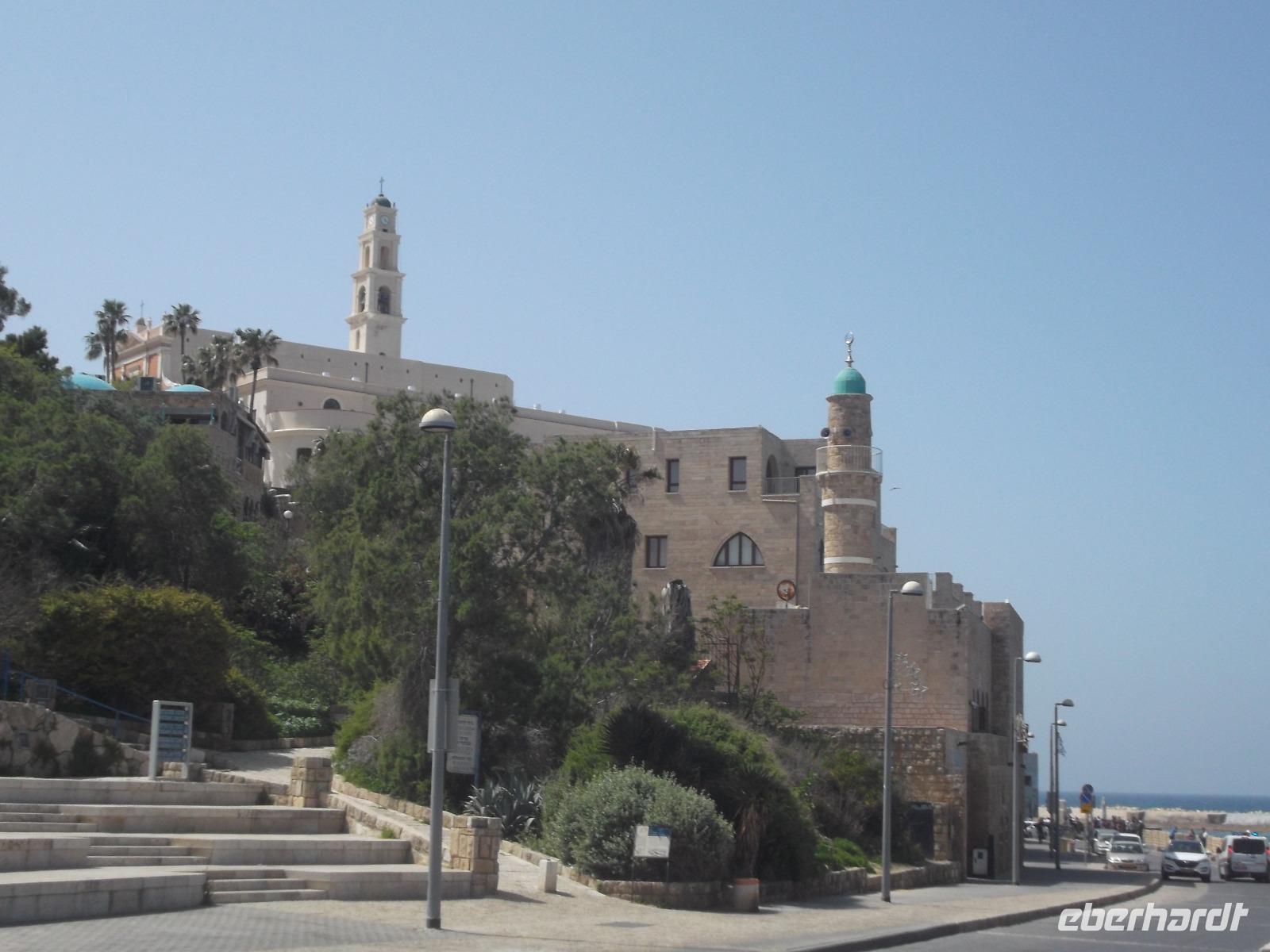 Weiter ging unsere Reise dann nach Tel Aviv, Israels größter Stadt und mit all ihren Vororten eine der größten Metropolregionen im Nahen Osten. Die moderne Stadt, die 1950 mit ihrer Altstadt, dem bekannten Jaffa, zu einer Großstadt verschmolz, beherbergt viele Jugendstilbauten und das weltweit größte Zentrum von Bauten im Bauhaus-Stil, was Tel Aviv seit 2003 einen Platz auf der Liste des UNESCO-Weltkulturerbes sichert. Bei einer kleinen Rundfahrt - günstig, weil es zum Spazieren heute eigentlich zu heiß war - sahen wir viele der Gebäude und besuchten zum Abschluss dann die eigentlichen Ursprünge der heutigen modernen Großstadt, das schon vor etwa 3.500 v. Chr. gegründete Jaffa, das damit zu den ältesten Städten des Landes gehört.