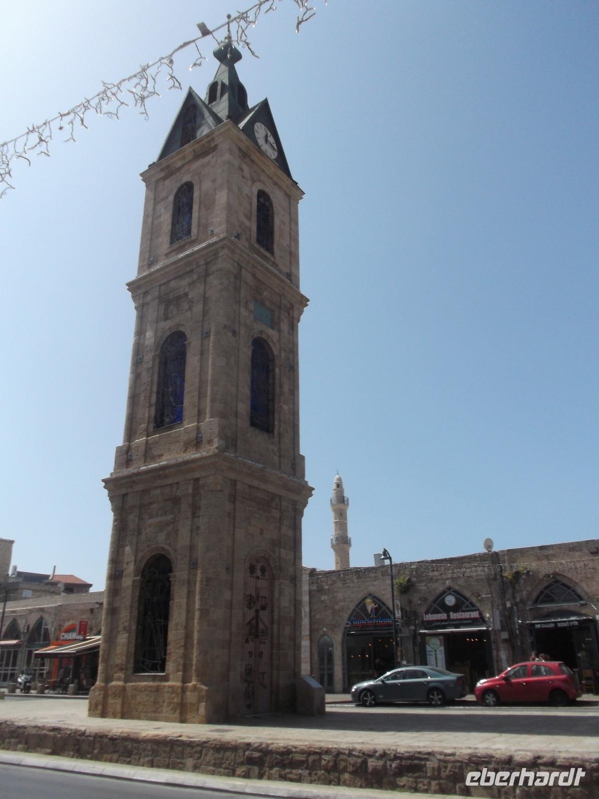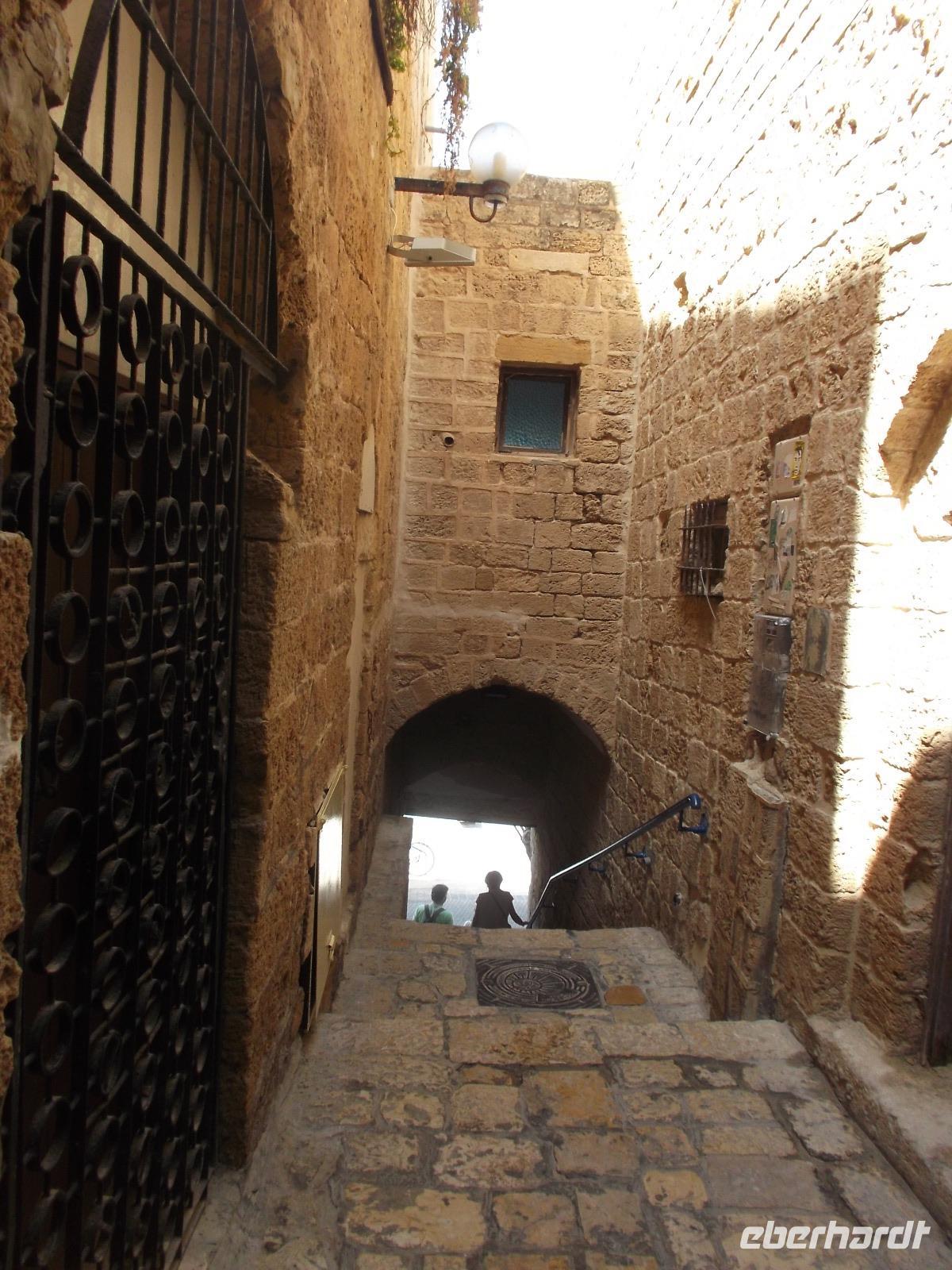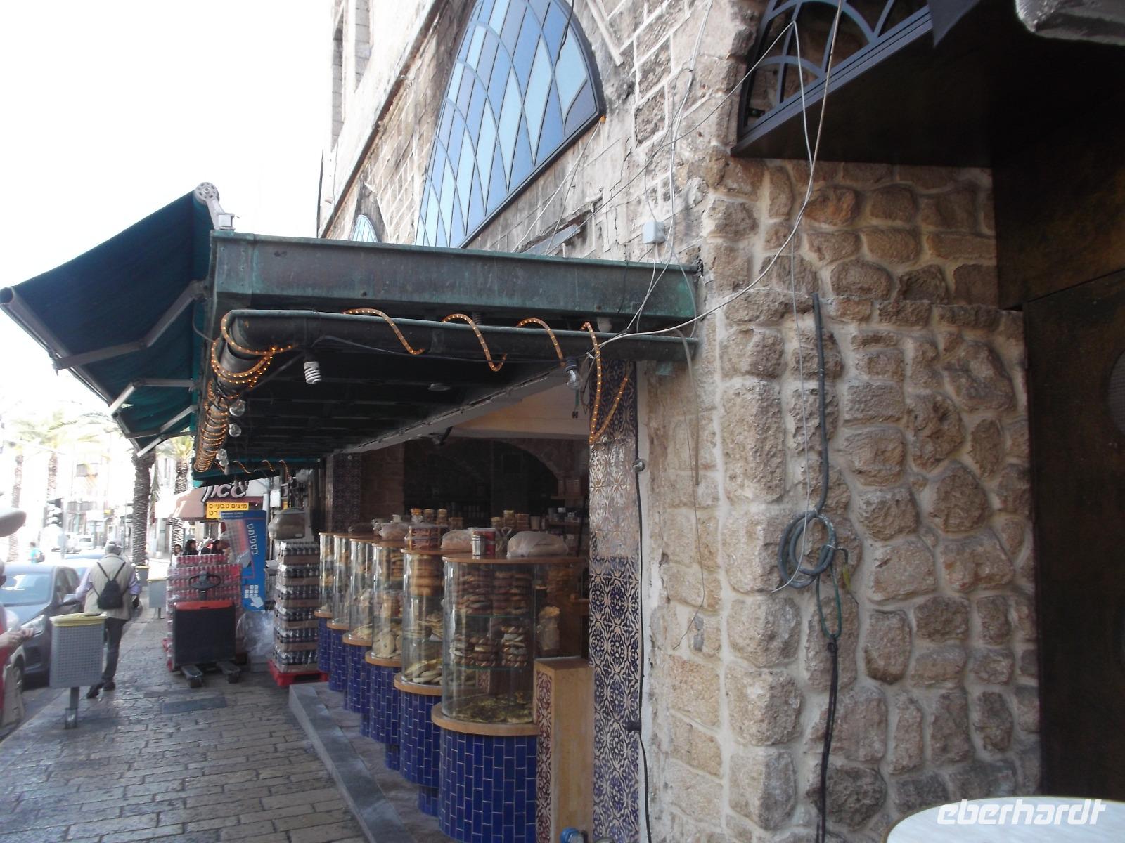 Heute Nachmittag würden wir Israel in Richtung Zypern verlassen, aber am Vormittag hatten wir noch etwas Zeit zur freien Verfügung. Das Wetter war wieder sehr schön, aber nicht so heiß wie am Vortag und so beschlossen wir - da wir ja noch weiterhin am Strand des Mittelmeeres sein würden, noch einmal in die Altstadt Jaffas, zu fahgren, um heute noch ein wenig in den schmalen, pittoresken Gassen zu bummeln. Reiseleiterin Corinne begleitete uns und wir spazierten vom Aussichtspunkt über die Altstadt vorbei an den zahlreichen, liebevoll restaurierten Steingebäude, teilweise aus dem Mittelalter oder aus der osmanischen Periode der Stadt, durch Künstlerviertel und die Gäßchen der Altstadt bis zu deren Mittelpunkt, dem berühmten Uhrturm, in dessen Umgebung sich Süßwarenläden und Bäckereien, Souvenier- und Schmuckgeschäfte und hübsche Bars und Cafés finden.