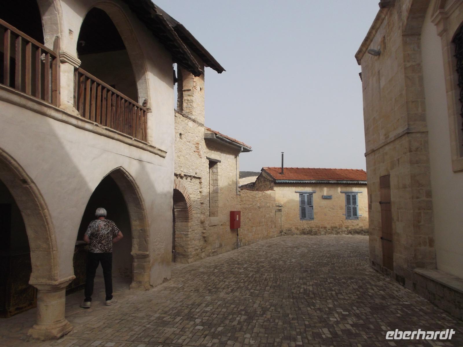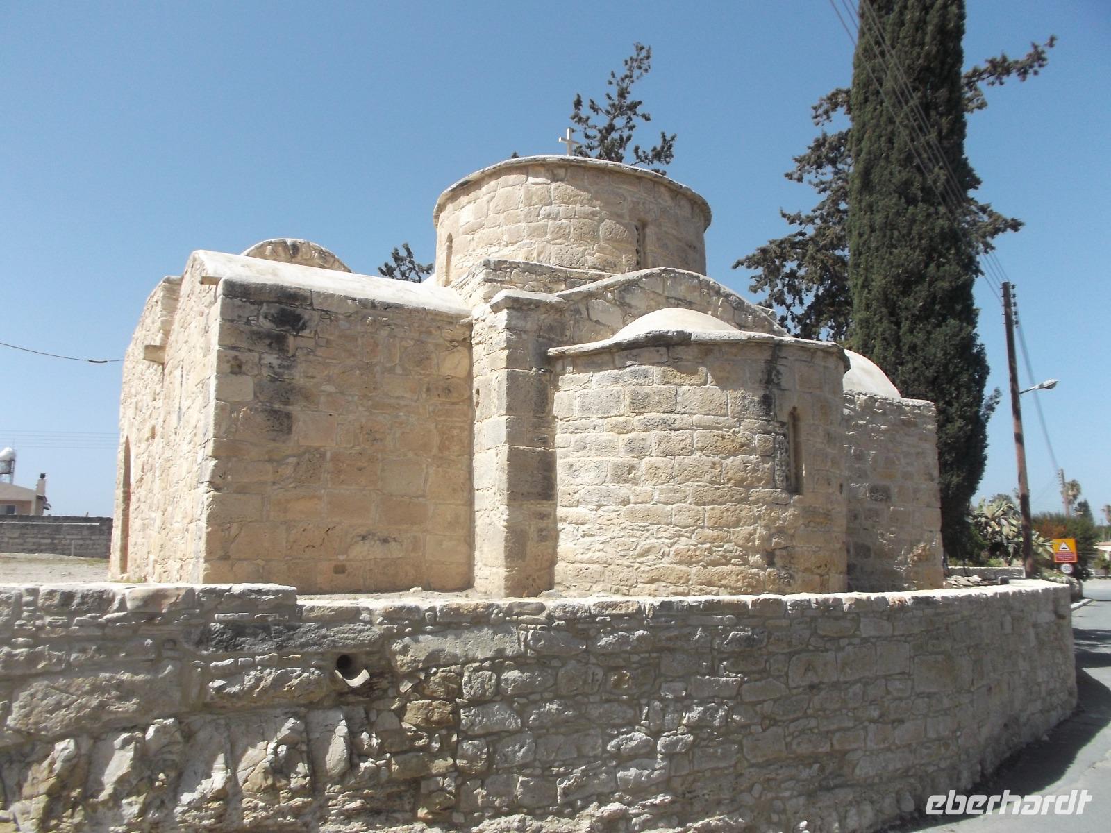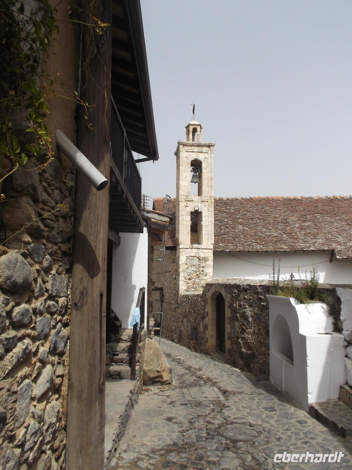 Zuerst besuchten wir die der Muterr Gottes und dem Erzengel Michael geweihte, sehr klein und bescheiden wirkende Kirche. Bemerkenswerterweise sind hier die Stifter der Kirche in den bewundernswerten Gemälden verewigt. Anfang des 16. Jh. wurde die daneben gelegene größere und bekanntere Kirche „Panagia tis Podithou" (Barmherzige Gottesmutter von Podithou) erbaut und bemalt. Als eine der wenigen Kirchen dieses Genres zeigt sie westliche Einflüsse aus der Renaissance und der römisch-katholischen Kirchenmalkunst, was vielleicht darauf zurückzuführen iust, dass sie im Auftrag eines französischen Adeligen errichtet wurde.