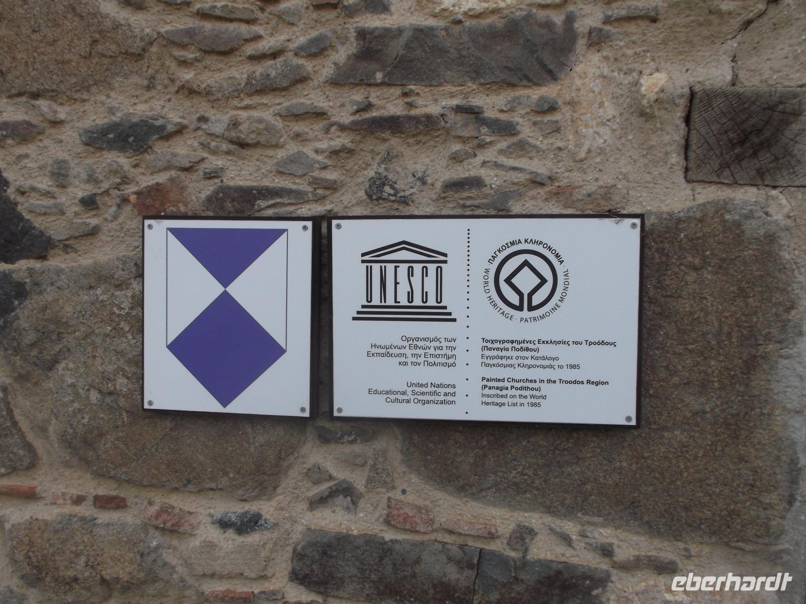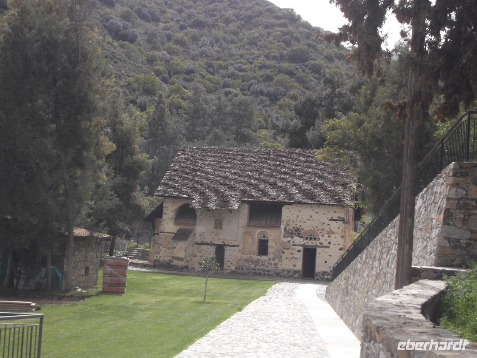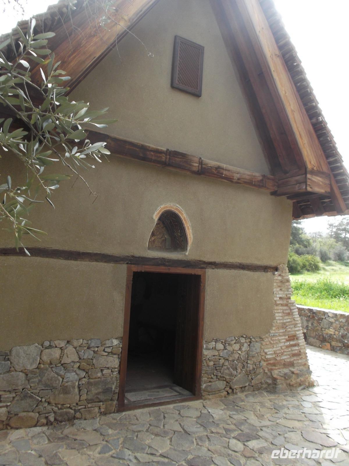 In der Nähe des historischen Dorfes Kakopetria liegt die dem Heiligen Nikolaus von Myra geweihte Scheunendachkirche Agios Nikolaos tis Stegis. Wir besuchten diesen UNESCO-Welterbe-Bau, der einige Besonderheiten aufweist. Bereits im 11. Jh. wurde das Kirchlein im byzantinischen Stil mit kleinem Vierungsturm erbaut, später erweitert und mit einem alles überdeckenden Scheunendach versehen. Fresken aus sechs Jahrhunderten schmücken ihr Inneres, die ältesten aus dem 12. Jh. von einem offensichtlich professionellen Ikonenmaler. Eine große Besonderheit neben Darstellungen aus dem Leben des Schutzpatrons St. Nikolaus ist ein Fresko, das die stillende Maria zeigt - ein ungewöhnliches und in der Geschichte der Kirchenmalerei zwar nicht einzigartiges, aber doch eher seltenes Motiv.
