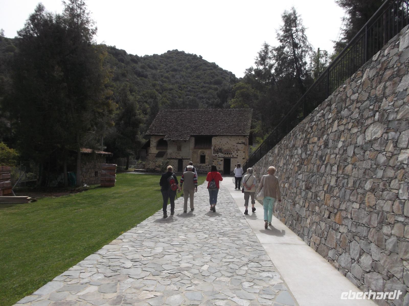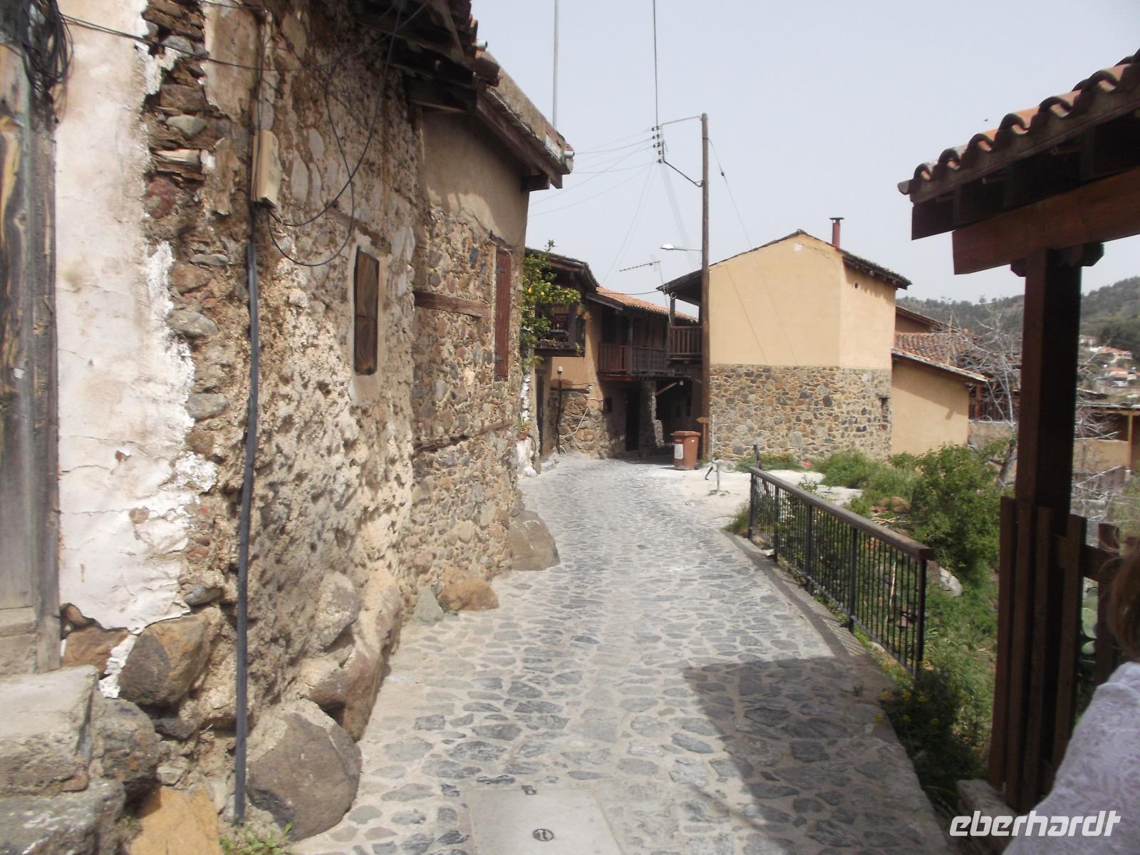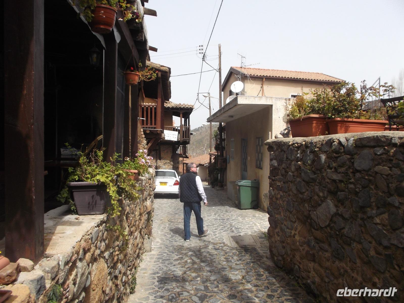 Anschließend lernten wir den historischen Teil des Dorfes Kakopetria bei einem Spaziergang kennen und nach der Mittagspause ging es dann noch zu einem Weindorf. Hier konnten wir nicht nur das hübsche Kloster mit reich ausgestatteter Kirche und eine historische Weinpresse besichtigen, es ging auch zu einem Weingut, wo wir diverse zyprische Weine probieren konnten. Der bekannteste, nach dem auch die ganze Weinbauregion bekannt ist, hat seinen Namen aus der Zeit der Kreuzritter - Commandaria. Zwar ist er nach den Verwaltungseinrichtungen der Johanniter und der Tempelritter - deutsch Komturei, französisch commanderie - benannt, aber die Herstellung von Süßwein, der ein wenig dem spanischen Sherry ähnelt, ist bereits seit den Zeiten der alten Griechen überliefert.