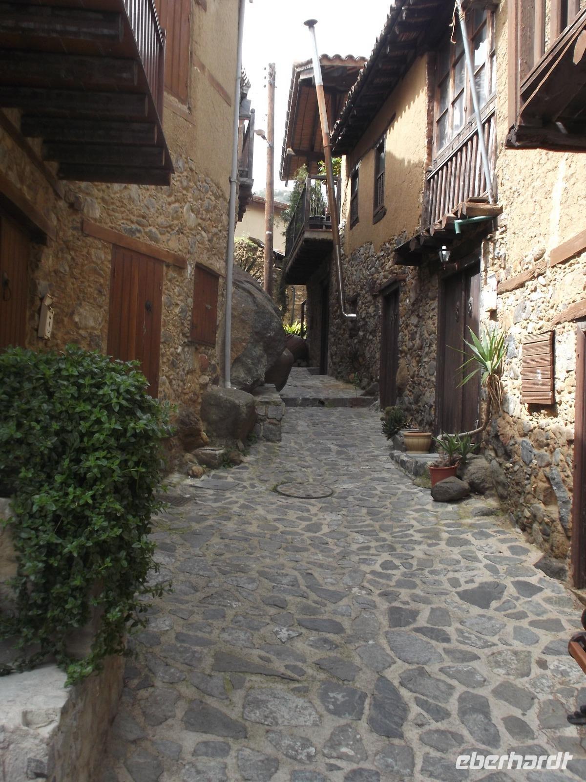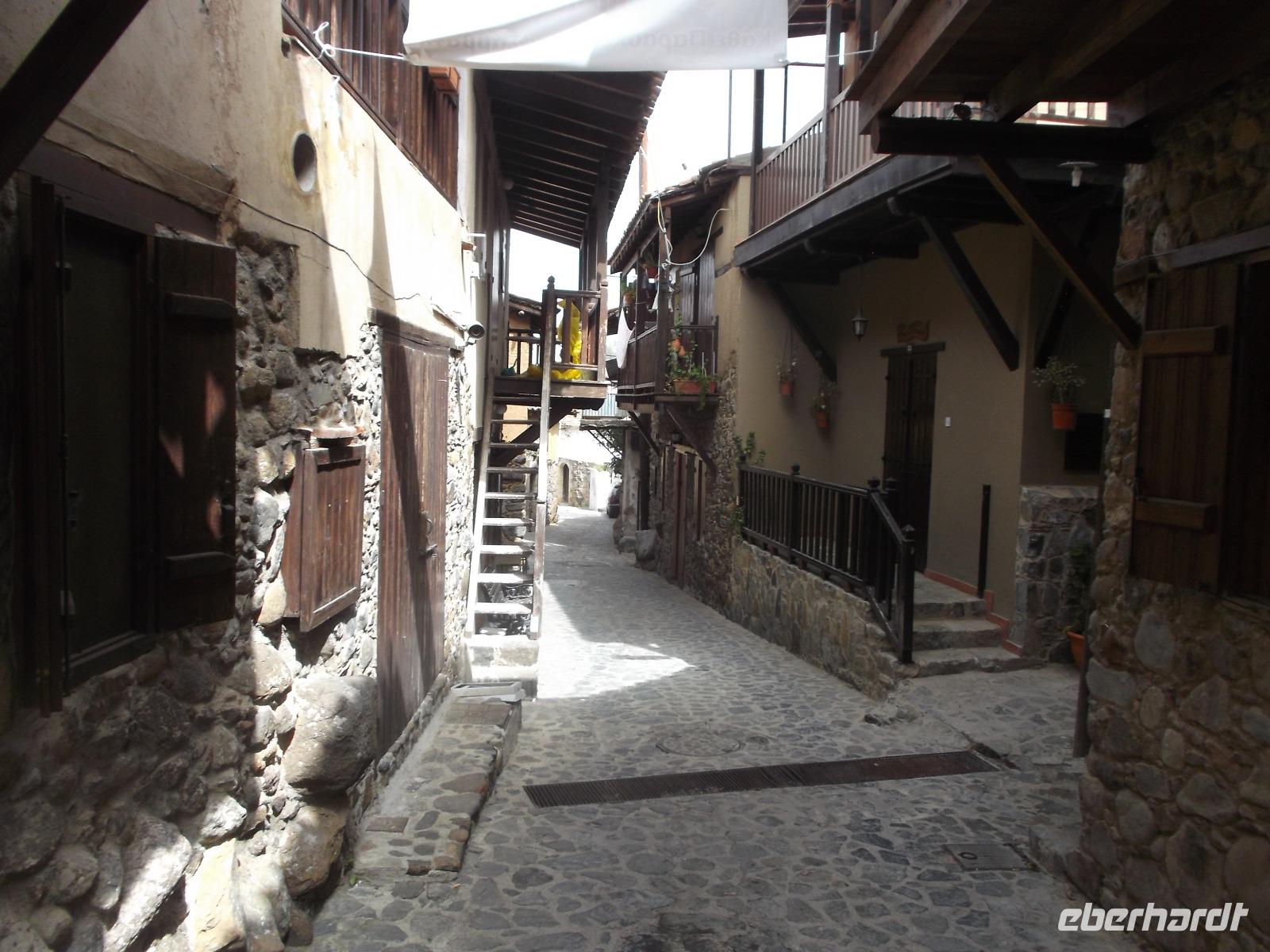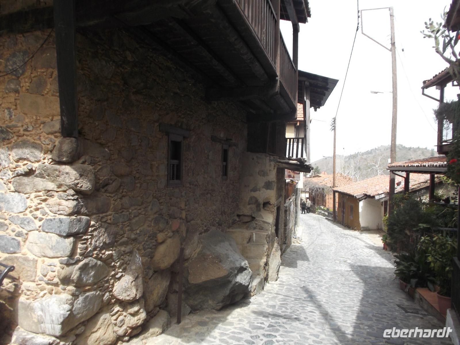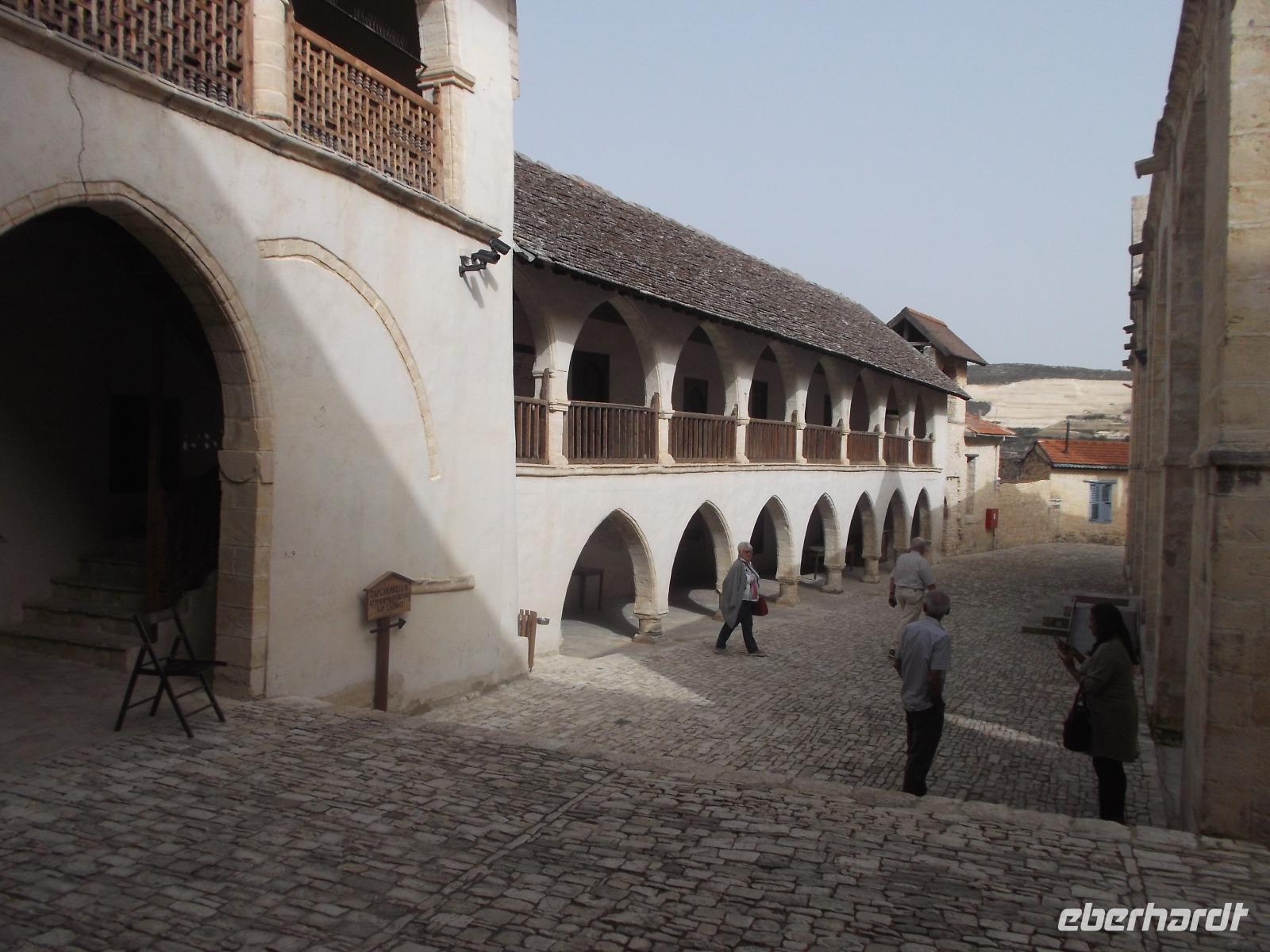 Anschließend lernten wir den historischen Teil des Dorfes Kakopetria bei einem Spaziergang kennen und nach der Mittagspause ging es dann noch zu einem Weindorf. Hier konnten wir nicht nur das hübsche Kloster mit reich ausgestatteter Kirche und eine historische Weinpresse besichtigen, es ging auch zu einem Weingut, wo wir diverse zyprische Weine probieren konnten. Der bekannteste, nach dem auch die ganze Weinbauregion bekannt ist, hat seinen Namen aus der Zeit der Kreuzritter - Commandaria. Zwar ist er nach den Verwaltungseinrichtungen der Johanniter und der Tempelritter - deutsch Komturei, französisch commanderie - benannt, aber die Herstellung von Süßwein, der ein wenig dem spanischen Sherry ähnelt, ist bereits seit den Zeiten der alten Griechen überliefert.