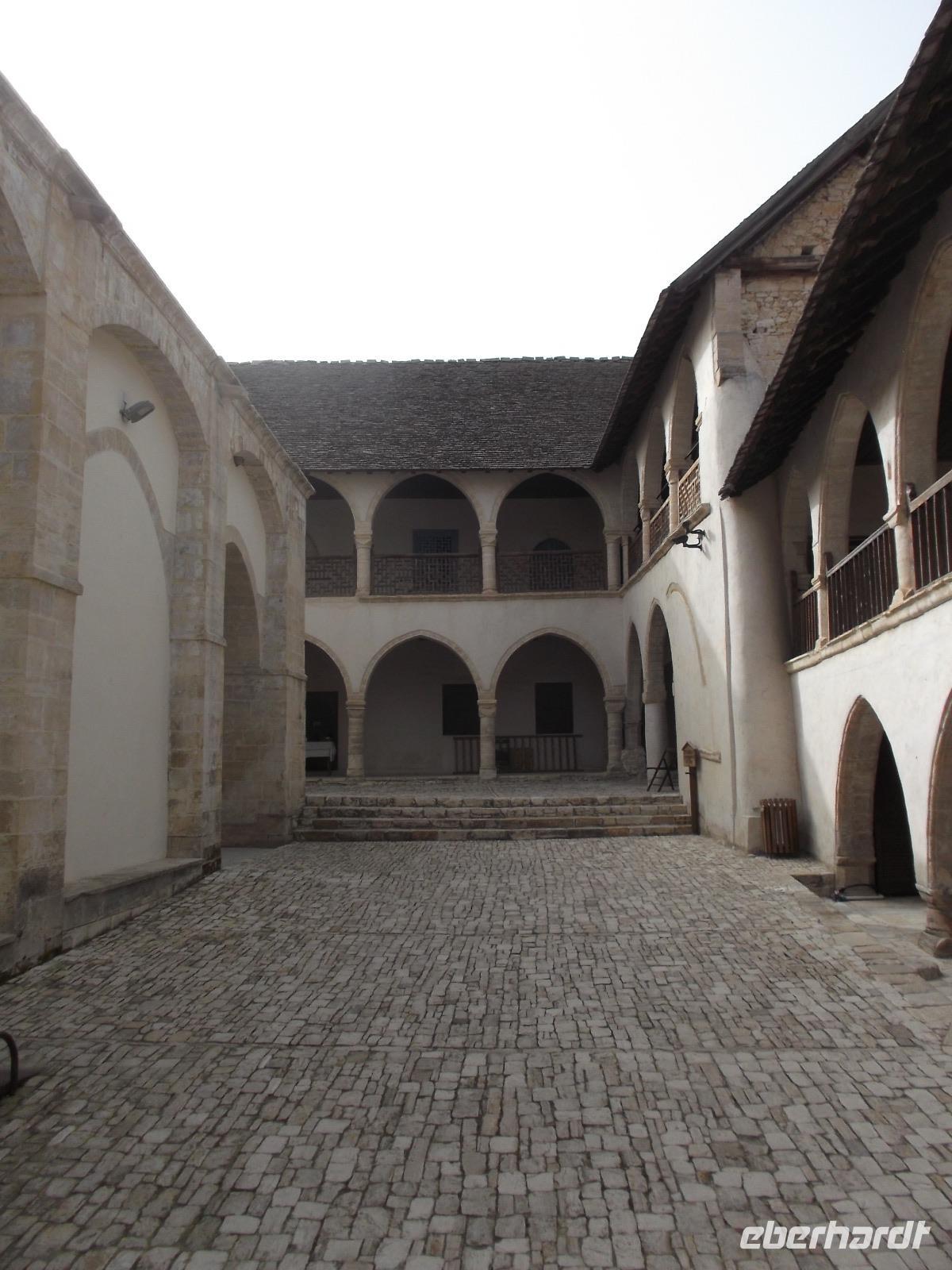 Wir hatten genügend Zeit, um alle Besonderheiten zu betrachten und die Bauten auf uns wirken zu lassen, bevor es weiterging nach Limassol. Bei einem Spaziergang führte uns Reiseleiter Alexandros durch den historischen Teil der zweitgrößten Stadt Zyperns. Wir sahen die Straßen im Christen- und Muslim-Viertel, das Rathaus und die alte Markthalle, die heute aber kaum noch genutzt wird. Bei einem typischen Meze-Mittagessen in einem Traditionsrestaurant konnten wir uns mittags stärken, während wir danach noch einen Blick auf das alte Kastell von Limassol werfen konnten, das heute das Mittelalterliche Museum beherbergt. Die ersten Befestigungsanlagen sind sehr alt, später wurden sie von den Kreuzrittern aufgestockt, im 13. Jh. zum Kastell umgebaut und präsentziert sich heute so wie zur Zeit der Osmanischen. Ein historisch bedeutsamer Höhepunkt war 1191, als hier der englische König Richard Löwenherz, der Zypern vom selbst ernannten Kaiser Isaak Komnenos erobert hatte, seine Frau Berengaria von Navarra heiratete.