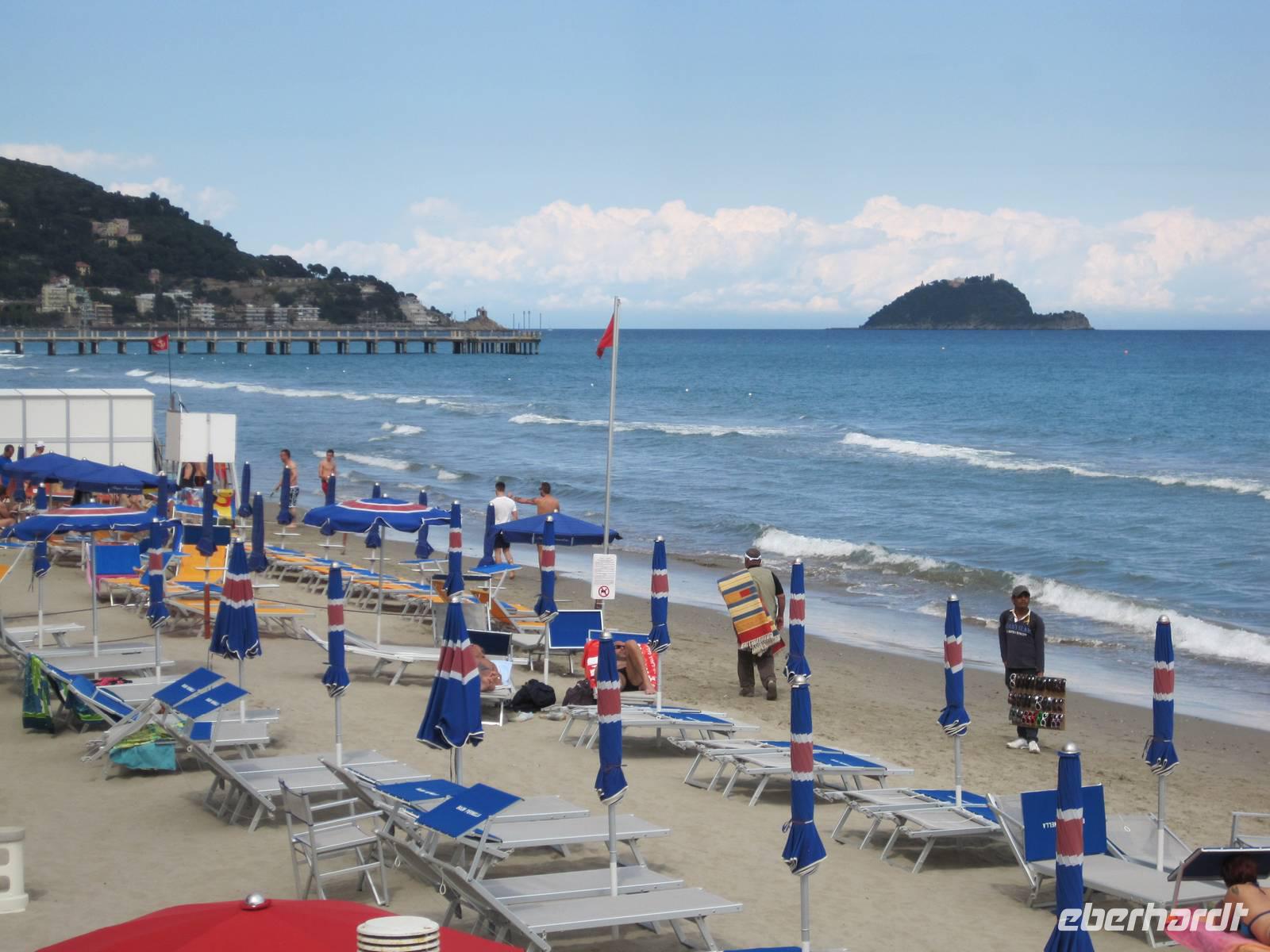 Am 2. Tag unserer Transferfahrt zur Blumenriviera erwartete uns ein azurblauer Himmel, der uns den ganzen Tag begleitete. Unser Versuch am Sonntag die Reparatur des Micros zu beheben, schlug leider fehl. Damit war weiterhin die Kommunikation mit unseren RG eingeschränkt, nicht sehr unangenehm für eine optimale Reisegestaltung. Die Fahrt entlang der Autobahnen A22, A4, A26 und A7 führte uns durch einen Großteil der Po-Ebene. Eine relativ eintönige Strecke, aber man bekam den Eindruck der Vielfältigkeit und der Größe der Fläche für viele Agrar-Produkte in Italien. Die geografische Änderung erlebten wir dann, als wir durch die vielen Tunnel und Kurven am Anfang der Apeninen fuhren. Der Anblick des Ligurischen Meeres war dann das Highlight, was wir erwarteten und das uns bis Alassio begleitete. Alassio, eine typische Stadt für Badelustige an einem ca. 3 km langem Natursandstrand. Dem Stadtpark, mit seinem „ Mäuerchen", haben alle RG einschließlich der ersten Fliese von Ernest Hemingway von 1951 als sehr gelungen angesehen. Die Busfahrt nach Diano Marina war eine wahre Panoramafahrt entlang der Küste der Blumenriviera. Der Begrüßungstrunk und ein gutes Abendessen, beendeten eine schöne Transfer-Fahrt zu unserem Hotel Mediterraneo in Diano Marina.