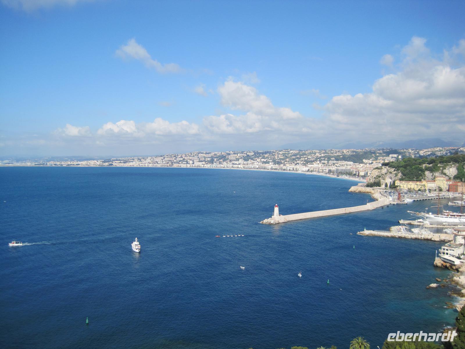 Am Dienstag erneut die Côte d'Azur. Hauptziele waren Nizza und Cannes, nicht nur die Namen führten zu gewissen Erwartungshaltungen, auch die Vorbereitungen, des am 16.5.2013 beginnende Filmfestival in Cannes war äußerst interessant.. Den ersten Teil der Anfahrt kannten wir ja schon vom Vortag, aber die Fahrt entlang der Küstenstraße bis Nizza brachte uns außer traumhaften Aussichten aufs Mittelmeer auch einige interessante Geschichten aus den letzten Jahren, die exakt diese Region betrafen. Wie z.B.. den mysteriösen Tod von Grace Kelly vor ca. 30 Jahren. Ein weiterer interessanter Zwischenstopp für Fotos mit Panorama von Nizza war ein Treffer mit einer sagenhaften Sicht auf die Bucht von Nizza bis zum Flughafen der Stadt an der Côte d' Azur. Der Stadtbummel in Nizza begann mit dem Besuch des Blumen-, Gemüse- und Gewürzmarktes, wo natürlich einige Kleinigkeiten der Naturprodukte der Provence erstanden wurden. Viele kleine Restaurants und andere Spezialläden luden immer zum Einkauf ein. Die herrlichen Gebäude und Hotels an der Via des Anglais wurden während der Bus-Stadtfahrt genossen. Die folgende Fahrt wiederum entlang der Küste offerierte uns wiederum einmalige Aussichten der Orte in guter Anpassung an die Meeresbedingungen. Ab ungefähr 14.00 Uhr fuhren wir die Via Croixselle in Cannes die 3 km ab und waren vom Trubel der Vorbereitungen zum Filmfestival beeindruckt. Eine Hektik, um all die tollen Hotels und öffentlichen Gebäude wie auch der Festivalhalle. Danach folgte jeder unsere RG seinen Interessen, einige bevorzugten die Besichtigung der Altstadt und natürlich den Trubel von Cannes. Die meisten jedoch fuhren mit dem Schiff zu den vor Cannes gelagerten Lerinischen Inseln, der Isola Marguerita und der Isola Honorat. Die kleinere der beiden, Honorat, beeindruckte mit dem Kloster und wunderschönen Kirche und der ehemaligen Festung der Insel. Während auf der Isola Marguerita das historische Gefängnis und jetzige Museum mit des Gefangenen mit der eisernen Maske, einige Filmerinnerungen unserer RG wieder weckte. Das Ambiente der wiederum blauen See war ein wunderschöner Begleiter unserer romantischen Schiffstour. Unsere Abfahrt aus Cannes erfolgte pünktlich, lediglich ein Stau zur Auffahrt auf die Autobahn und ein Stau auf derselben, brachte uns in Zeitnot, um unser Abendessen rechtzeitig zu erreichen. Das wiederum gute Essen war ein guter Ausgleich zu unserer leichten Verspätung.